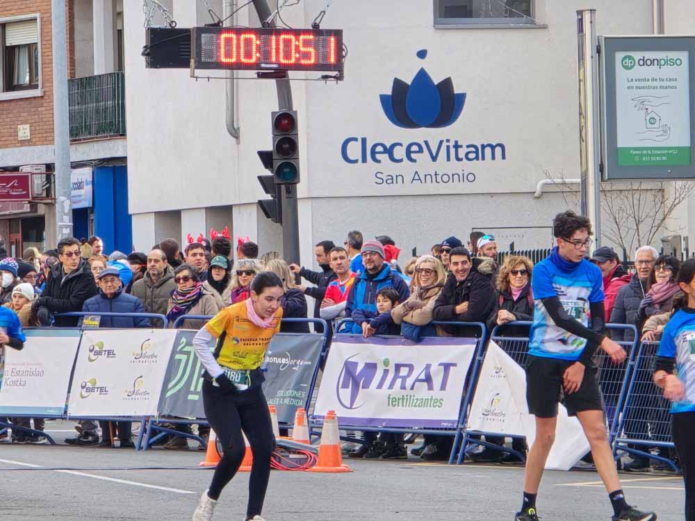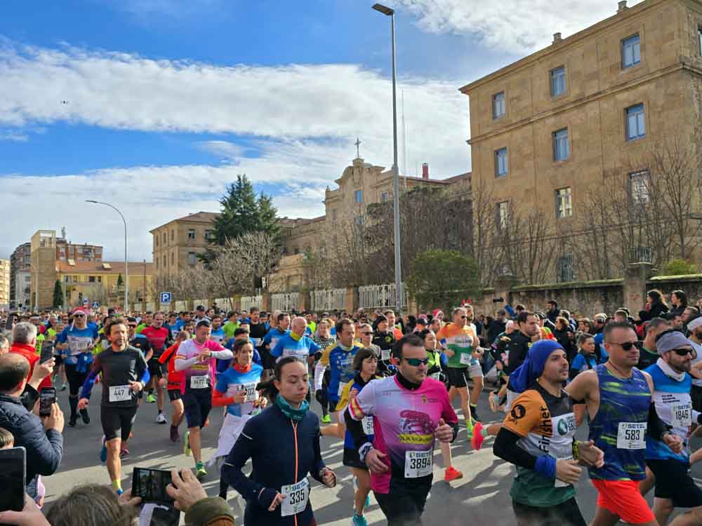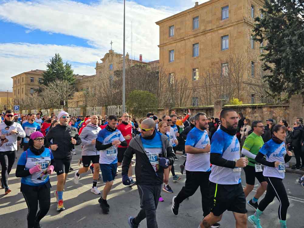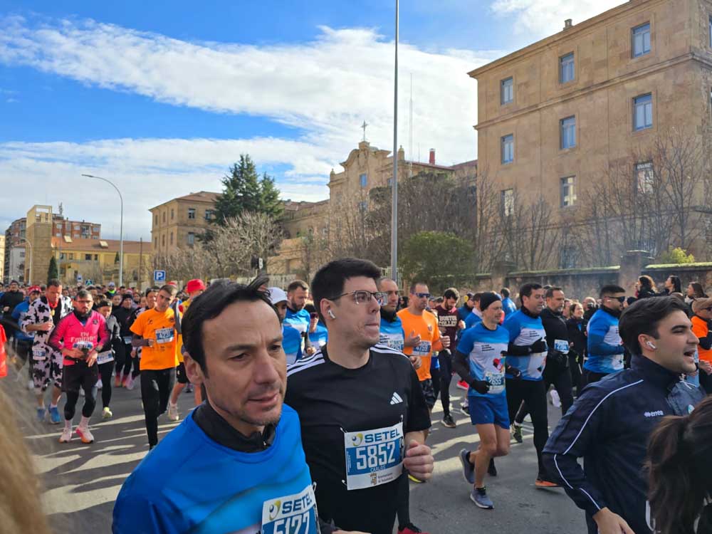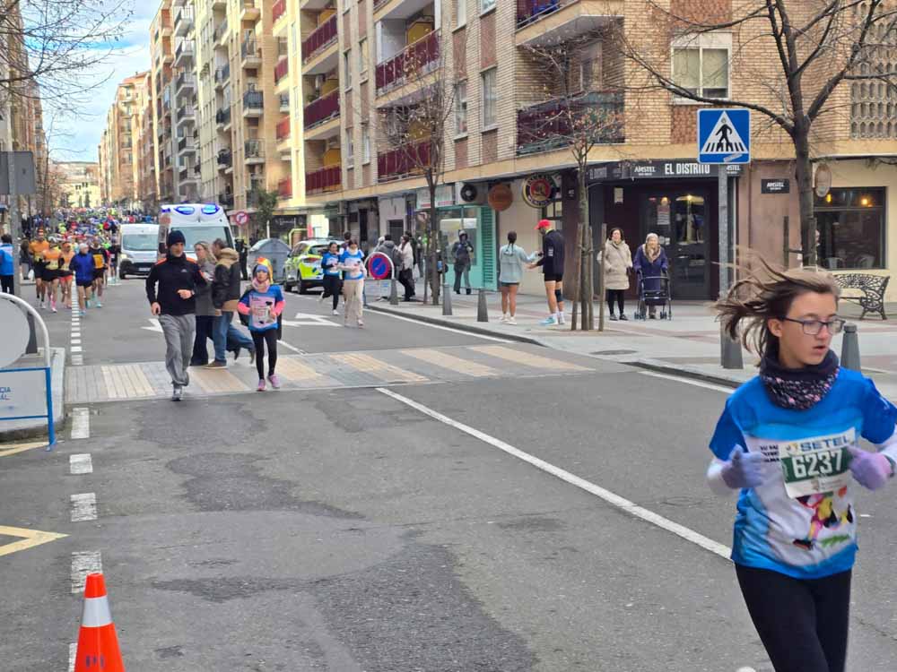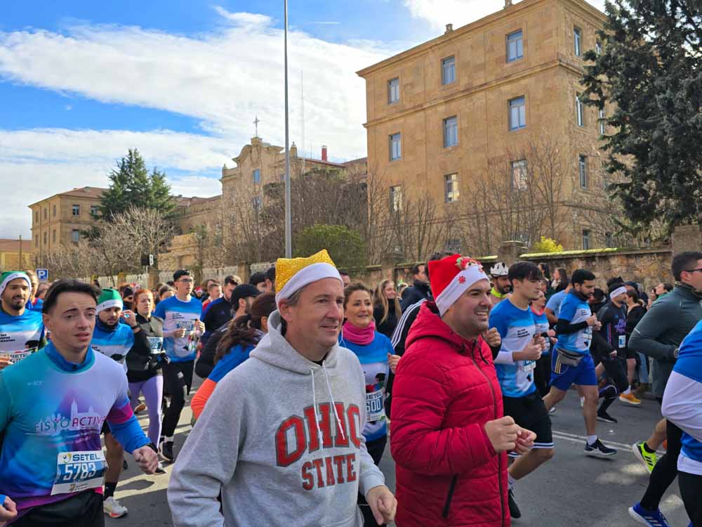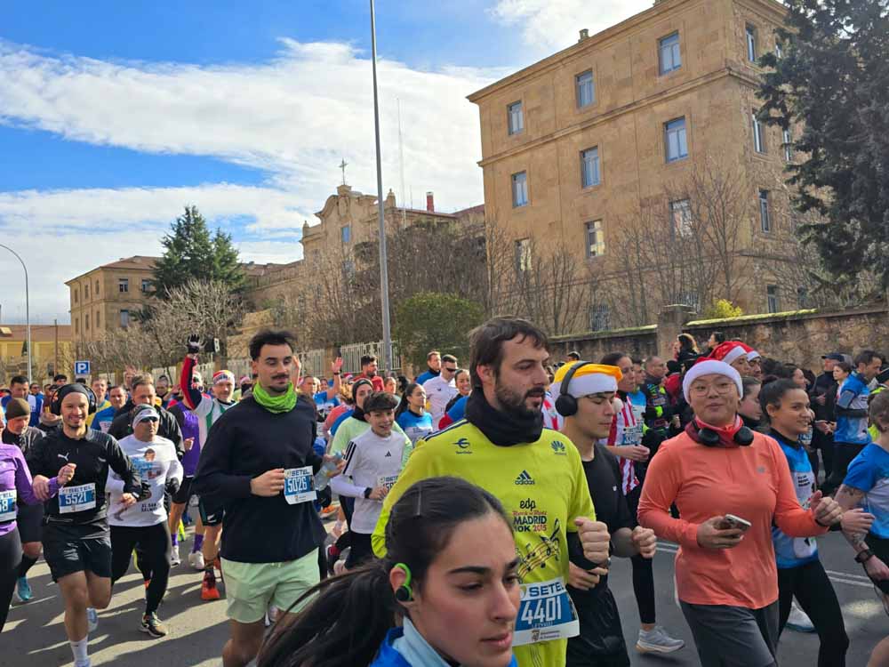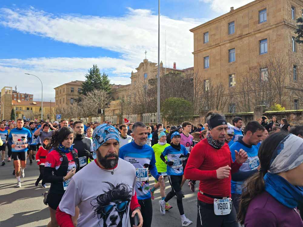 El atletismo y la tradición se han vuelto a unir en la celebración de la San Silvestre Salmantina. Una prueba consolidada en el calendario, organizada por el Club Deportivo Padre Basabe, que se vive en las calle con miles de personas que animan el paso de los altletas. El Paseo de San Antonio, junto al Colegio San Estanislao de Kostka, ha vuelto a ser el punto de salida y llegada de la tradicional prueba en la que han participado más de 7.000 atletas. Los primeros en disputar la prueba han sido los corredores de las categorías inferiores y posteriormente ha llegado el turno de la prueba absoluta.