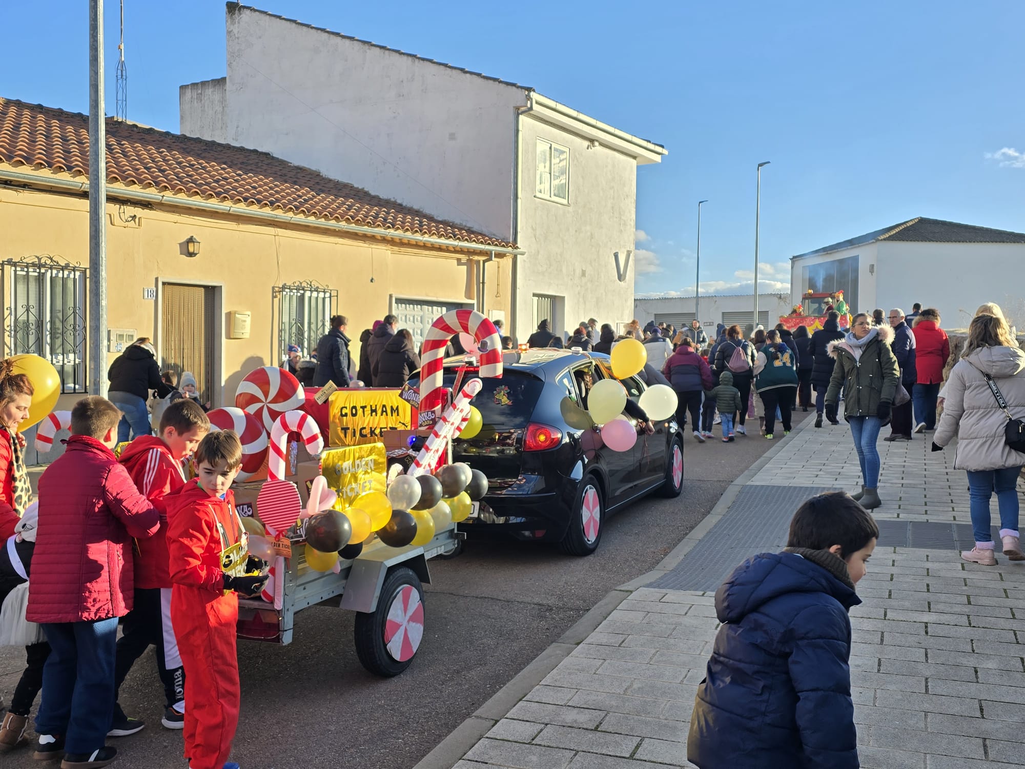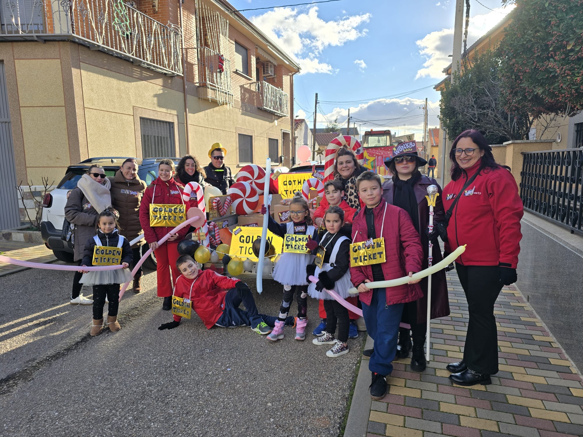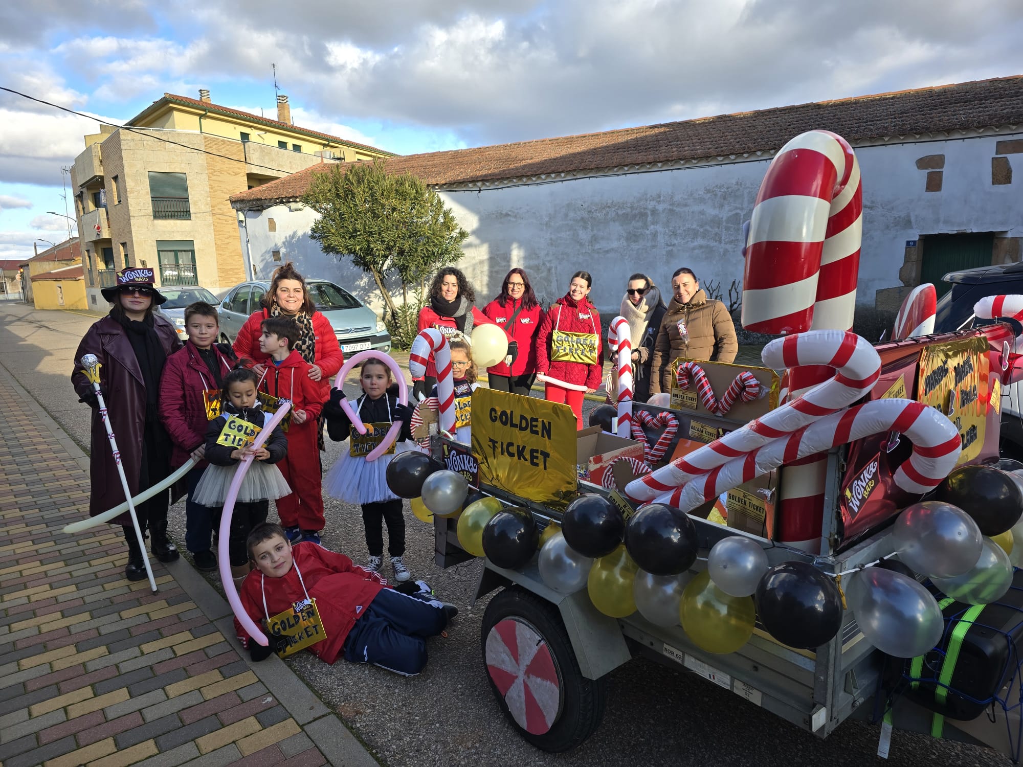 Al remolque de los Reyes Magos se ha unido la carroza de los pequeños que han recreado los personajes de la película ‘Wonka’, aportando color y dulces a la comitiva.