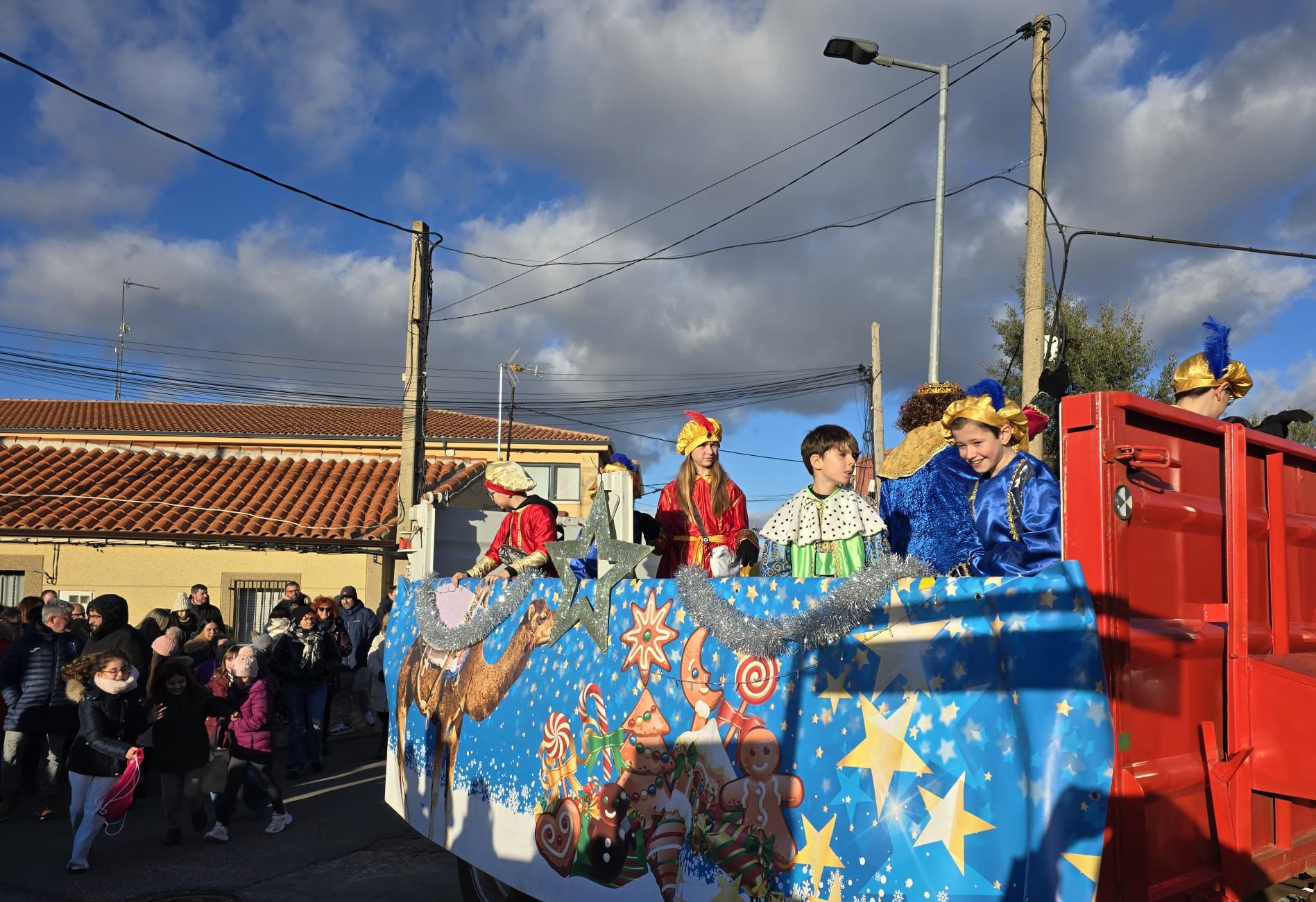 Los niños del municipio han sido los primeros del alfoz en recibir a Melchor, Gaspar y Baltasar a los que han recibido con nervios e ilusión por tenerlos tan cerca, lo que ha ayudado a paliar el frío que niños y papás han aguantado mientras esperaban a los tres reyes y sus pajes.