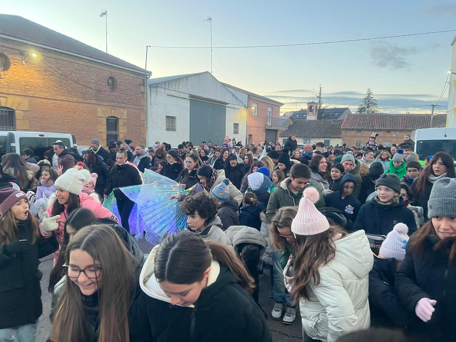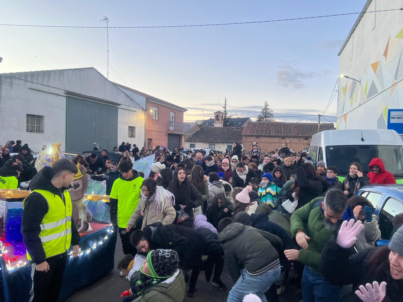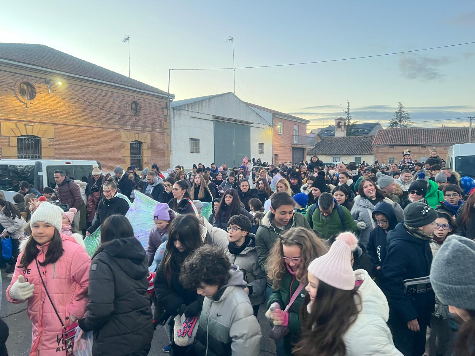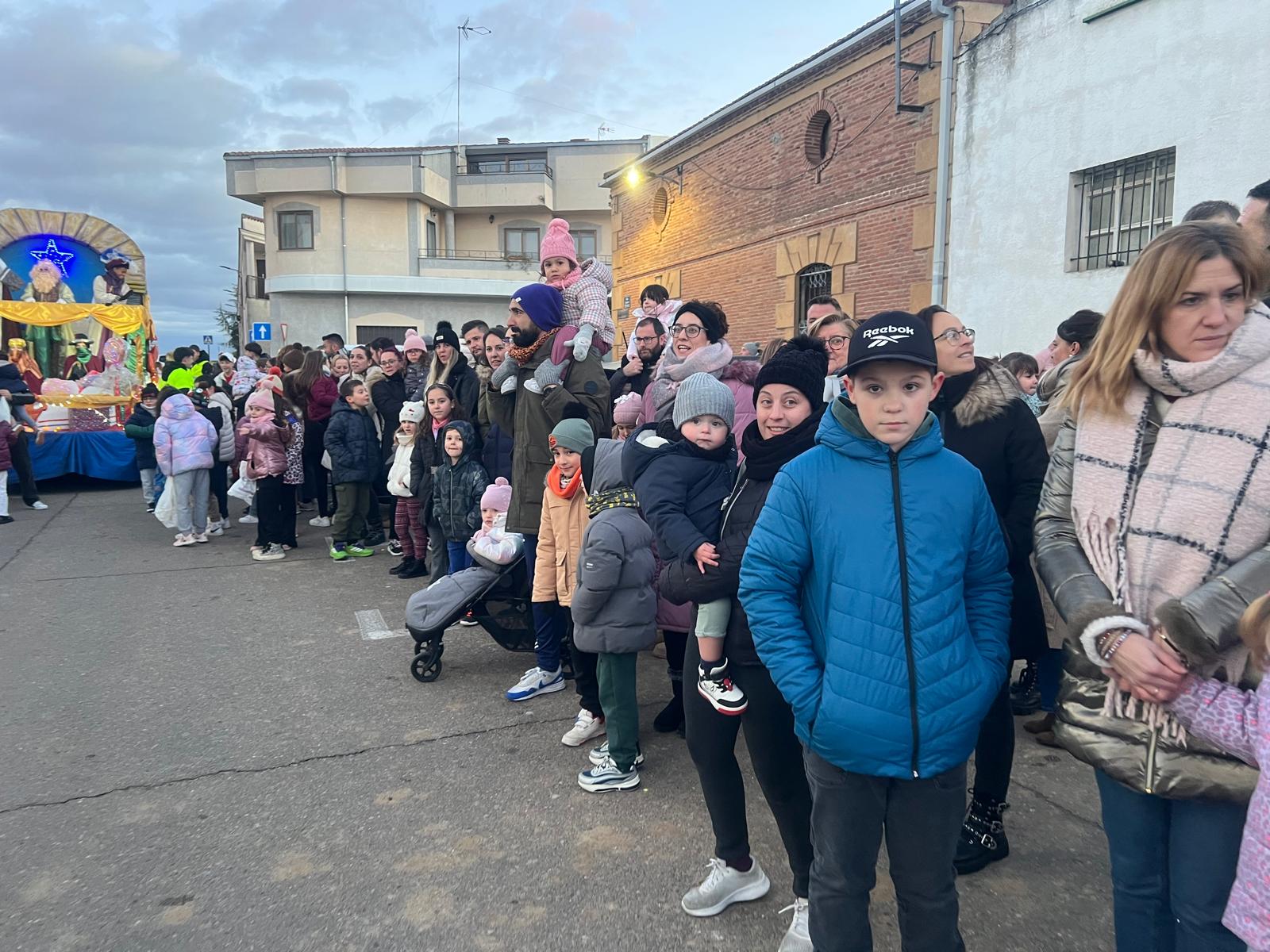 Cientos de niños y vecinos de Castellanos de Moriscos se han dado cita frente al Ayuntamiento para participar y disfrutar de la Cabalgata de Reyes.