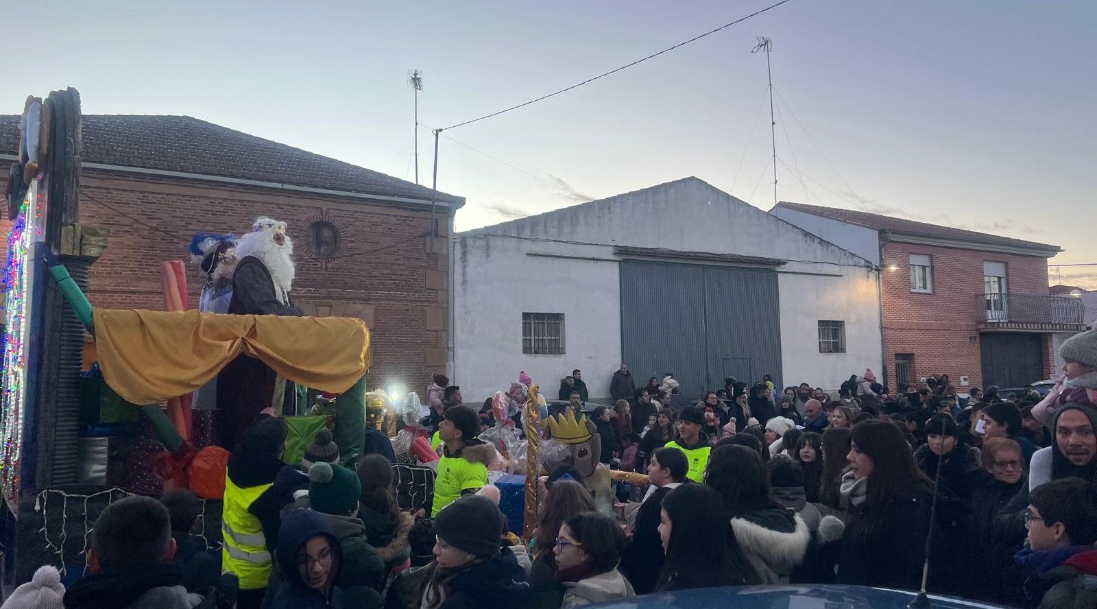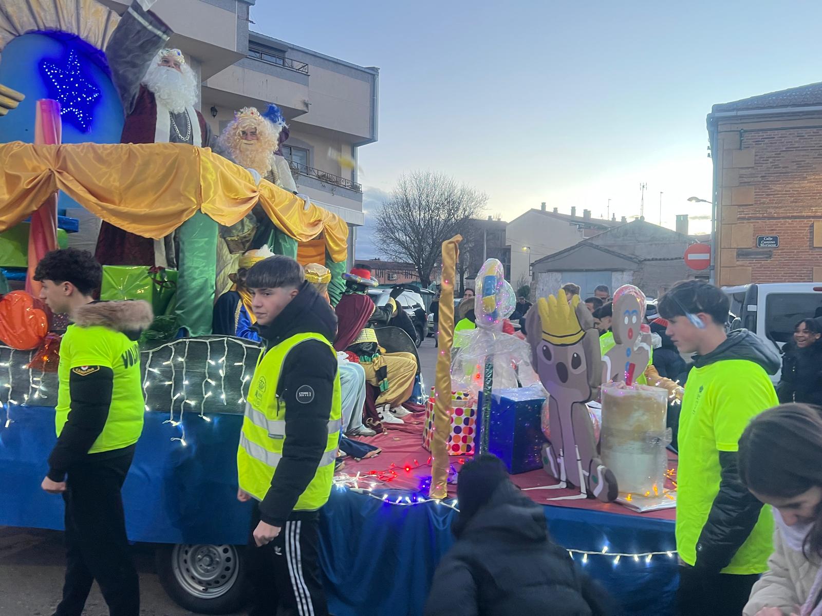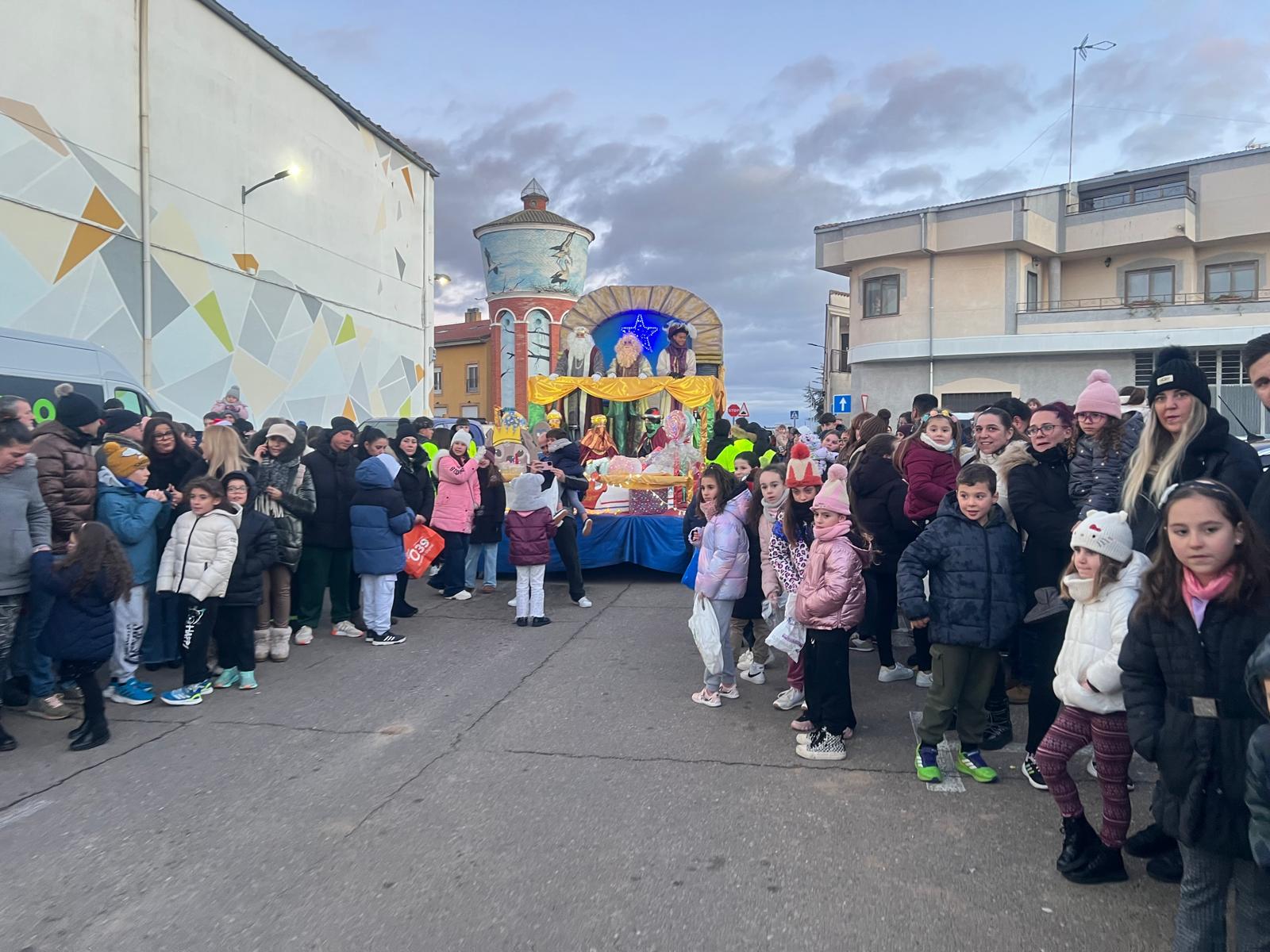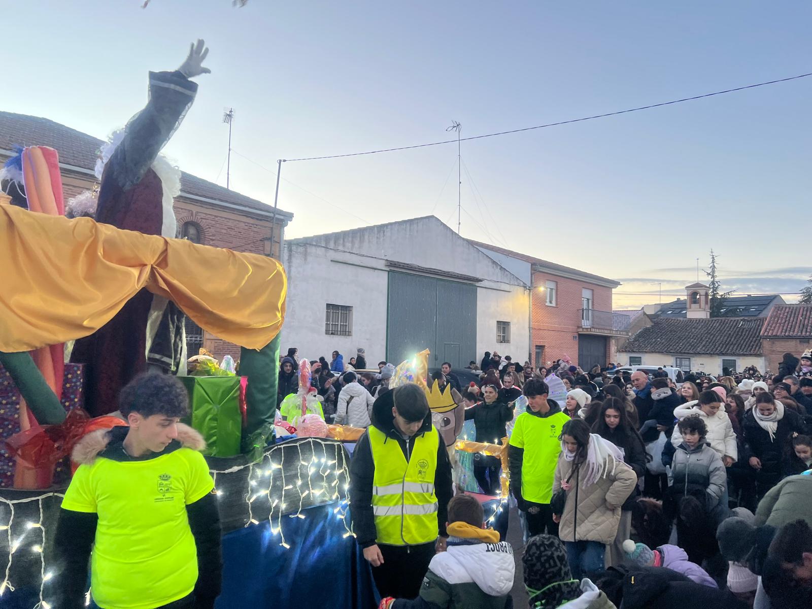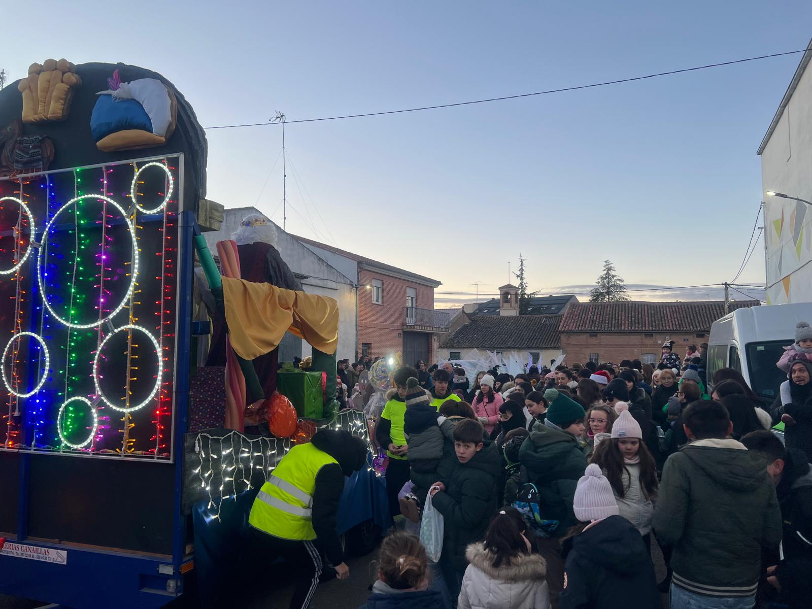Cientos de niños y vecinos de Castellanos de Moriscos se han dado cita frente al Ayuntamiento para participar y disfrutar de la Cabalgata de Reyes.