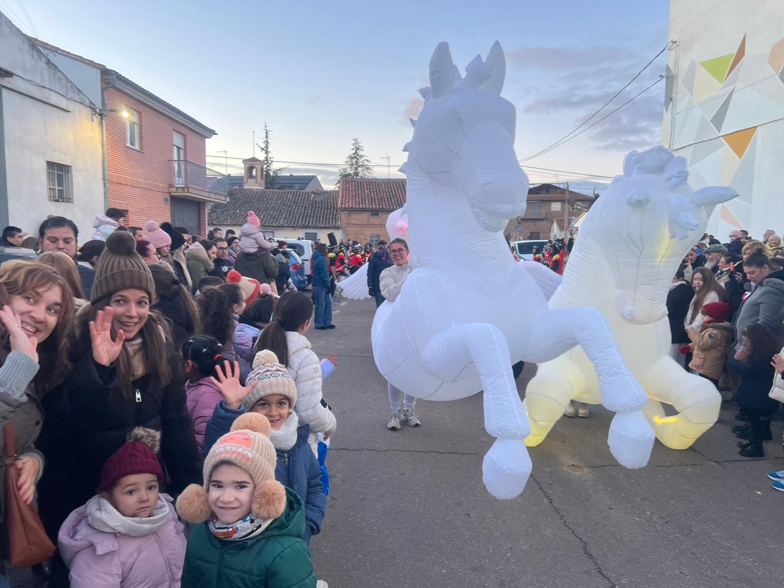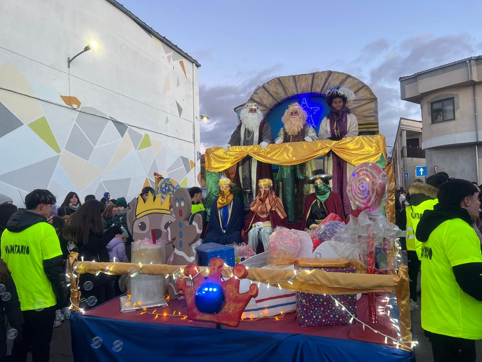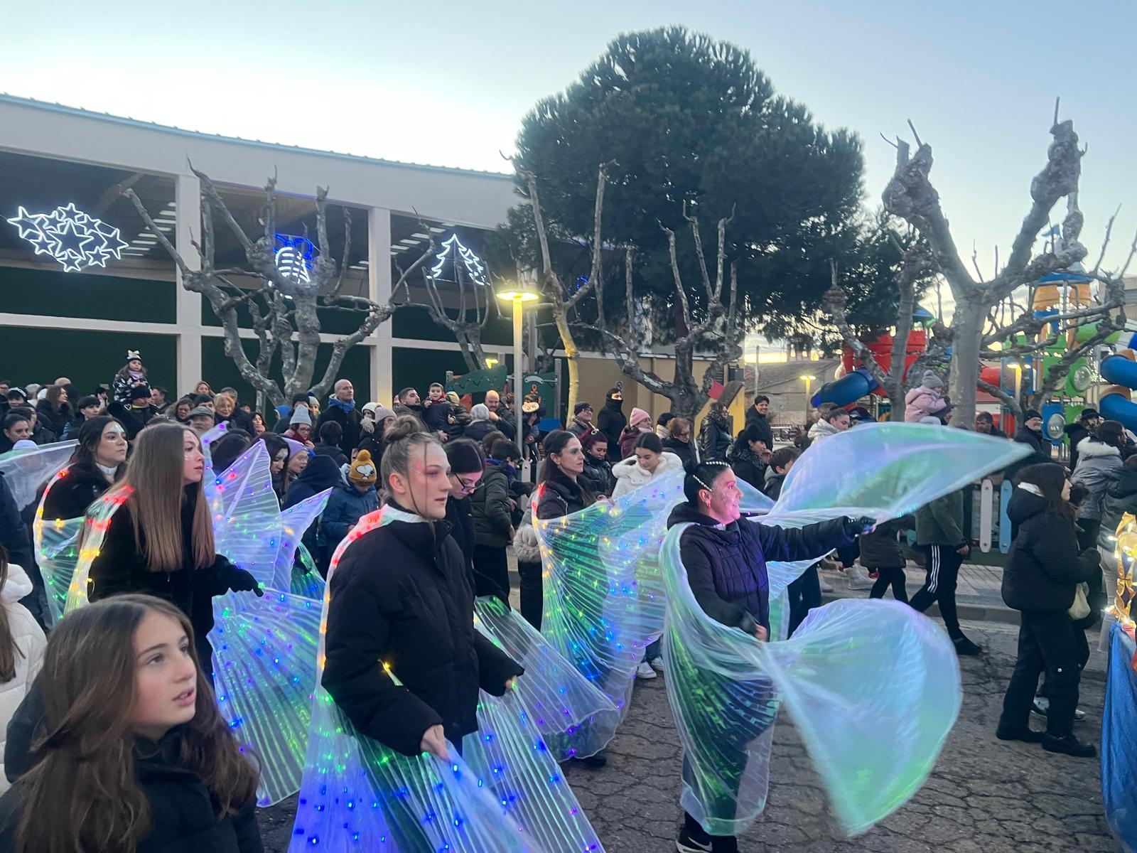 Al ritmo de la música y la batucada de los cascanueces, los bailes de las hadas y con la animación de los caballos alados y las palomas, Melchor, Gaspar y Baltasar han presidido el desfile por las calles del municipio, acompañados por sus pajes y lanzando kilos y kilos de caramelos que esperaban los más pequeños ansiosos por recogerlos.