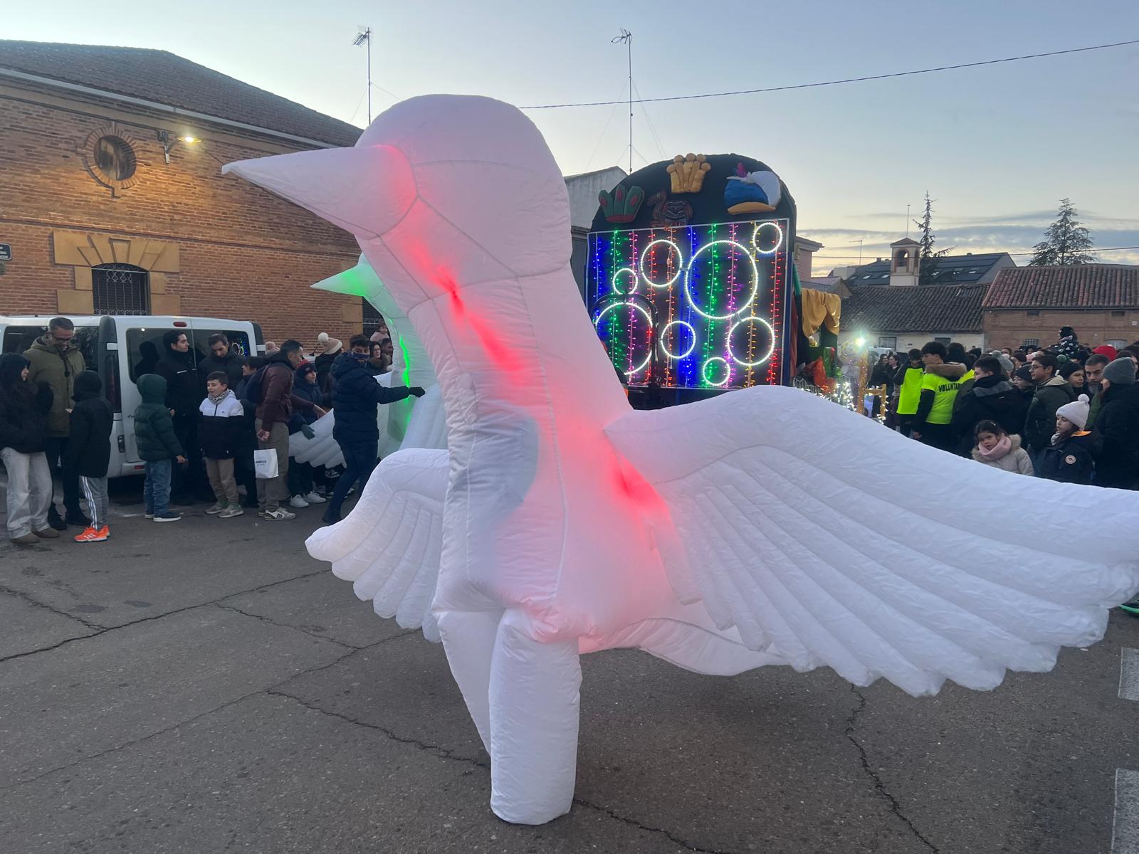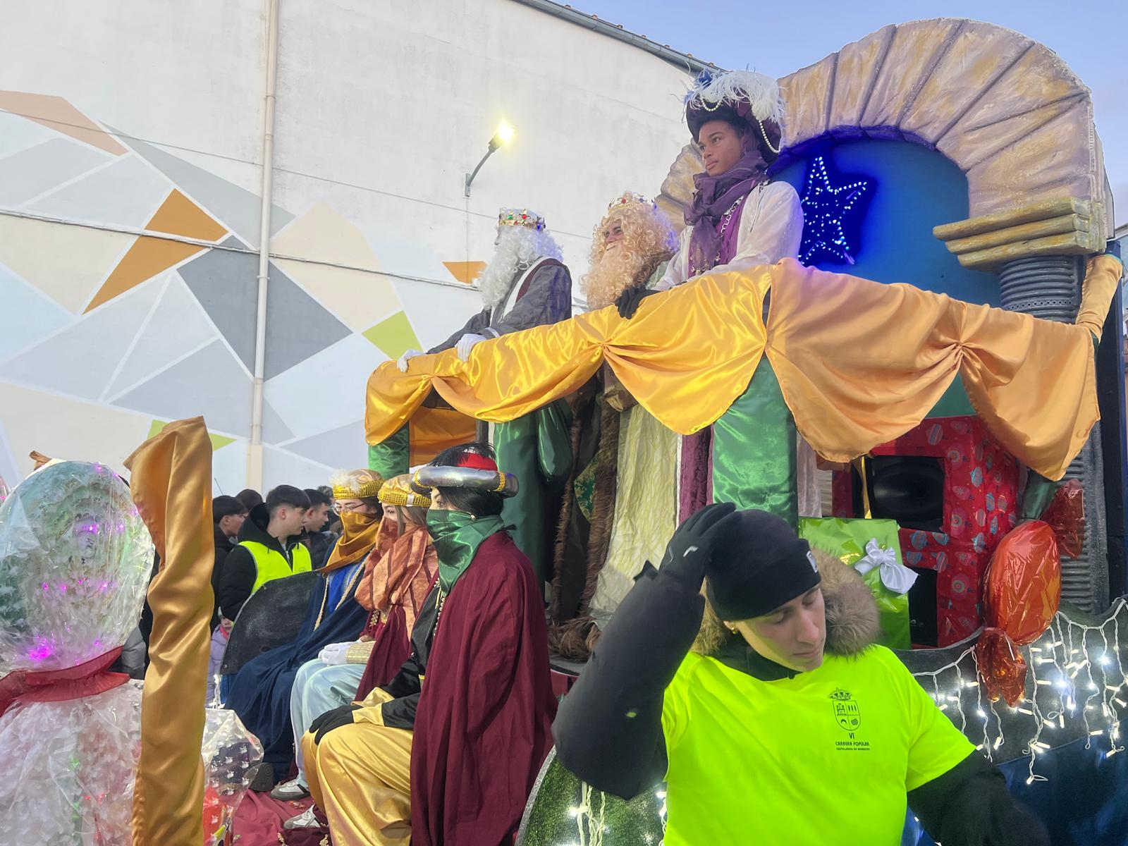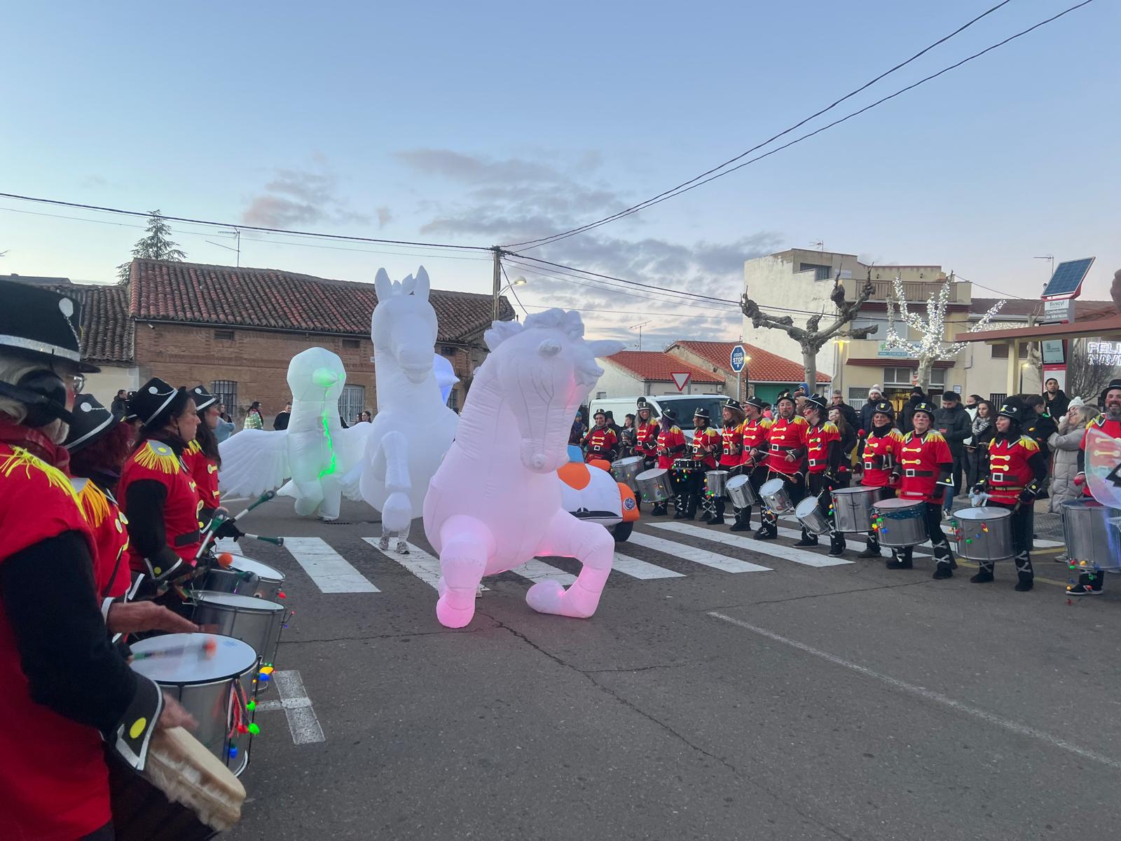 Al ritmo de la música y la batucada de los cascanueces, los bailes de las hadas y con la animación de los caballos alados y las palomas, Melchor, Gaspar y Baltasar han presidido el desfile por las calles del municipio, acompañados por sus pajes y lanzando kilos y kilos de caramelos que esperaban los más pequeños ansiosos por recogerlos.