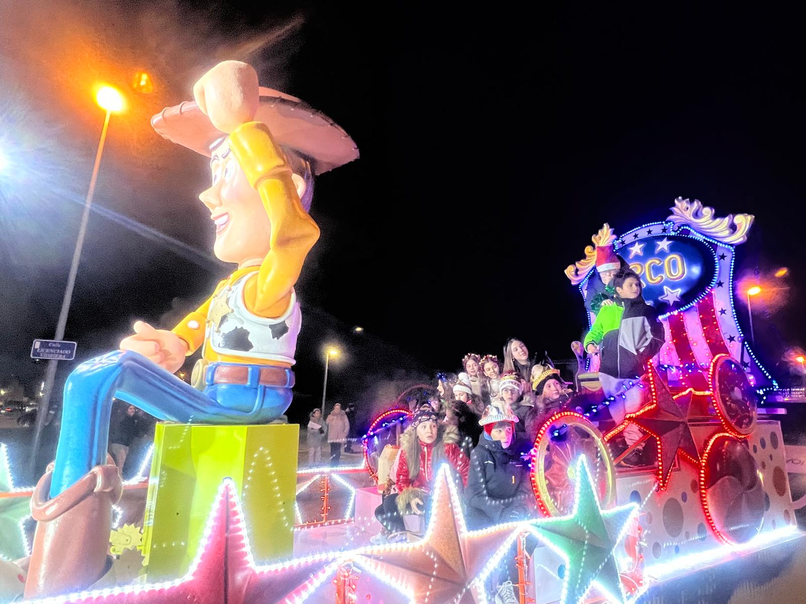 Nervios, ilusión y caras de admiración al ver de cerca a Melchor, Gaspar y Baltasar, cuyas carrozas han compartido protagonismo con los personajes infantiles actuales de Toy Story con Woody y Buzz Lightyear, Olaf de Frozen o el gigante Maui de Vaiana y otros no tan conocidos por los más pequeños pero que han hecho que sus padres volvieran a su infancia con Vicky el vikingo, David el gnomo o la abeja Maya, a los que han acompañado la estrella de Belén y los tres camellos para guiar a los Magos de Oriente.
