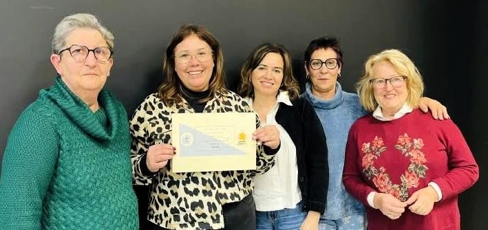 Las mujeres de la Asociación Tejemaneje de Villamayor han hecho entrega de la recaudación obtenida en el mercadillo solidario que organizan cada Navidad y que este año ha estado destinado a ayudar a Aerscyl.