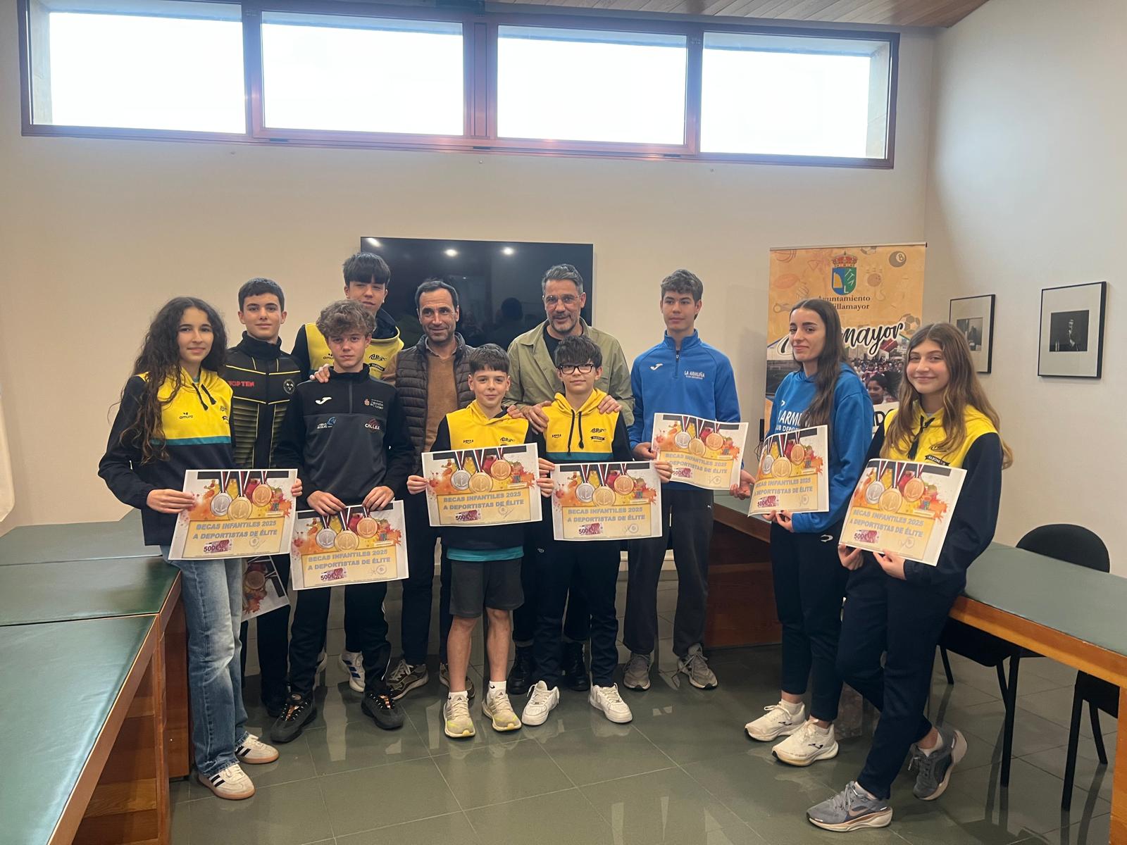 Doce niños y jóvenes de Villamayor han sido los afortunados que este año han recibido la beca que el Ayuntamiento concede a los deportista de élite locales menores de 18 años por un importe total de 5.000 euros.