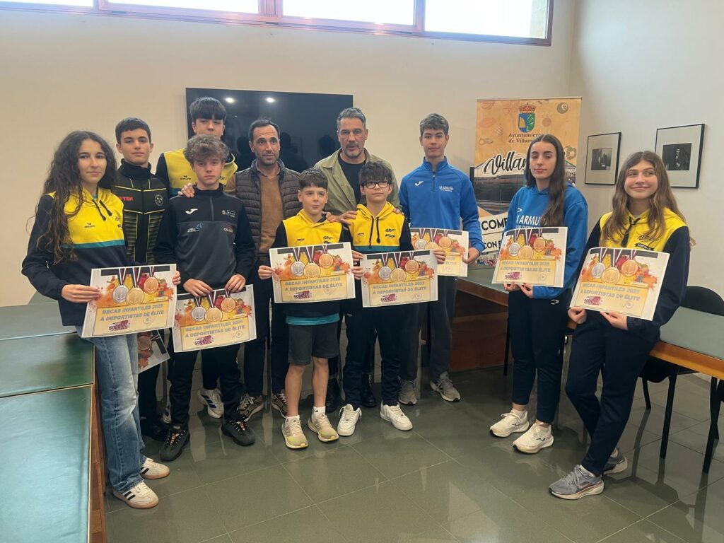Doce niños y jóvenes de Villamayor han sido los afortunados que este año han recibido la beca que el Ayuntamiento concede a los deportista de élite locales menores de 18 años por un importe total de 5.000 euros.