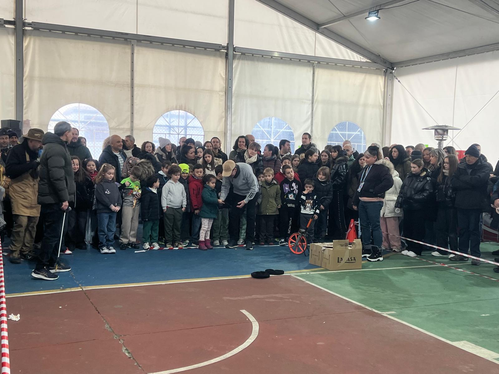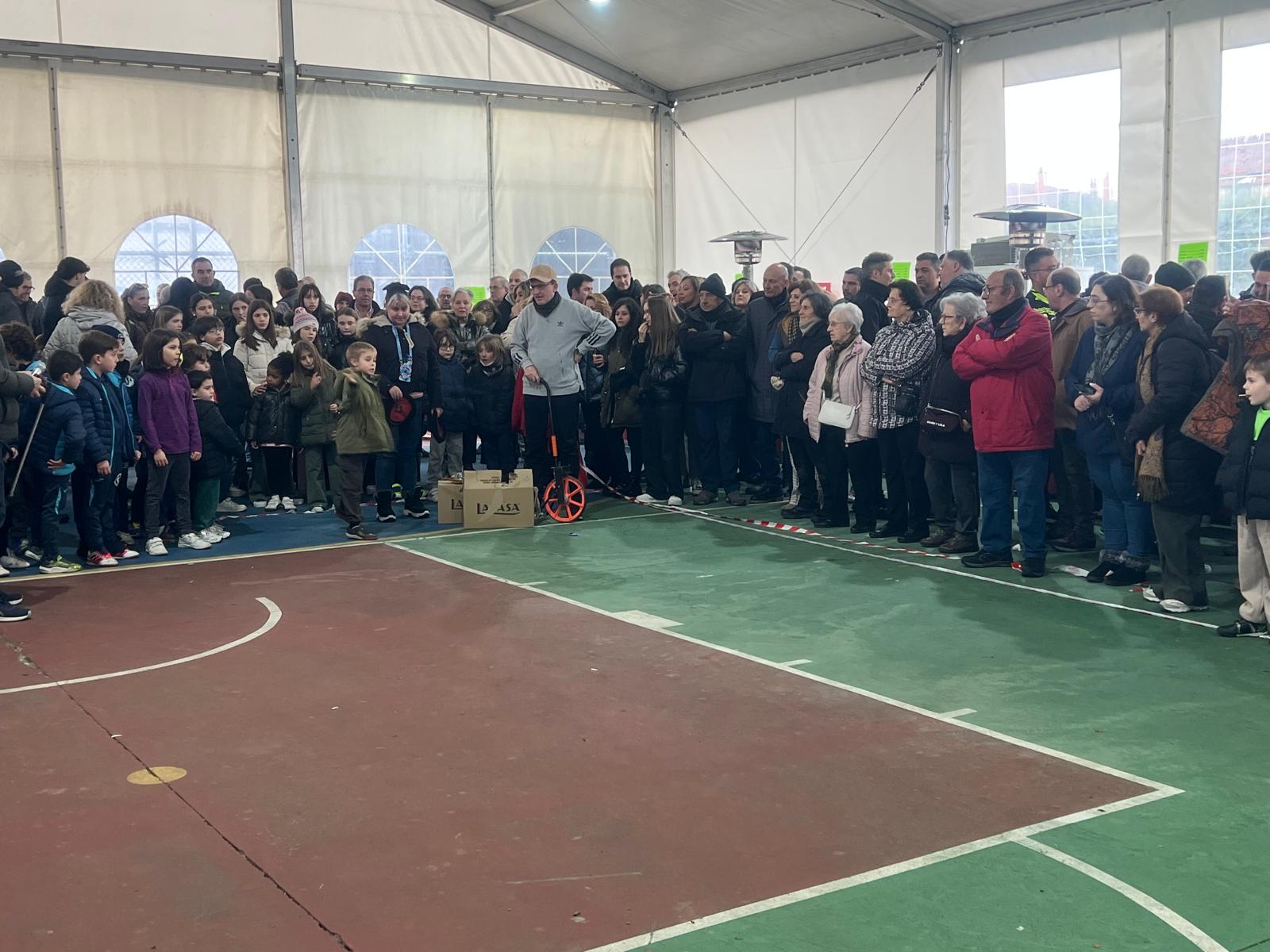 Los vecinos han llenado la carpa instalada junto al frontón para participar en el concurso, repartidos en las cuatro categorías establecidas: niños hasta 6 años, en la que ha resultado ganador Marcos Demetrio con una distancia de 11,65 metros; de 7 a 11 años, con Hugo Peña como campeón con 14,20 metros; de 12 a 17 años, que ha ganado Pablo Gómez con un lanzamiento a 14,52 metros; y jóvenes y adultos a partir de 17 años, la categoría más numerosa con más de cien inscritos.