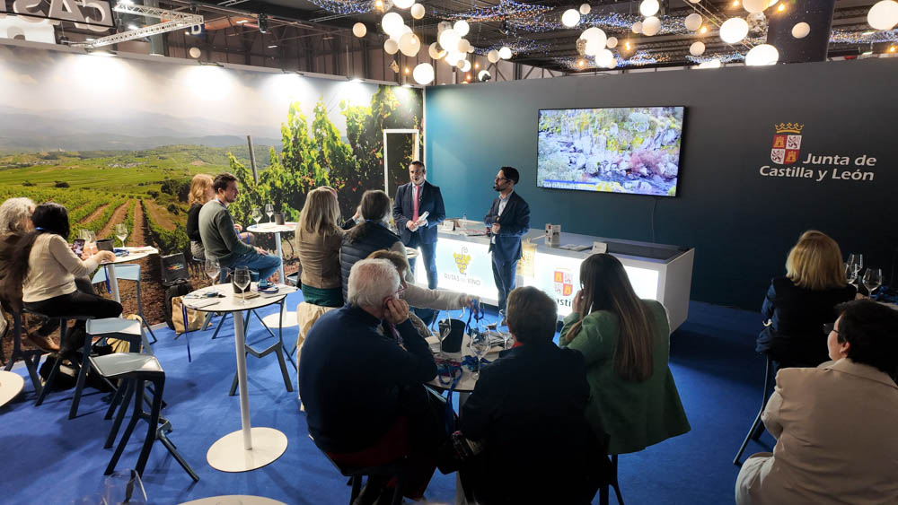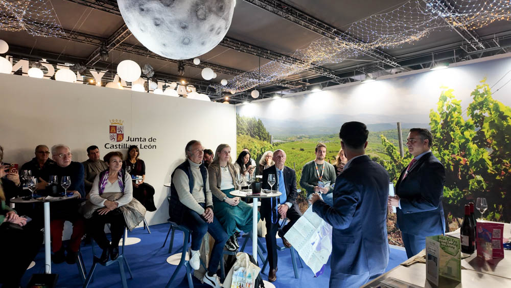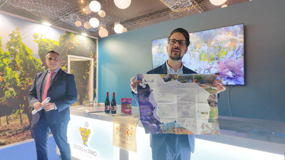 Desde el stand de las Rutas del Vino de Castilla y León, Labrador de esta ruta que «se configura como uno de los principales recursos turísticos del municipio y como una herramienta de interpretación del patrimonio, que permite al visitante comprender la historia, los oficios tradicionales y la evolución del paisaje urbano a través de un recorrido singular y con un gran atractivo!.
