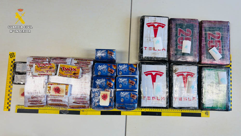 Durante el mismo, los agentes inspeccionaron un vehículo ante la sospecha de que pudiera haber ocultado algún tipo de sustancia estupefaciente en el mismo localizando 6 paquetes de cocaína con un peso total de 6,69 kilos y 126 paquetes de hachís con un peso total de 13,12 kilos. Los agentes procedieron a la incautación de las mismas, así como el vehículo empleado para el transporte y a la detención del conductor del turismo como supuesto autor de un delito contra la salud pública.