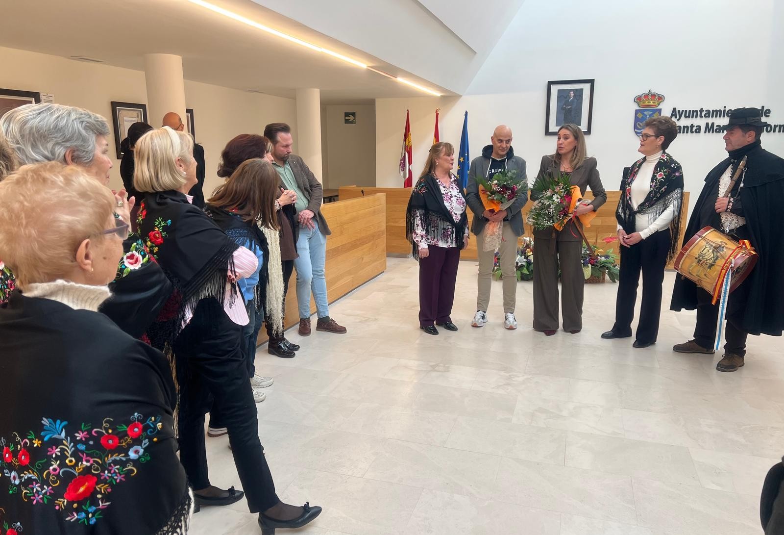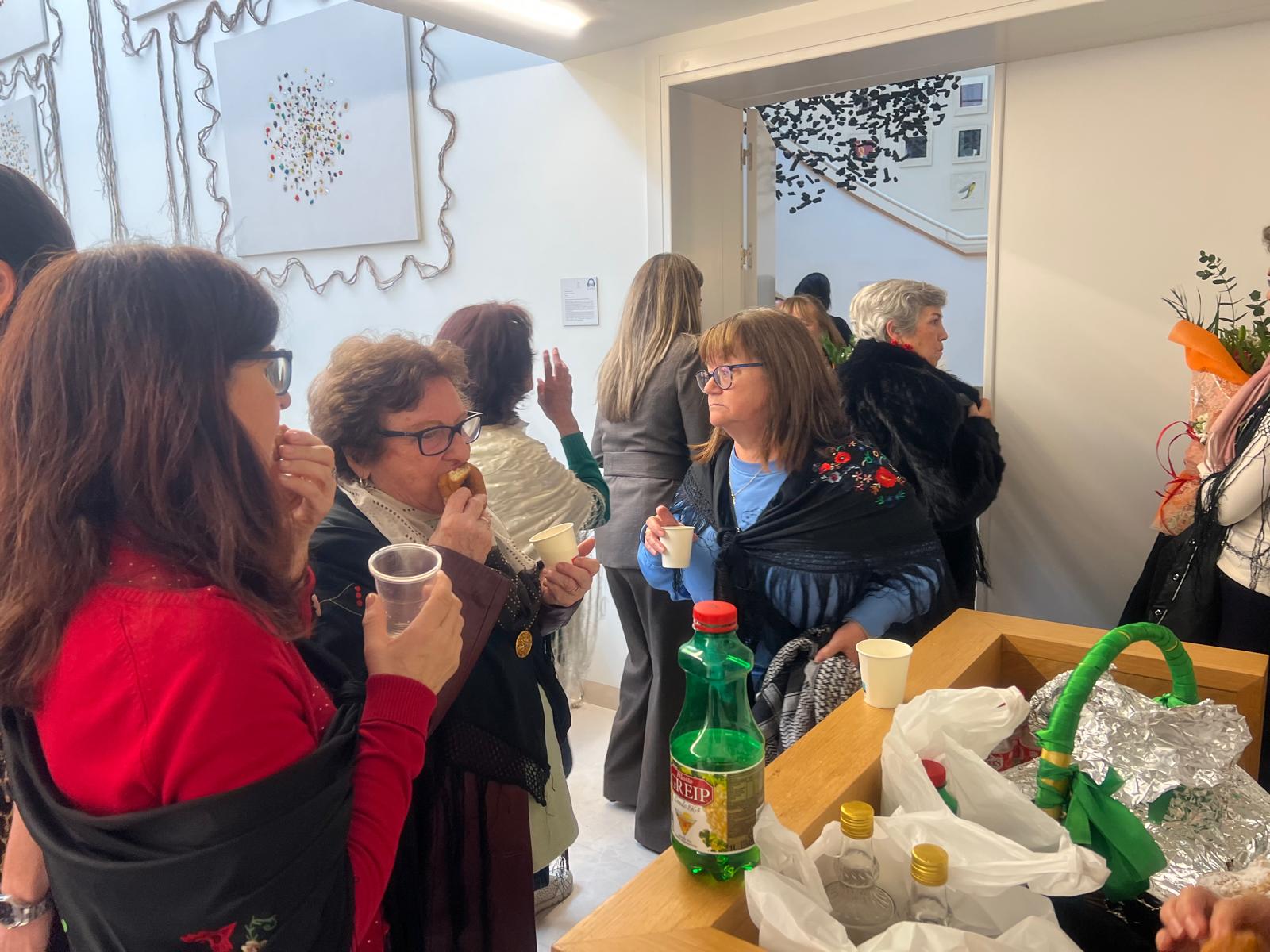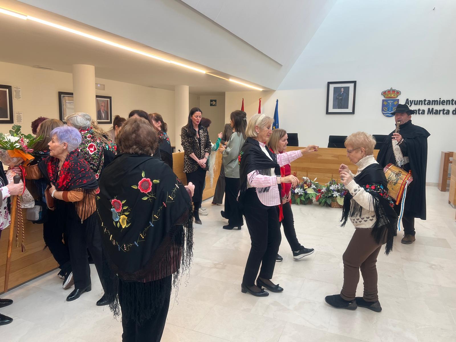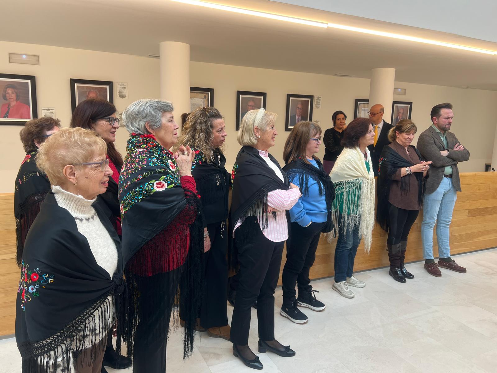 Las Águedas, ataviadas con sus mantones de Manila, han llenado el salón de plenos de música y bailes ataviadas con sus mantones y repartiendo dulces y vino moscatel para animar la jornada y han continuado la celebración de su primer día de fiesta.