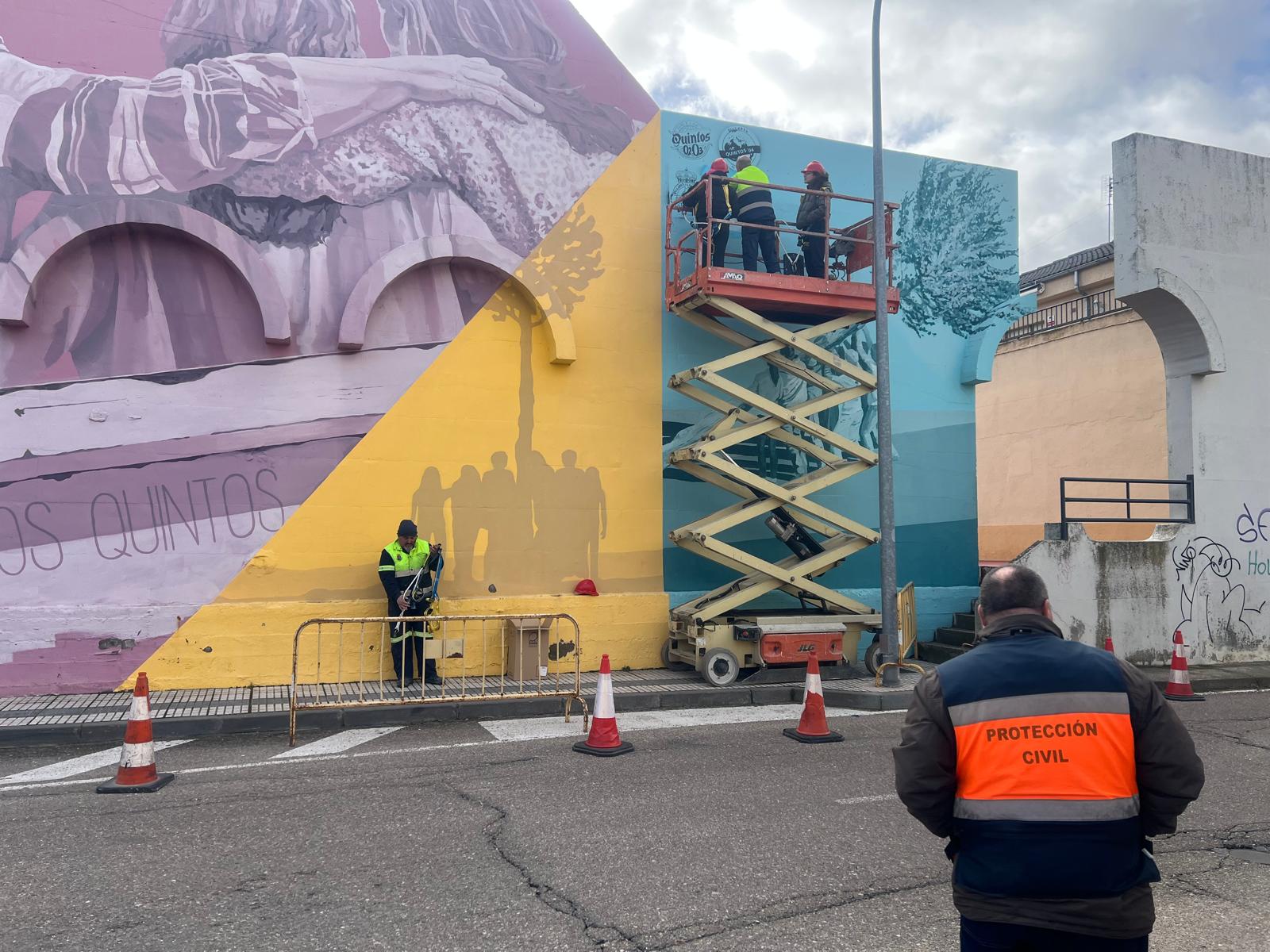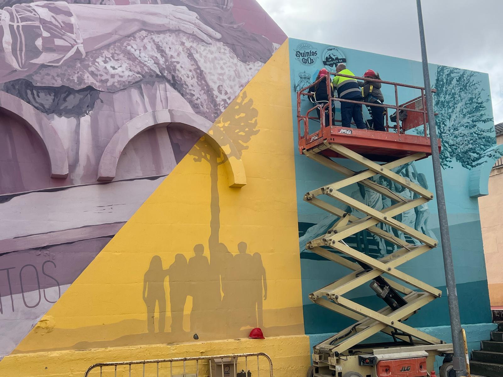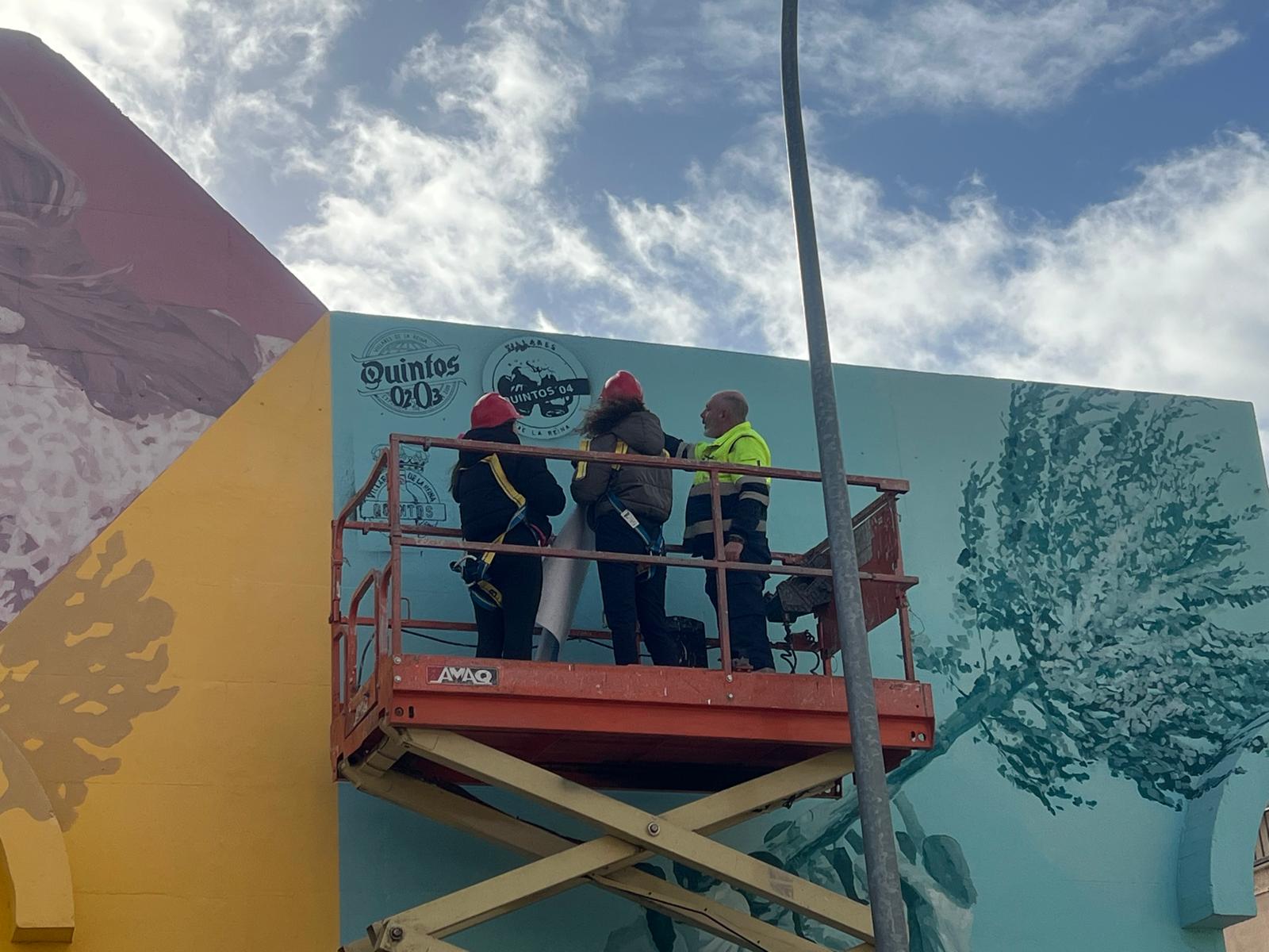 Los Quintos de 2006 de Villares estampan su sello en el mural dedicado a los jóvenes para iniciar su fiesta
