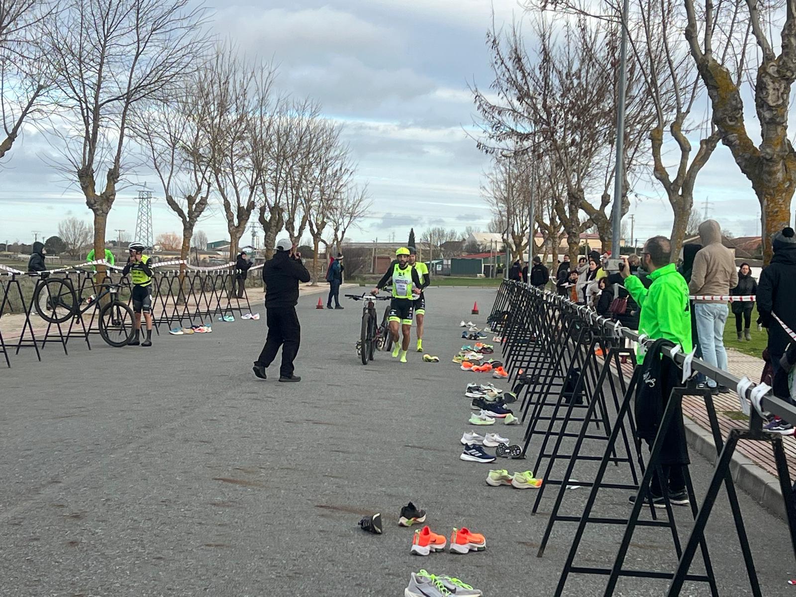 La categoría absoluta ha completado los 20,5 kilómetros de carrera: 3 km iniciales a pie,16 km en bici y el 1,5 km final a pie para cruzar la meta, mientras que las categorías menores han cubierto desde los 200 metros de los chupetines, a los 3 km de los peques y los 5 km en total de los infantiles.
