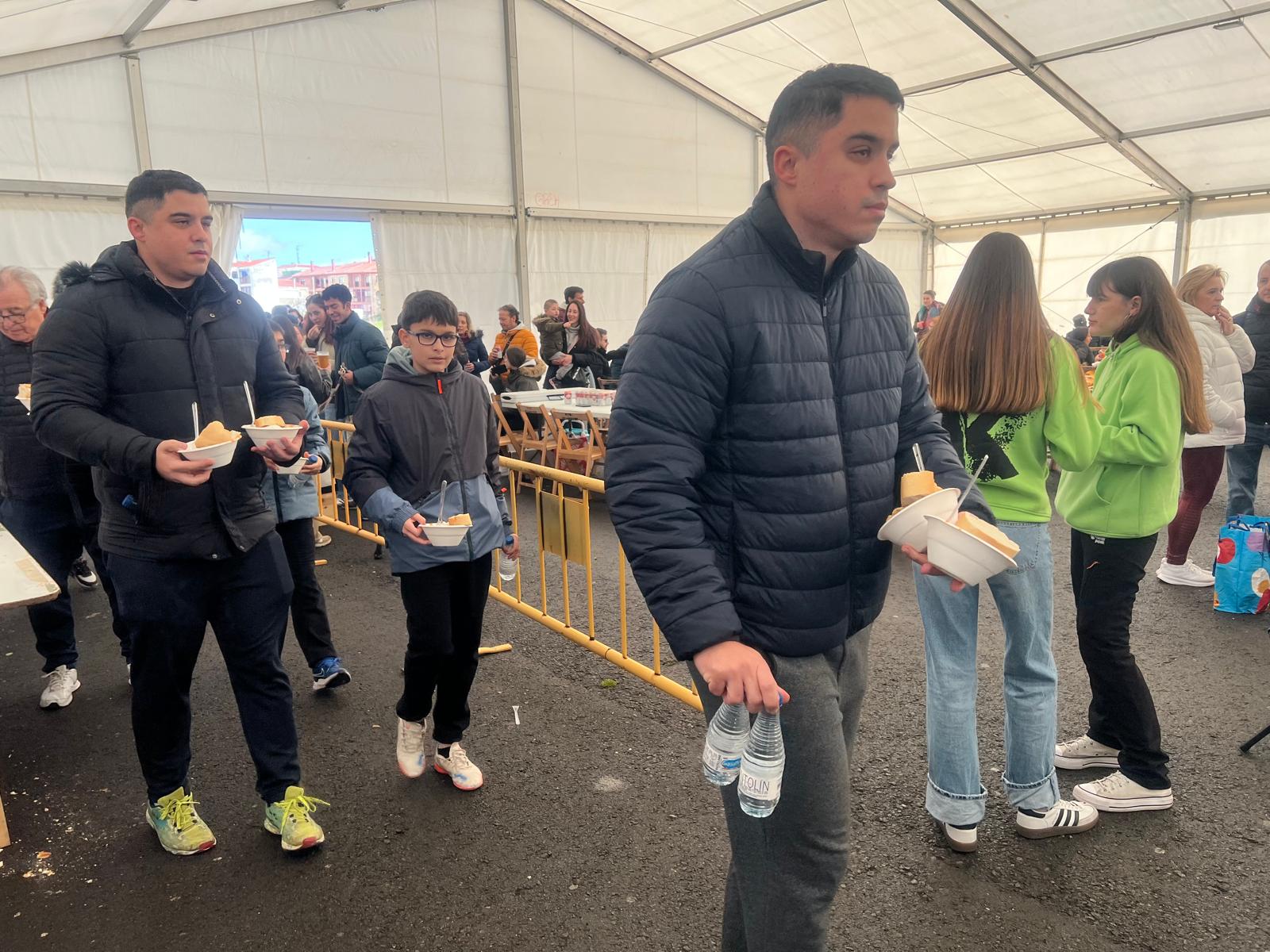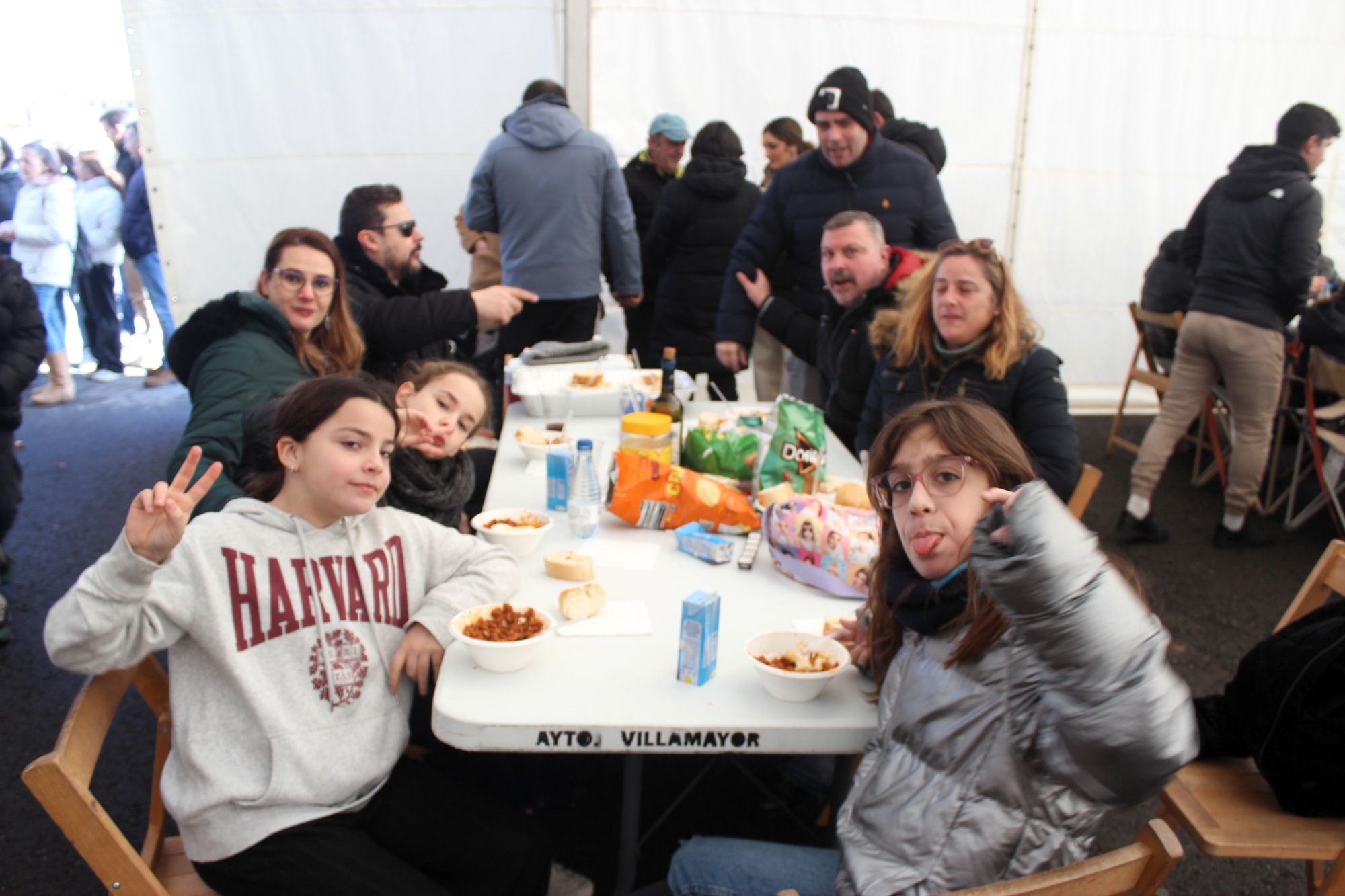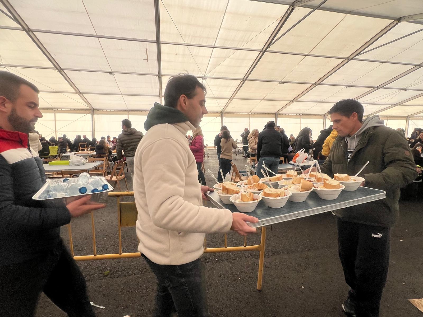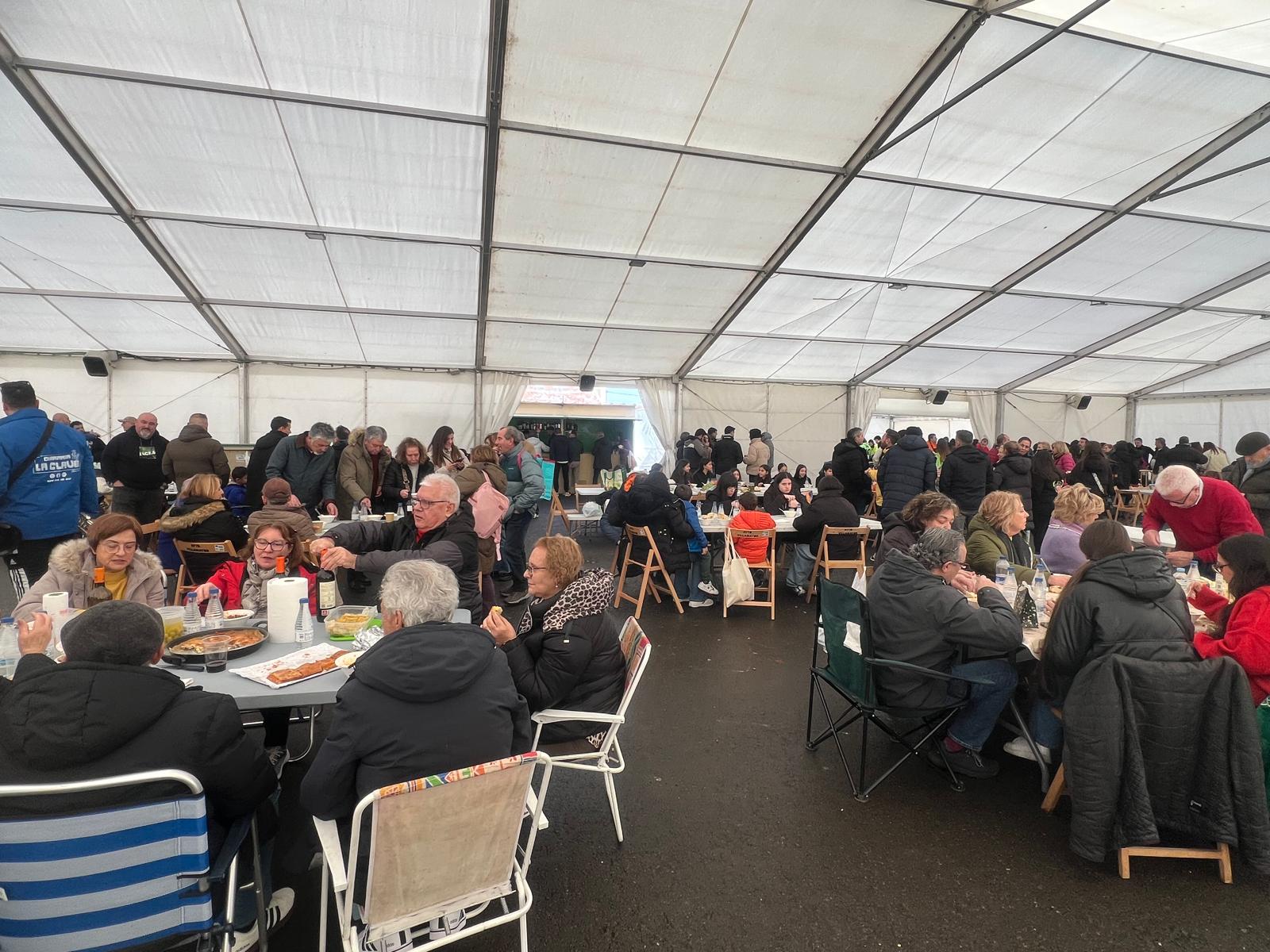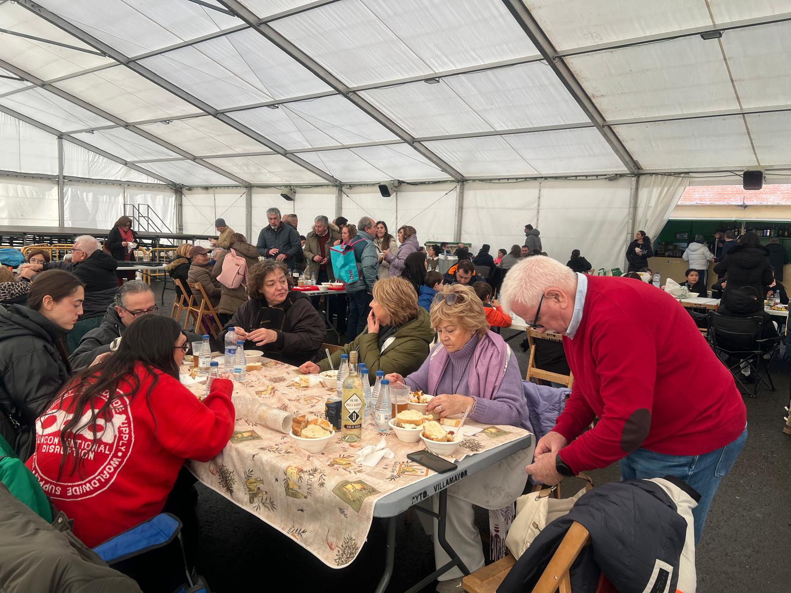 In año más, los vecinos de Villamayor han sido fieles a su cita con la comida popular de las fiestas de Las Candelas y se han reunido en la carpa del Recinto Ferial para degustar las más de 1.500 raciones que se han repartido.