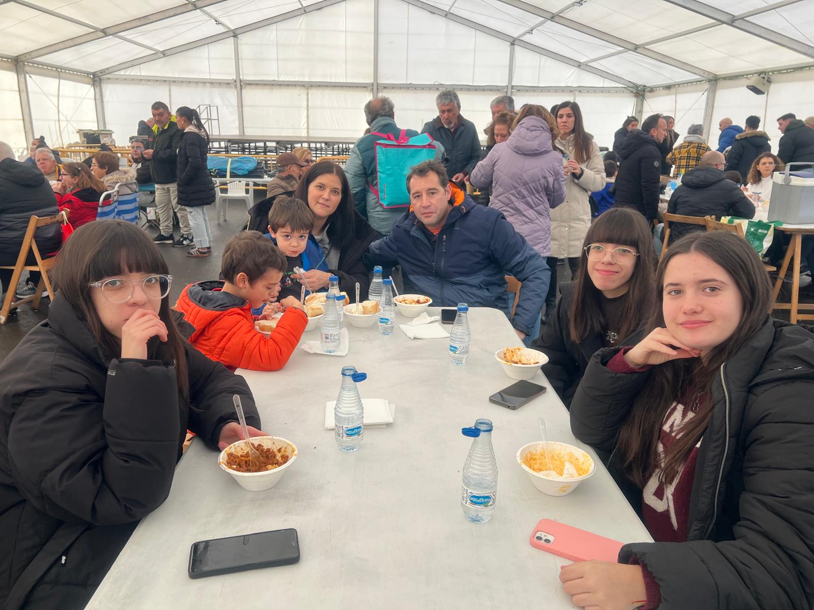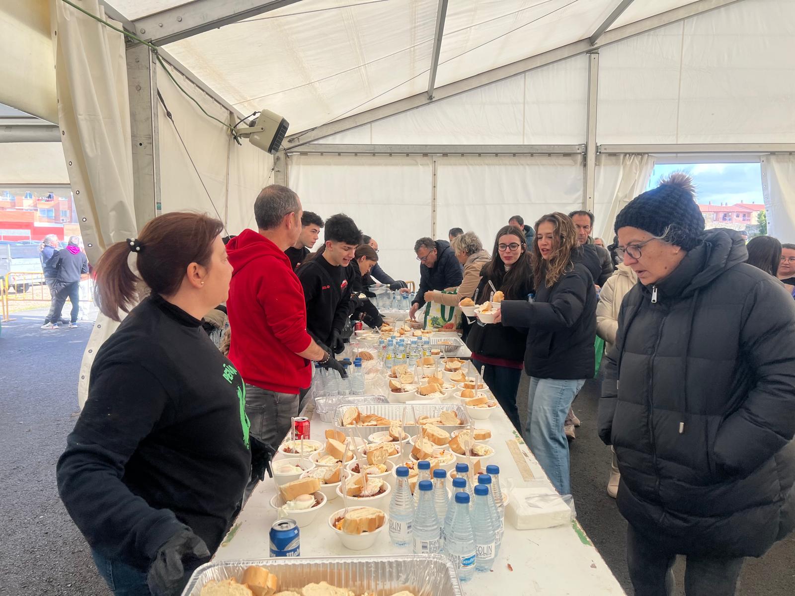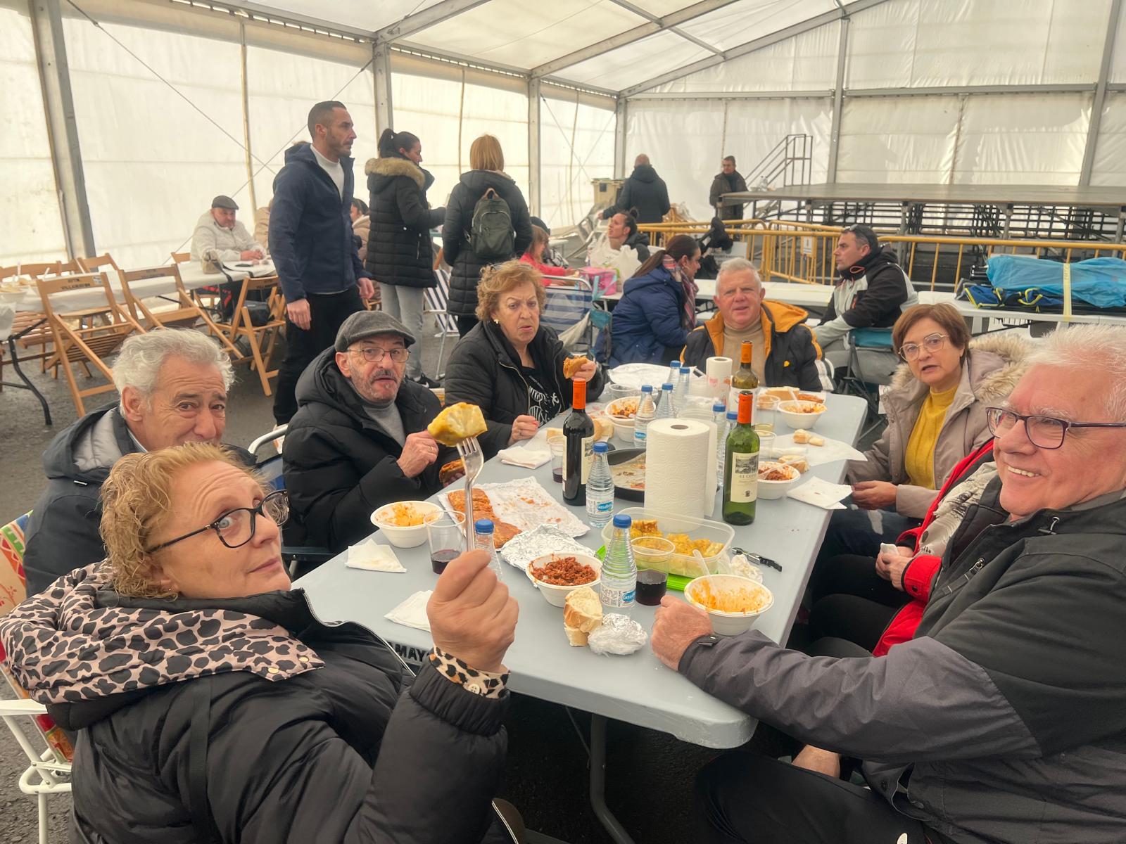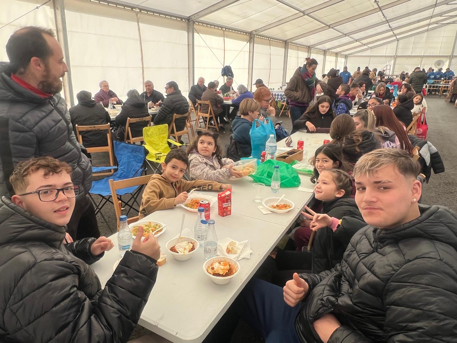 In año más, los vecinos de Villamayor han sido fieles a su cita con la comida popular de las fiestas de Las Candelas y se han reunido en la carpa del Recinto Ferial para degustar las más de 1.500 raciones que se han repartido.