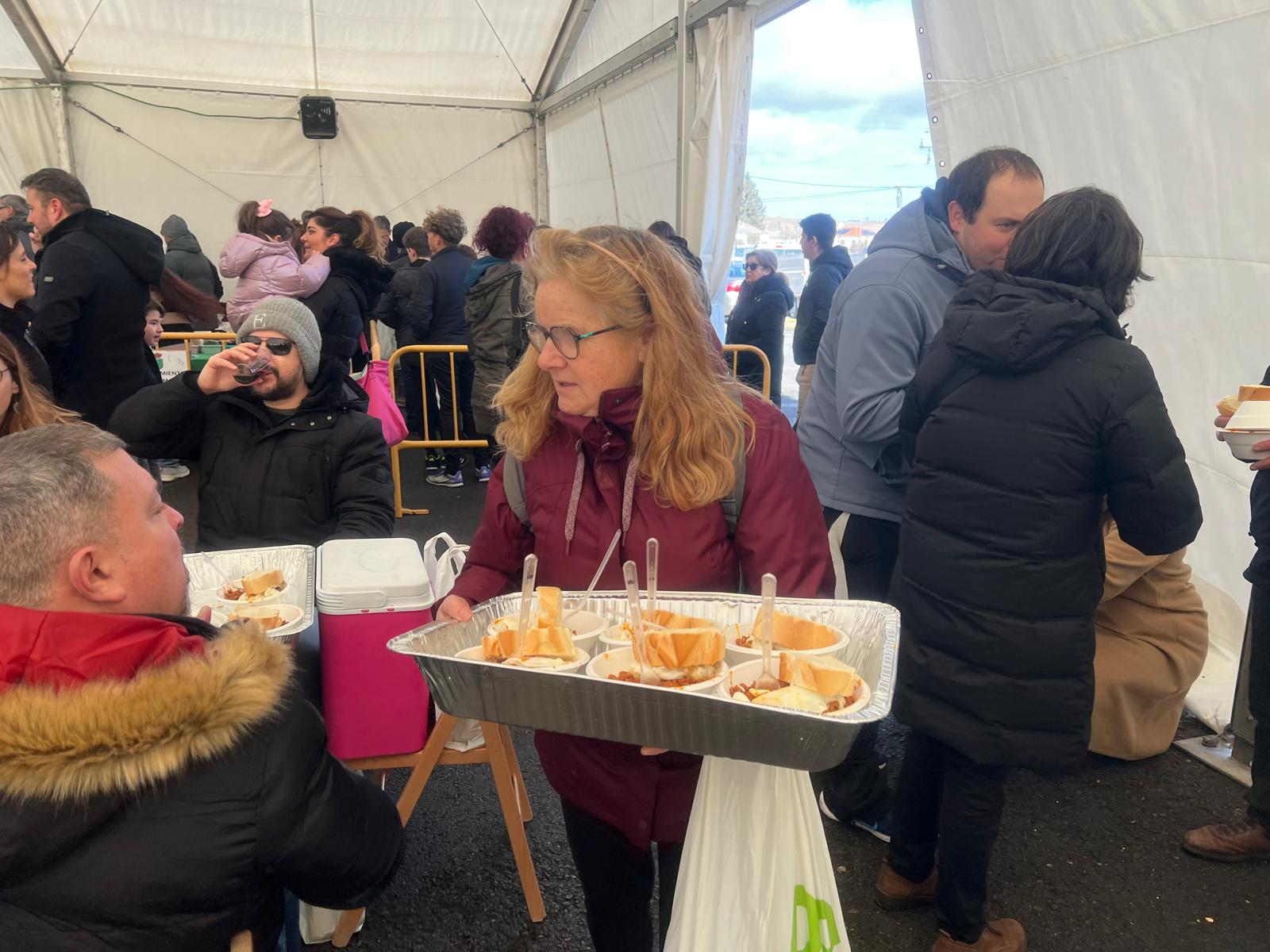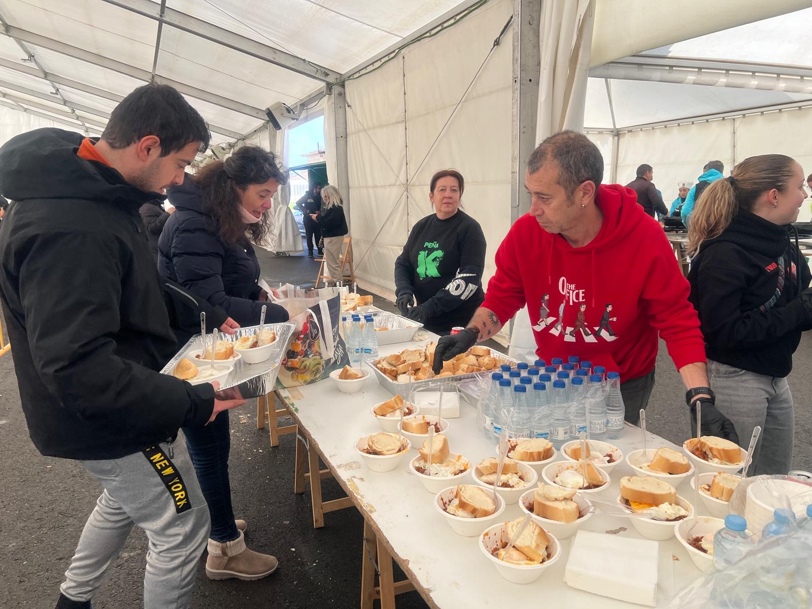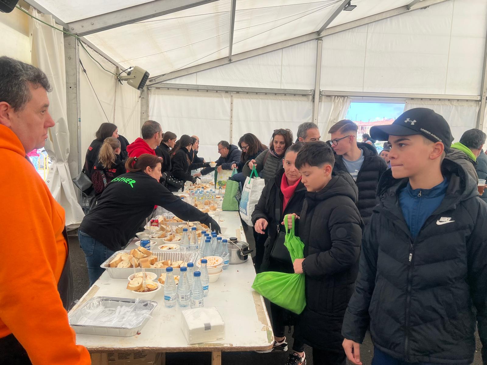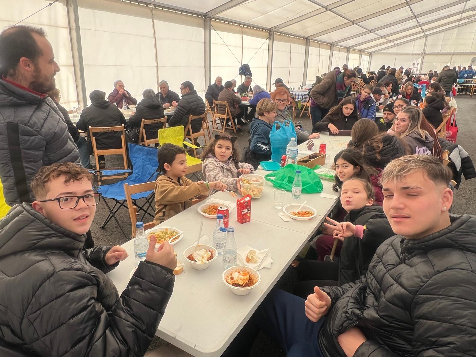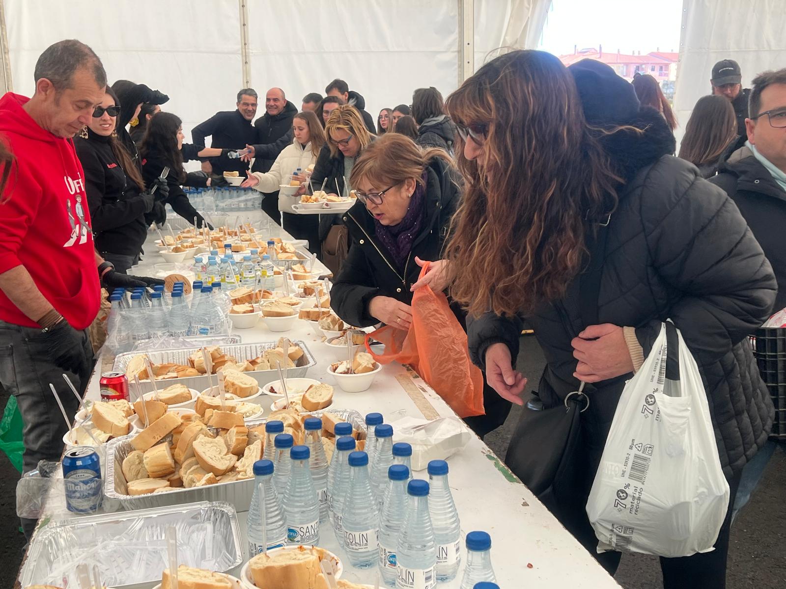 In año más, los vecinos de Villamayor han sido fieles a su cita con la comida popular de las fiestas de Las Candelas y se han reunido en la carpa del Recinto Ferial para degustar las más de 1.500 raciones que se han repartido.