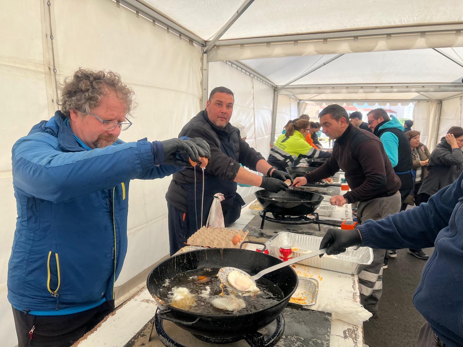 Un plato típico de estas fechas, en las que el frío y las jornadas matanceras invitan a degustar la probadura del cerdo y las familias han dado buena cuenta de las chichas con huevos, que algunos han preferido llevarse a casa para evitar el frío de la jornada de hoy.