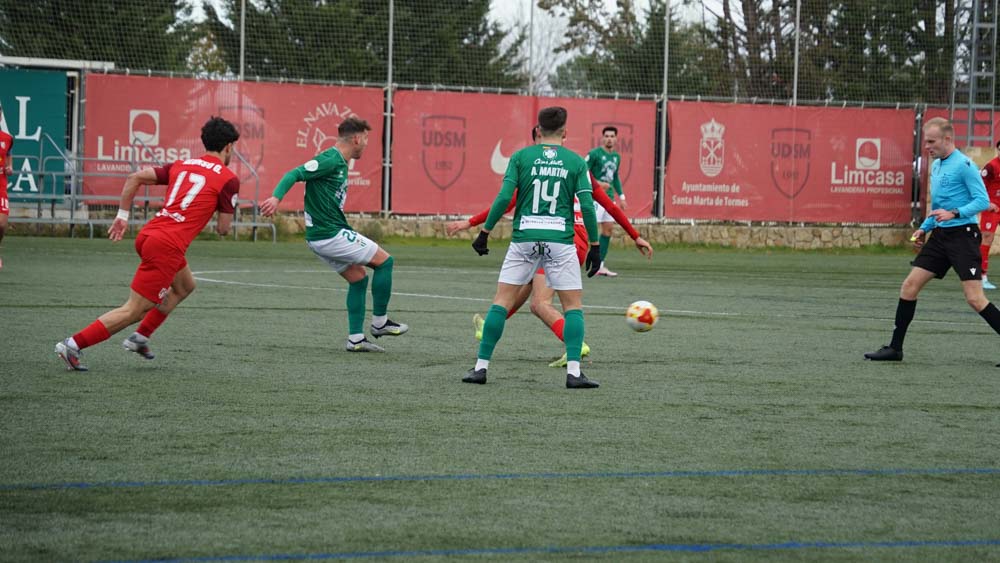 La Unión Deportiva Santa Marta ha demostrado por qué se encuentra en los lugares altos de la clasificación buscando el ascenso directo o los puestos de play-off. Un equipo veterano, maduro, con mucho oficio y moviéndose bajo las órdenes de Cascón, Santos, Galván o Chopi, que hoy salió desde el banquillo y unidos a la solvencia del portero Saldaña son un seguro para ganar tanto cuando son superiores como cuando son superados.