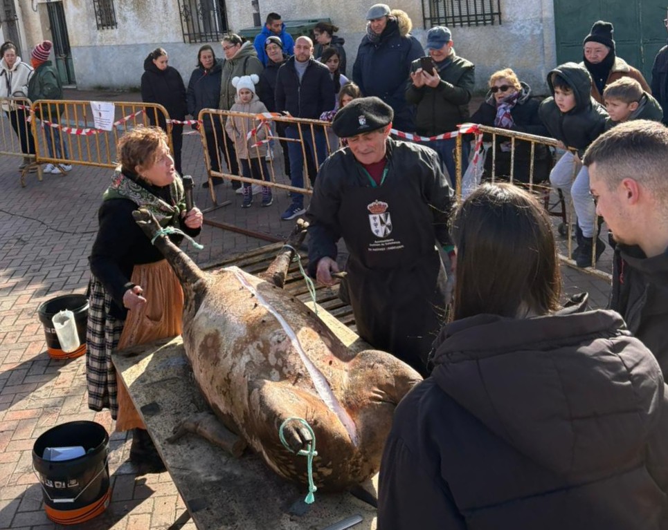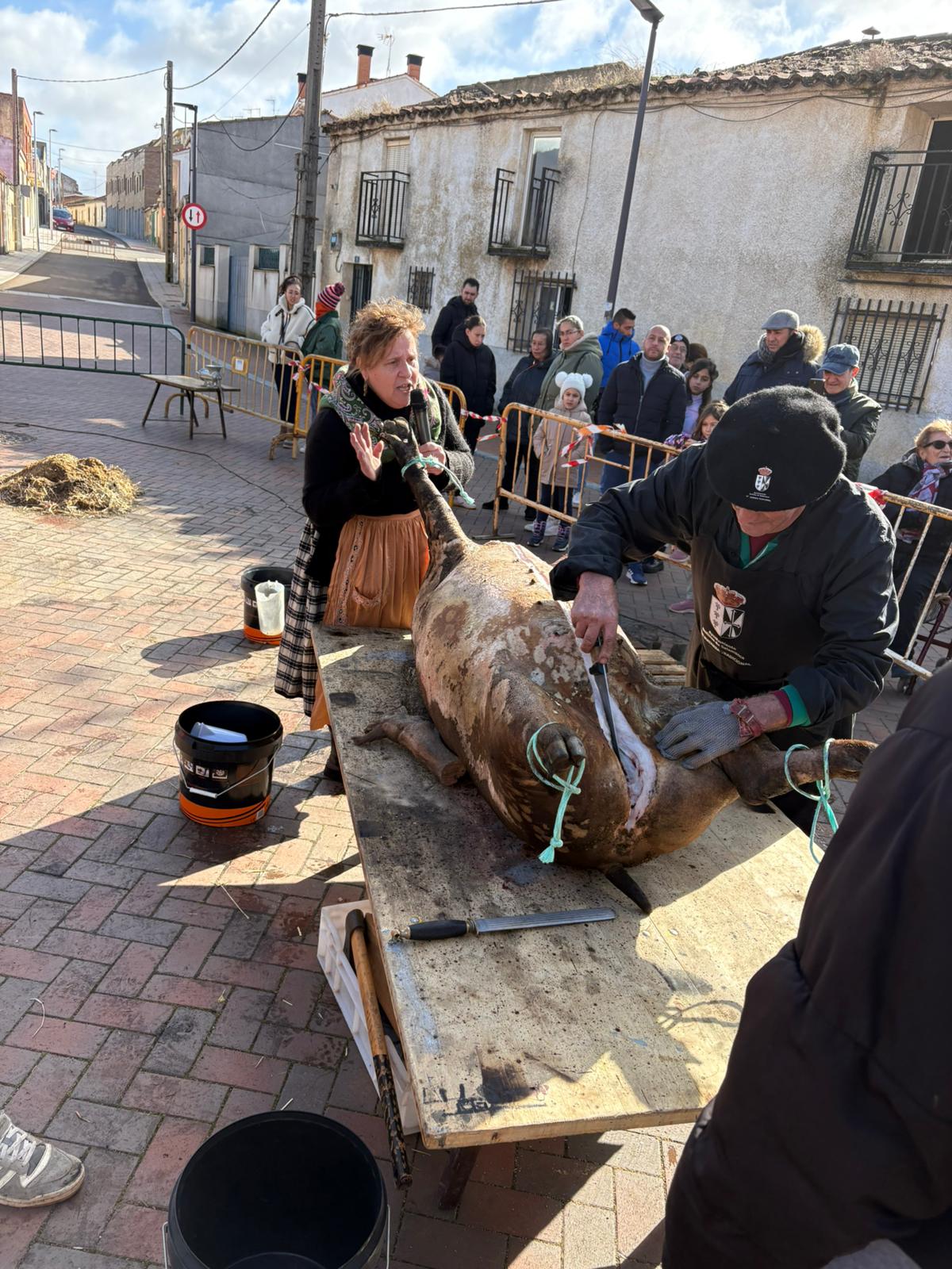 El cerdo de 180 kilos protagoniza la jornada matancera en Castellanos de Moriscos