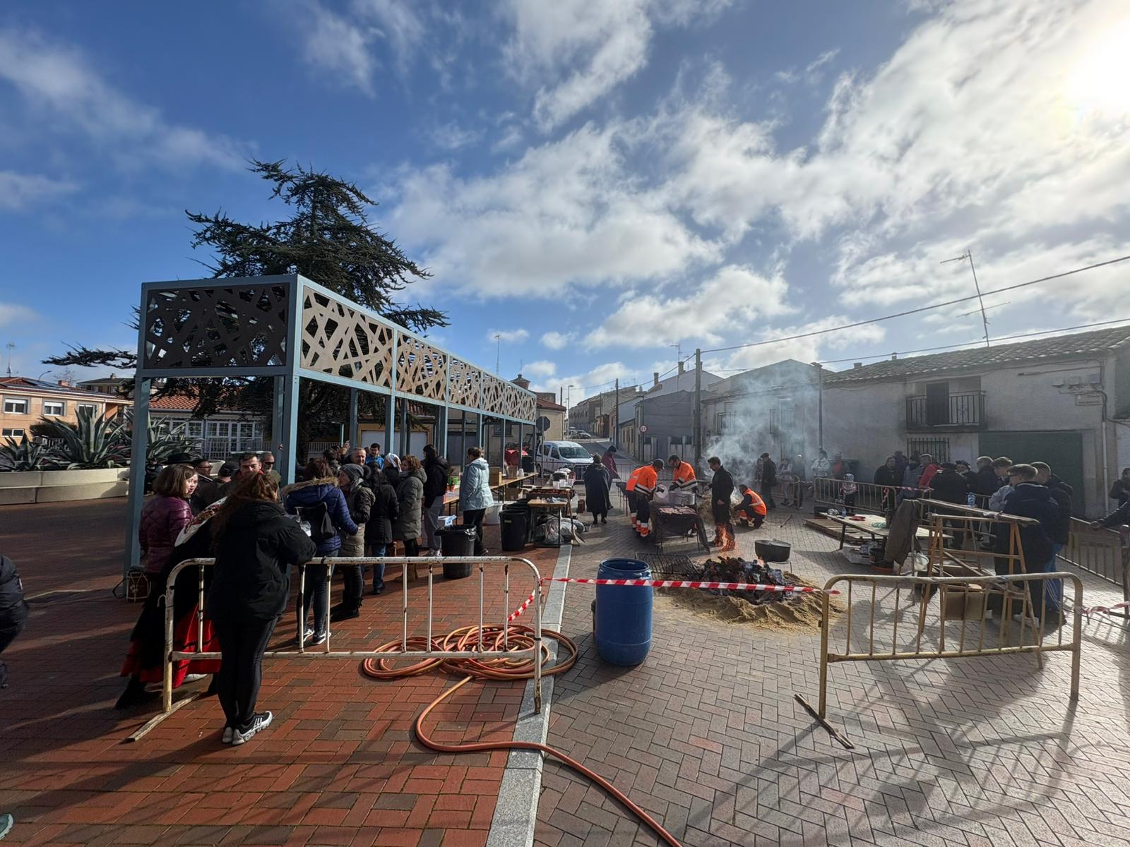 Invitación que se ha completado con el asado de 60 kilos de magro y otros 50 kilos de panceta, además la carne de las fiestas del año pasado, que estaba congelada y se han hecho filetes para asarlos y que 500 vecinos han dado buena cuenta en la comida matancera.