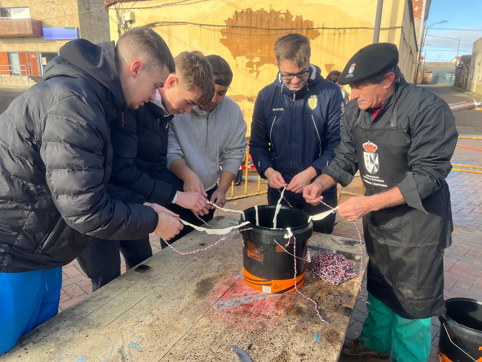 Mientras se realizaban los preparativos de las labores matanceras, los asistentes han degustado personillas, aguardiente y vino dulce para entrar en calor y coger energía para la mañana.