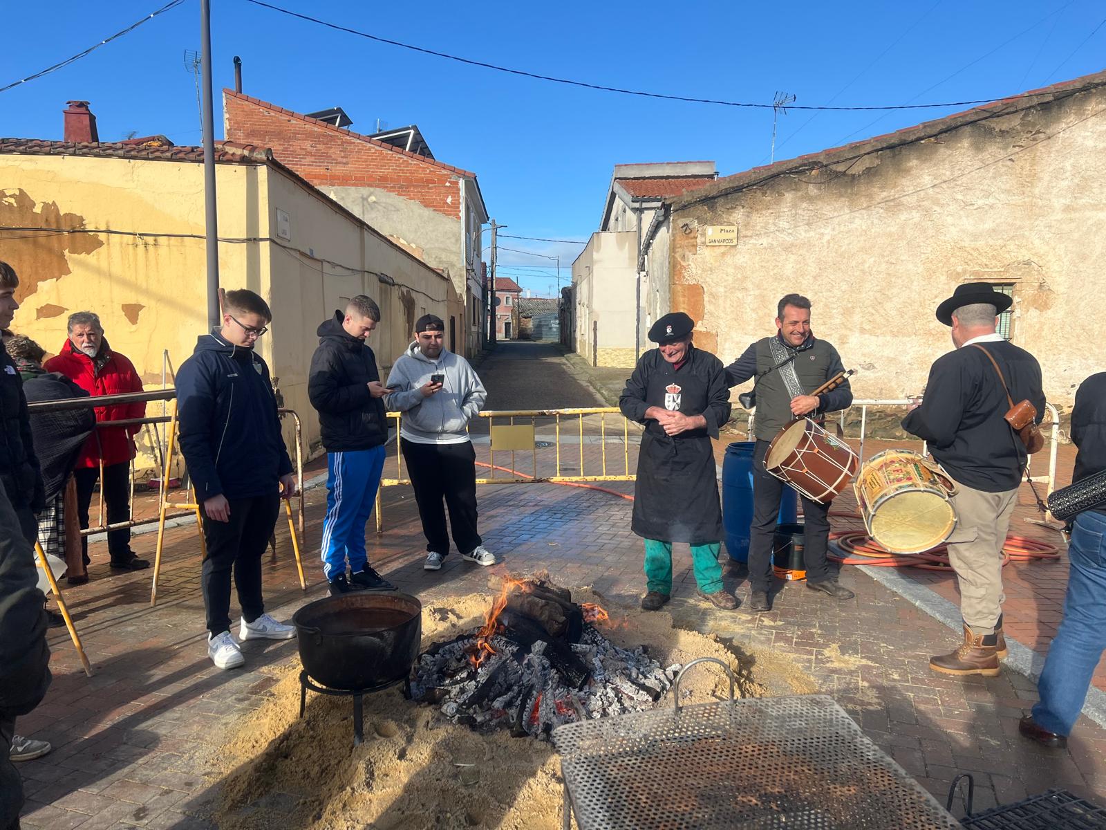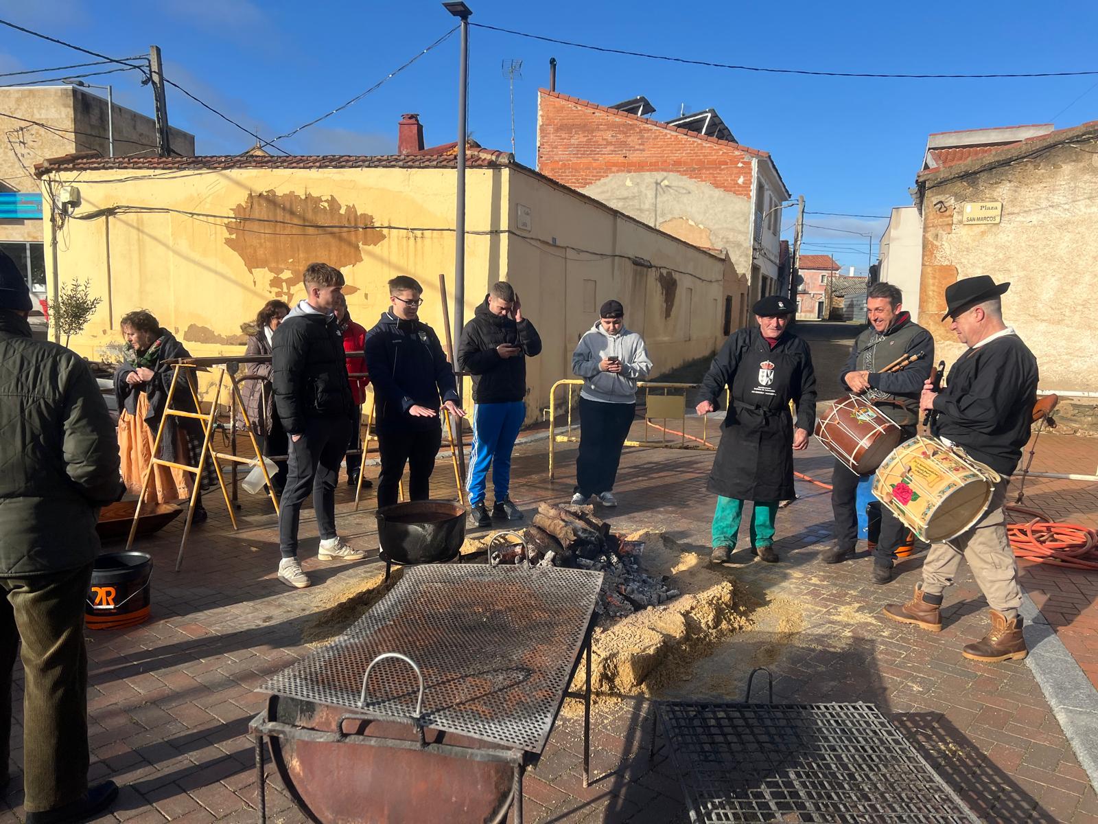 La lumbre y la música de los tamborileros han dado calor a fiesta de la matanza que ha celebrado Doñinos esta mañana.