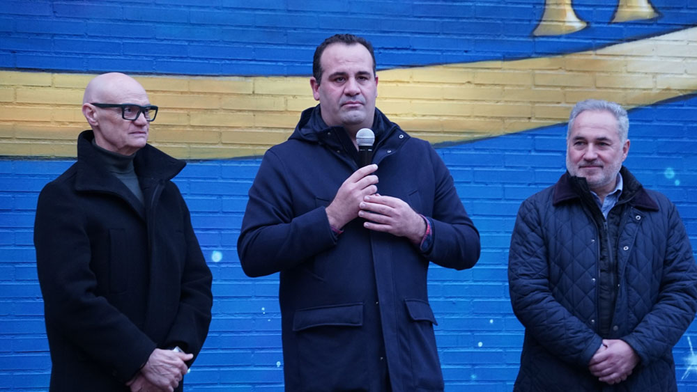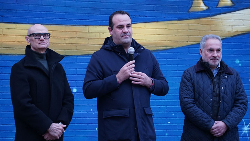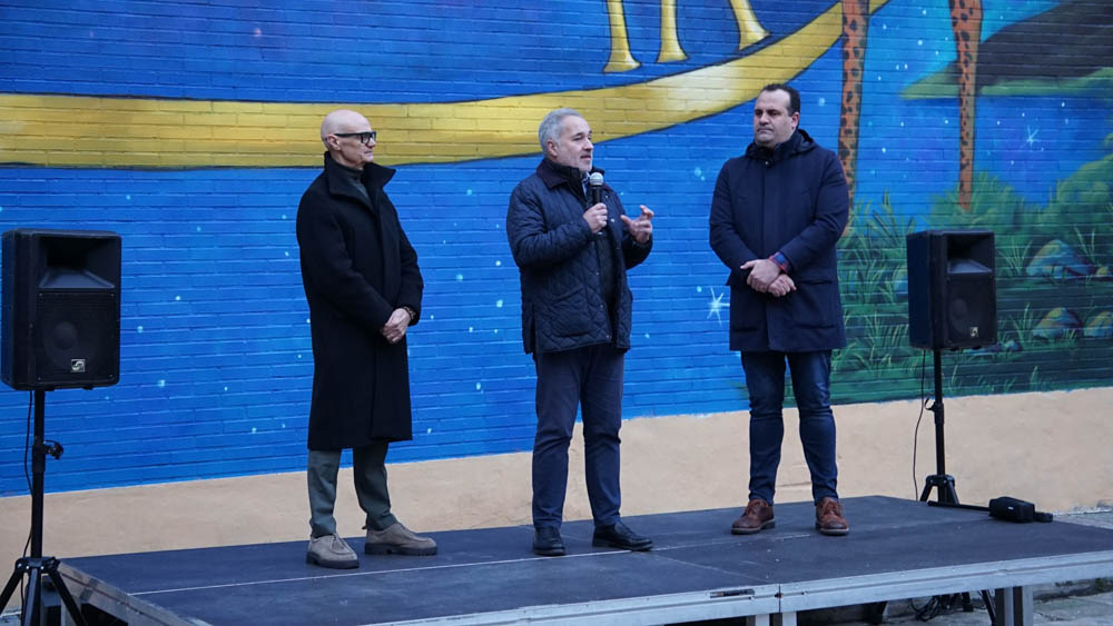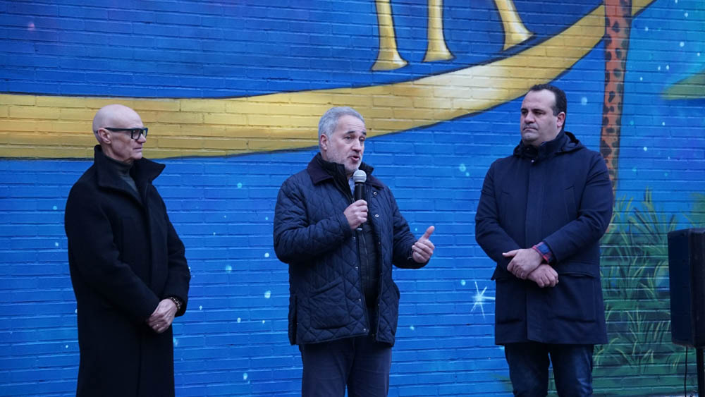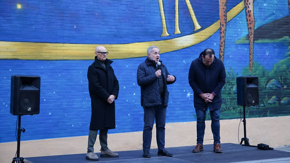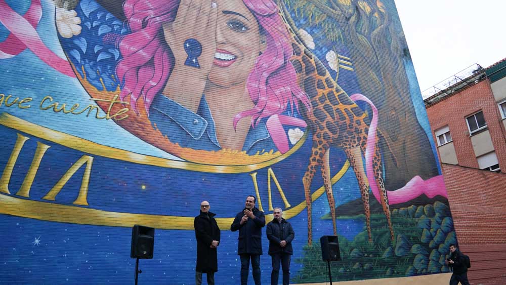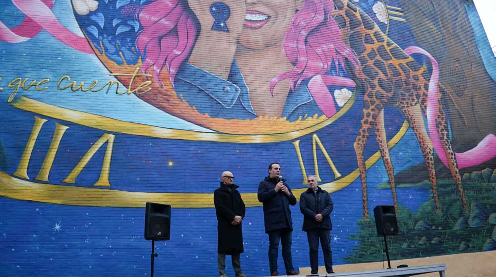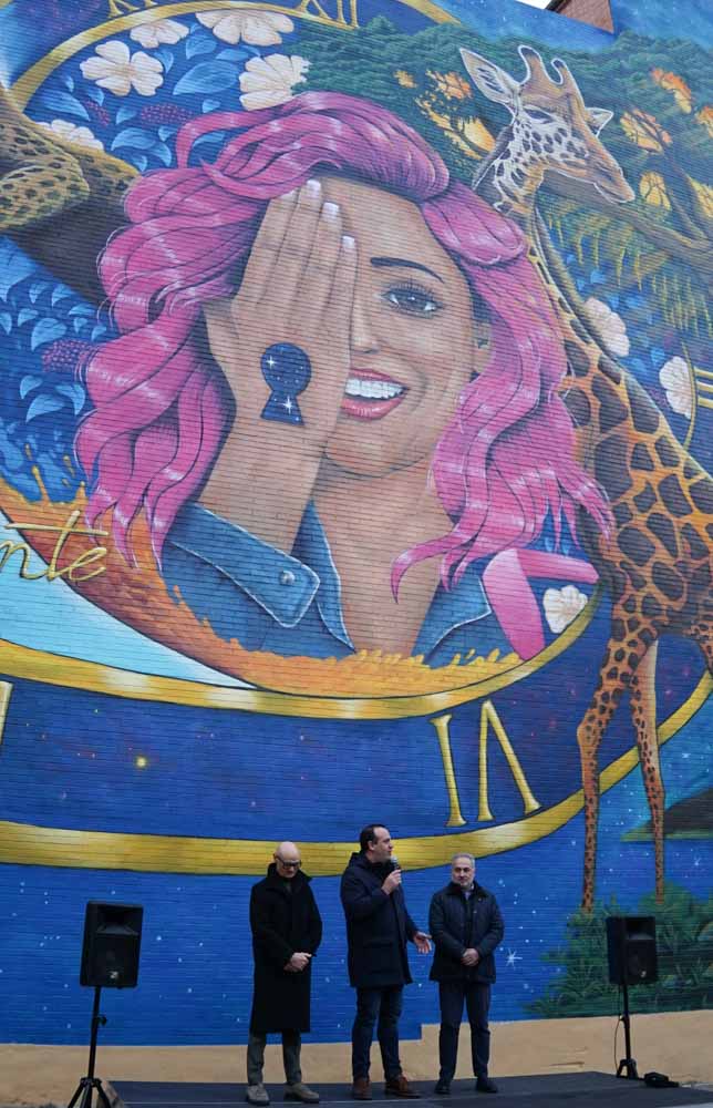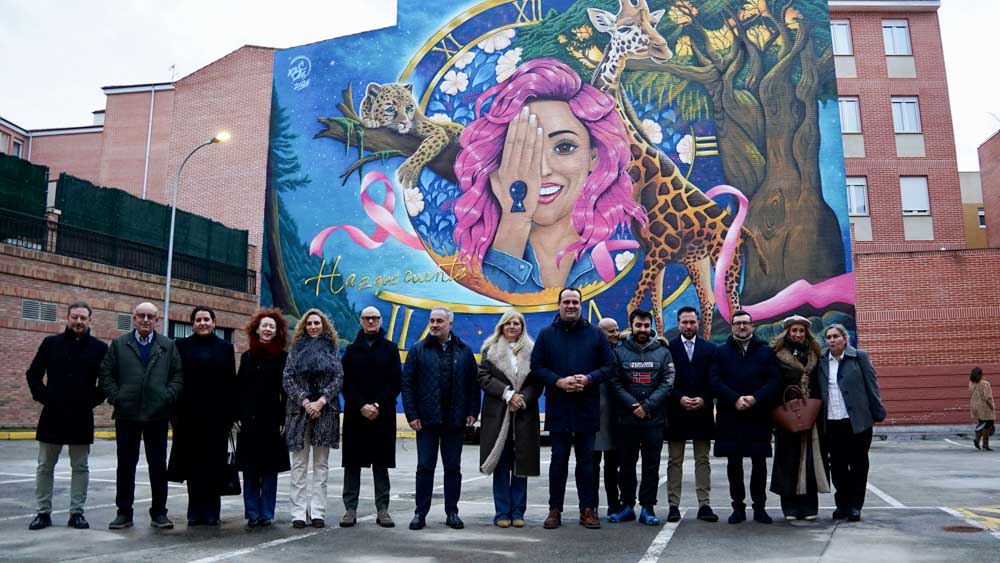 La céntrica calle Cervantes de Santa Marta de Tormes ha reunido a medio centenar de personas para inaugurar el mural de gran formato ‘Haz que cuente’. Una obra del artista Rober Bece que ocupa una superficie de aproximadamente 400 m2 y que busca rendir homenaje a las personas y a las familias que sufren la enfermedad.