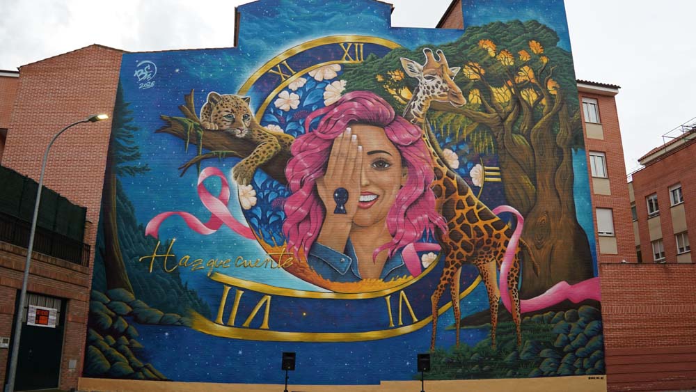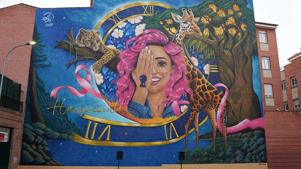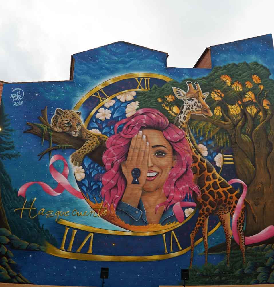 El autor de la obra, Rober Bece, ha querido agradecer las facilidades y la preocupación del Ayuntamiento para poder finalizar a tiempo una obra compleja que se ha complicado más aún con las condiciones meteorológicas pero que ha sido finalizada en diez días. Bece ha explicado la composición de la obra. «El reloj habla del tiempo, pero de un tiempo que acompaña, que no oprime y no es un enemigo, es una oportunidad para avanzar. La figura centra la mujer con pelo en rosa se debe a que el rosa es el color que simboliza la lucha y la resistencia. La cerradura es el acceso al mundo interior de las personas y también el acceso a la esperanza cuando todo parece incierto. Toda la obra está sujetada por un árbol, el árbol de la vida que simboliza la conexión entre el cuerpo y el alma y representa la continuidad, la conexión entre cuerpo y alma, y la capacidad de renacer una y otra vez, incluso tras la tormenta. Los animales son los guías. La jirafa, con su enorme cuello, nos invita a levantar la mirada y verlo todo con una perspectiva diferente. El guepardo nos habla de la vulnerabilidad de una cría pero también de la energía y la determinación para seguir corriendo cuando el camino es duro. La naturaleza que los rodea recuerda que el ser humano forma parte de algo mayor, y que incluso en los momentos más duros seguimos perteneciendo a la vida. Por último, el lazo rosa conecta todos los elementos con una atmósfera que transforma el miedo en belleza y en esperanza, no es solo un símbolo del cáncer, es un hilo de unión entre cuerpo, mente, naturaleza y tiempo, uniendo lo visible con lo invisible.
