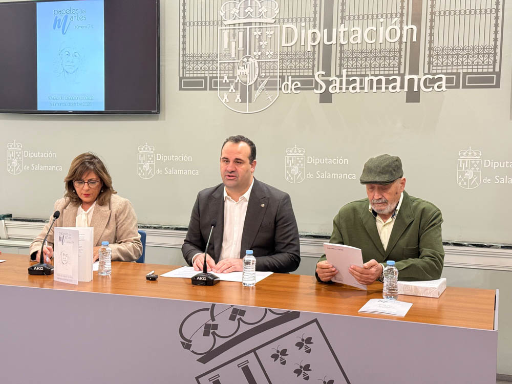 El diputado de Cultura, David Mingo, ha presentado junto a la escritora y coordinadora de la revista Isabel Bernardos y al artista Amable Diego la 74 edición de la publicación ‘Los Papeles del Marte’. Para este número se ha contado con la participación de 21 poetas, con gran presencia de escritores salmantinos. Una publicación que no sale a la venta pero que se distribuye por toda España, muchos países de Europa, Estados Unidos, China o Japón para llegar a los poetas de todo el mundo.
