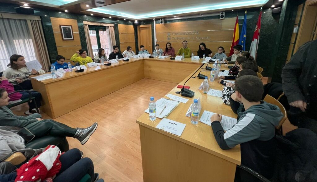 El salón de plenos ha acogido la reunión del Consejo de Niños y Adolescentes, dentro del programa municipal Ciudad de los Niños, en el que los representantes de los escolares de los tres colegios de Carbajosa (Pablo Picasso, La Ladera e Isabel Reina de Castilla), además de trasladar las necesidades, arreglos y mejoras en los parques e instalaciones deportivas y los desperfectos que aprecian cada día en las calles, en este encuentro han planteado propuestas novedosas como la organización de un museo de las culturas o distintas acciones de voluntariado, demostrando una vez más su espíritu solidario y de ayuda a los demás.