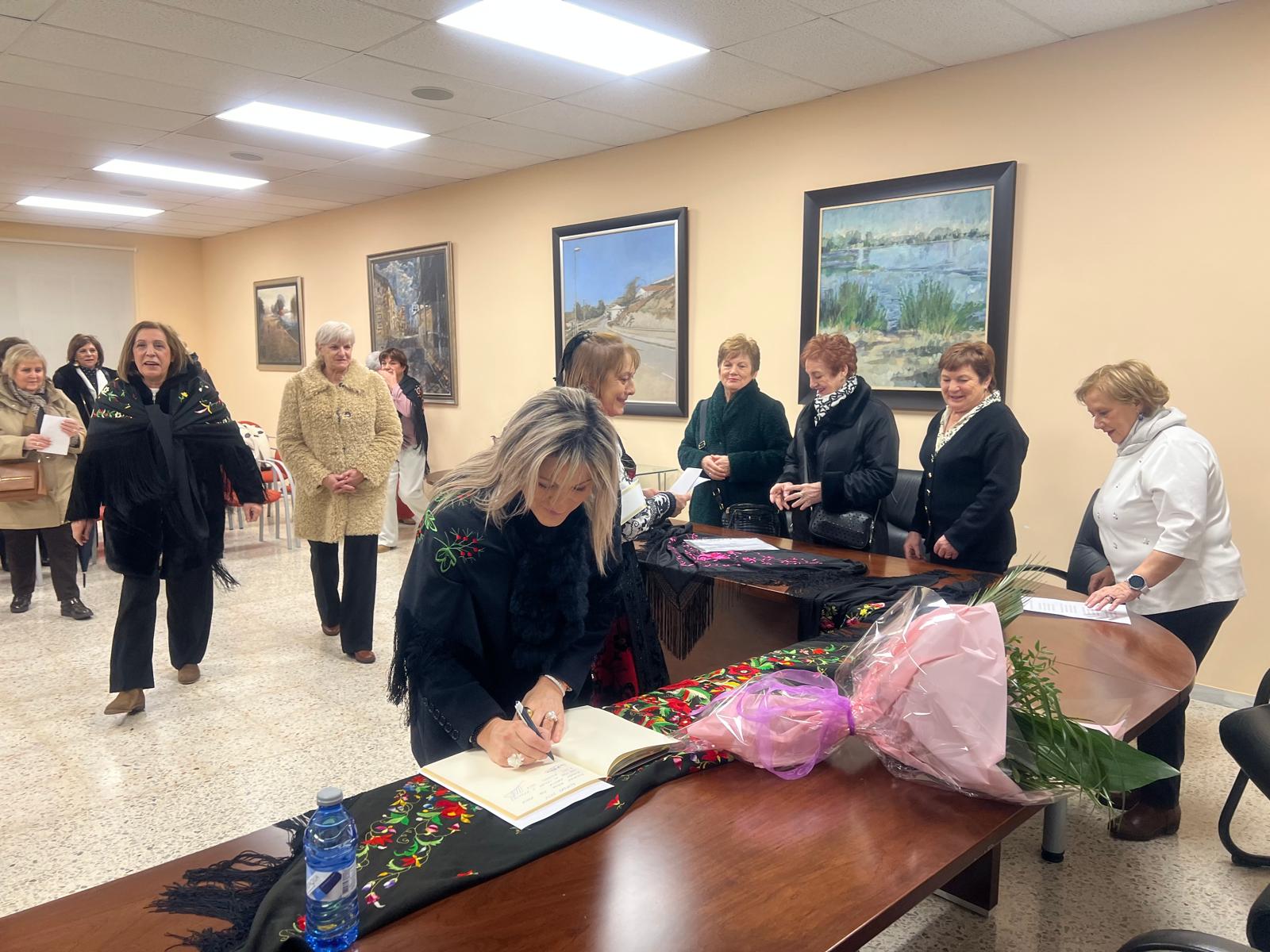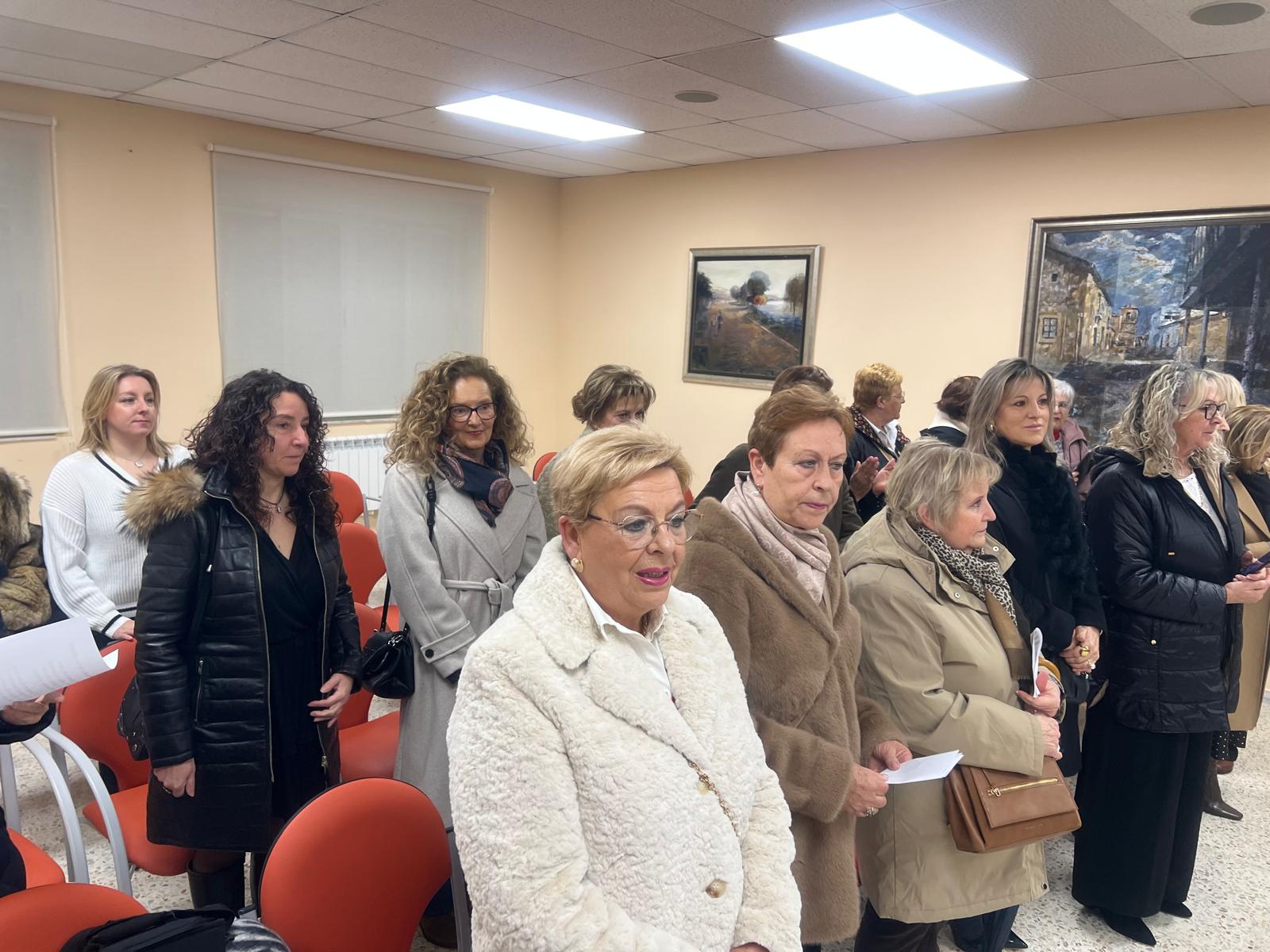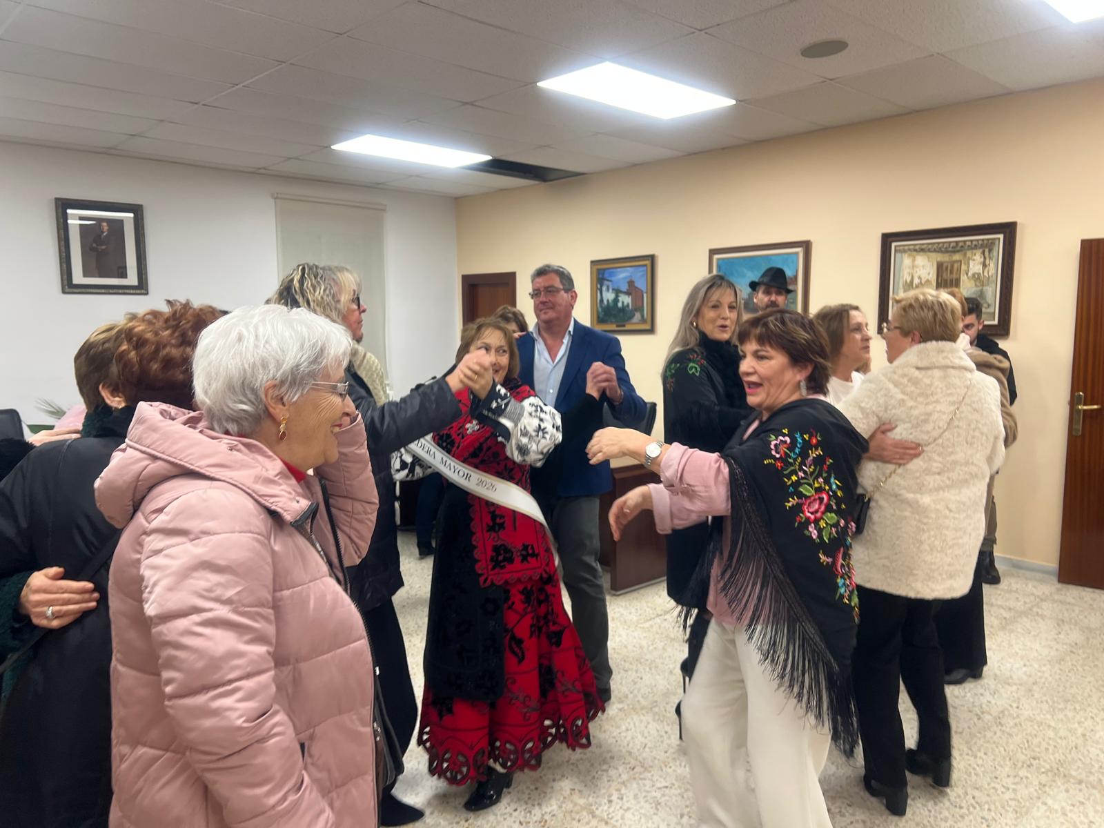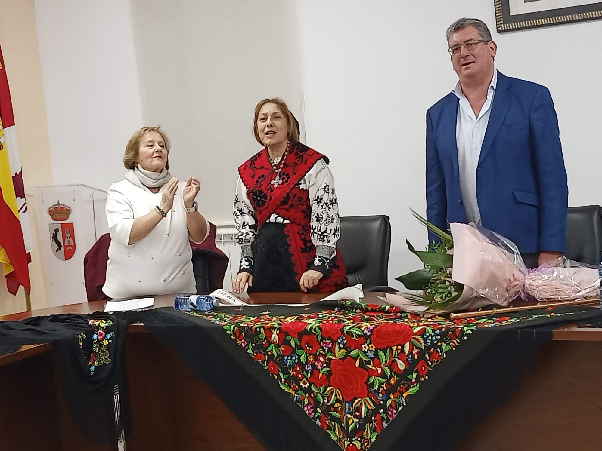 La celebración del día de Santa Águeda ha reunido a una veintena de mujeres en el salón de pleno del Ayuntamiento para participar en la entrega del bastón de mando por parte del alcalde, Claudio del Río, a la aguedera mayor, Ana María Alfaraz, que este año asume el cargo con su elegante traje de charra.