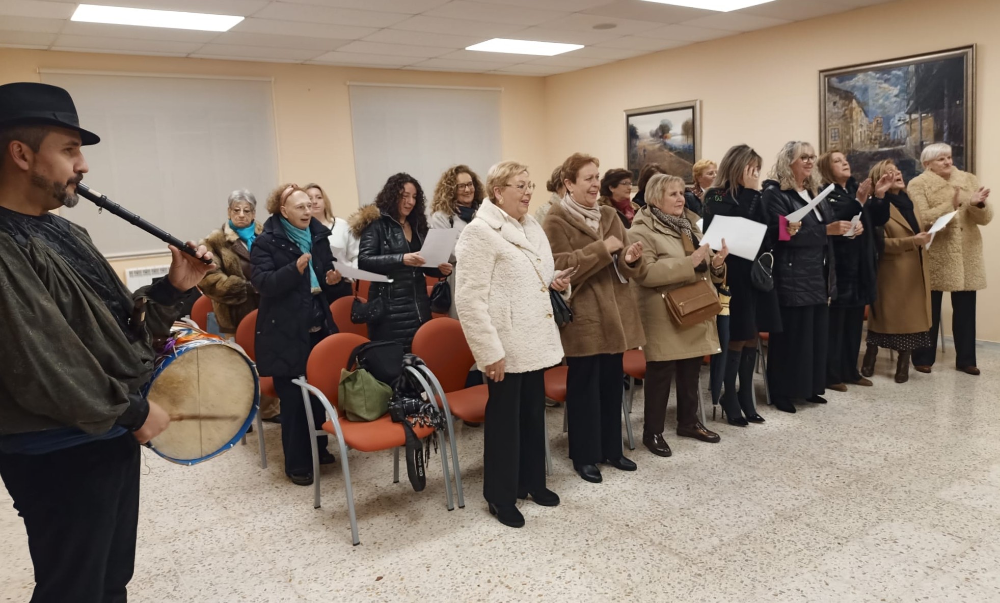 Las mujeres han cantado y bailado al ritmo de la música del tamborilero, que ha acompañado a las mujeres durante su jornada festiva.