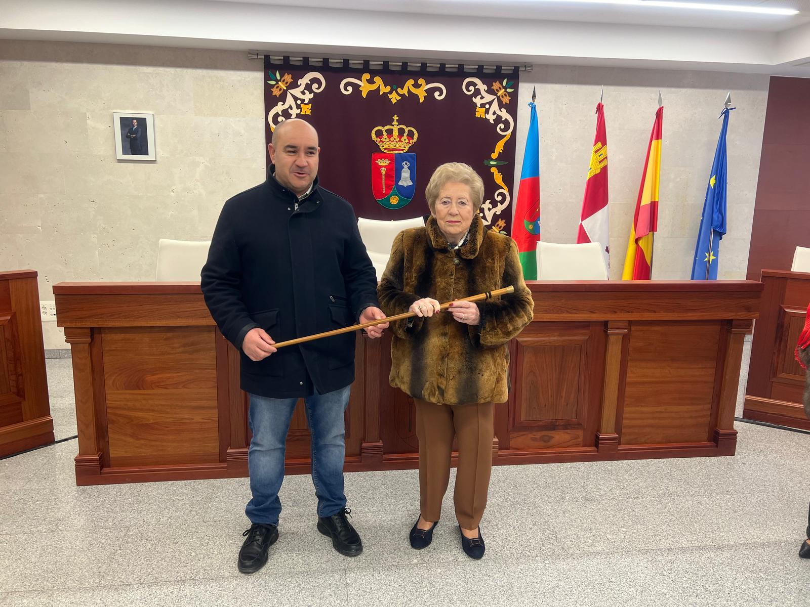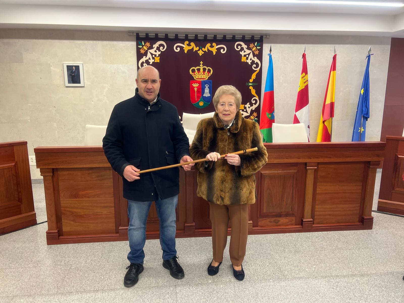 El alcalde de Villares, Ventura Recio, ha entregado el bastón de mando a Genoveva Sánchez Rincón como aguadera mayor de este año.