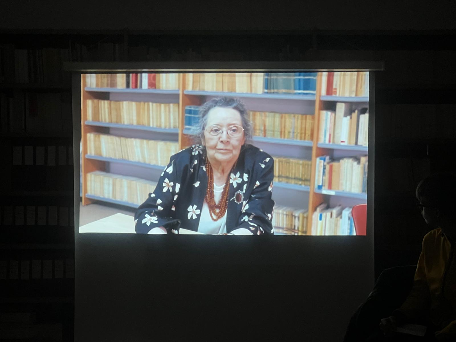 La proyección de una entrevista realizada en la propia sala ha vuelto a revivir el espíritu de Berta y su pasión por los libros y la lectura, que transmitía a niños y mayores, para inculcar el hábito de la lectura y la importancia de leer al menos una página al día, porque «sin los libros faltaría la memoria del mundo y es malo perder la memoria de lo que fue», como defendía.