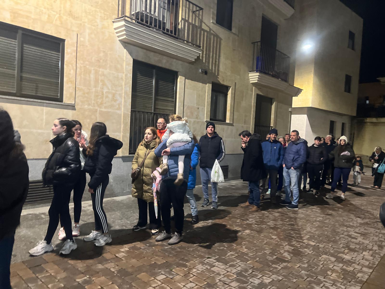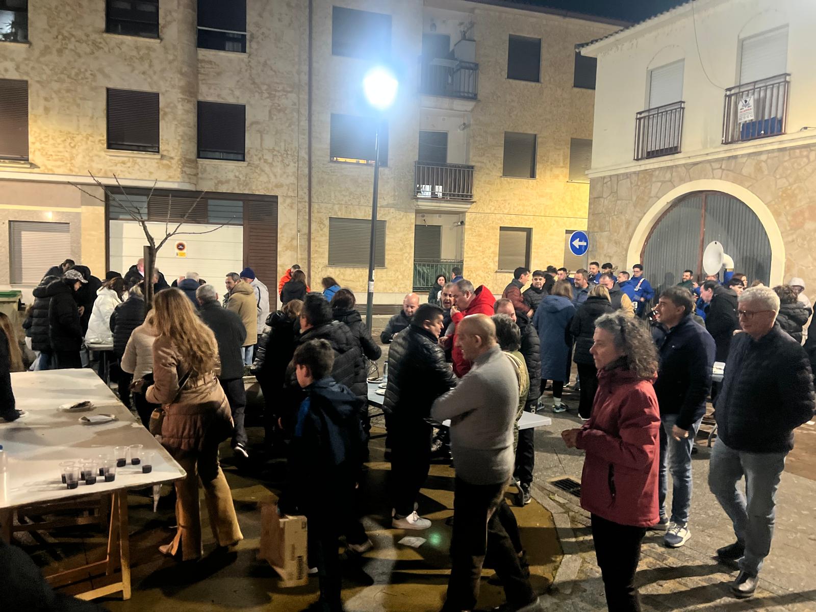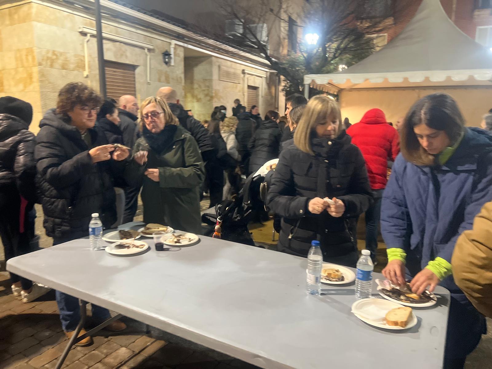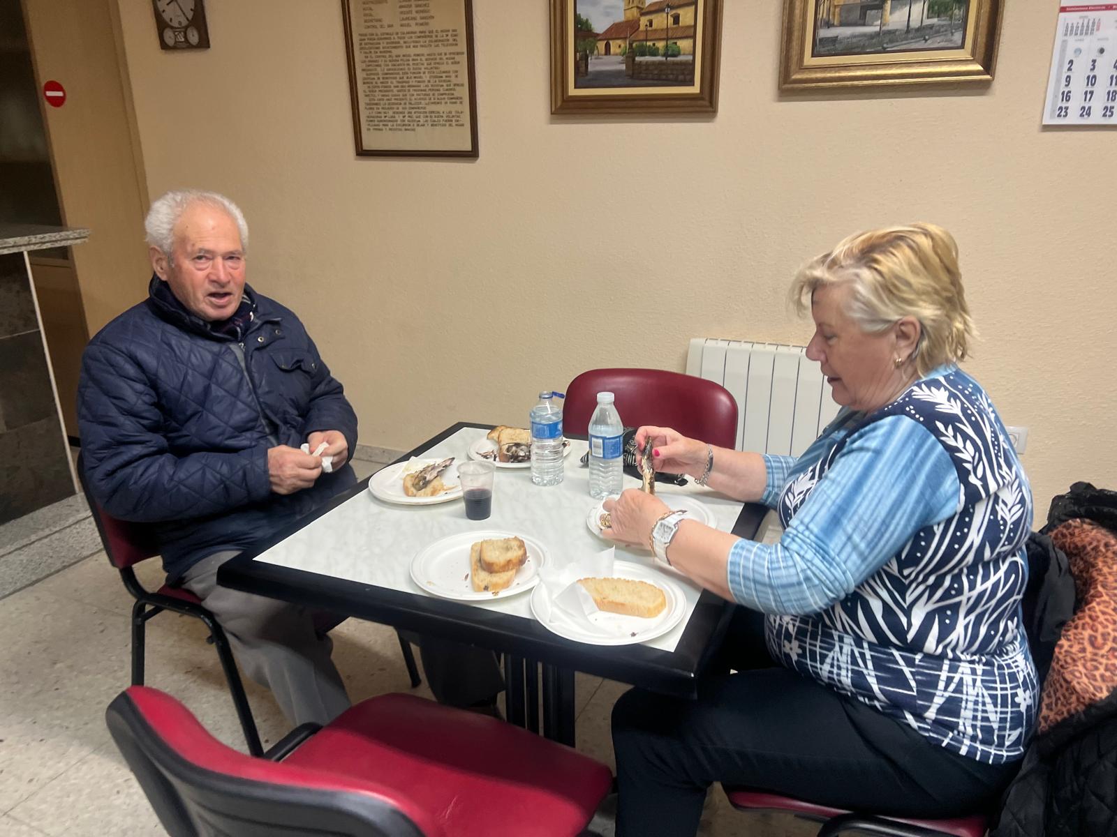 El viento y las malas condiciones meteorológicas han obligado a trasladar el lugar de celebración, aunque finalmente ha dado una tregua y los vecinos han participado y tras esperar su turno en la fila, han podido comer las sardinas en la calle y algunos han aprovechado la comodidad del hogar de mayores para disfrutar de la merienda festiva al ritmo de la música de la charanga.