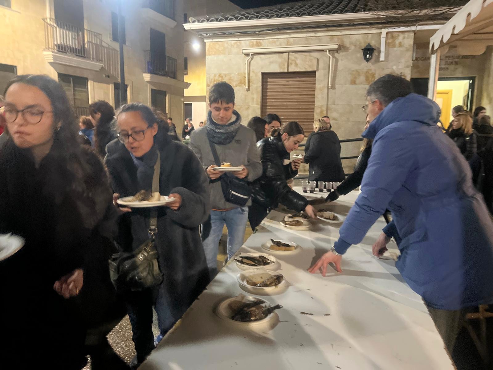 Villamayor ha despedido el Carnaval de este año con la degustación de 150 kilos de sardinas asadas de las que los vecinos han dado buena cuenta en la plaza San Juan.