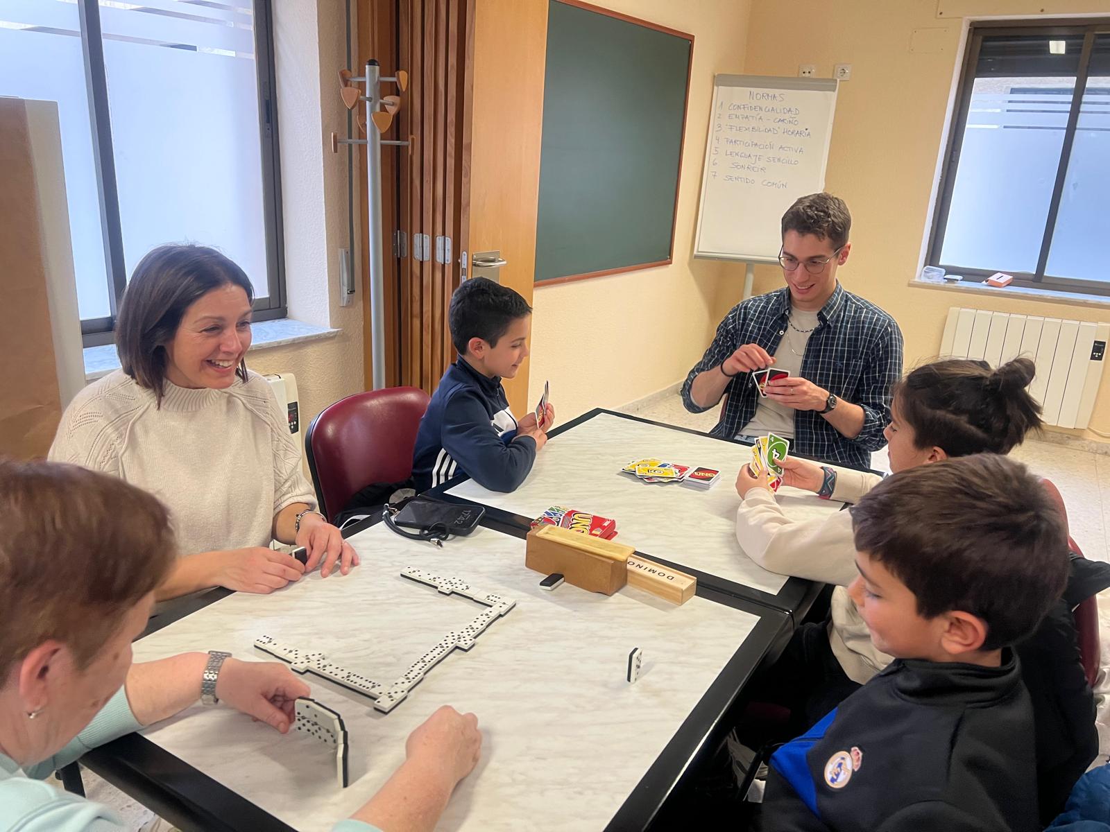 La actividad ‘Generaciones Unidas’, organizada por el Club de Ciudad de los Niños, ha reunido a vecinos de distintas edades para participar en este encuentro de juegos e intercambio de actividades, en la que los niños han enseñado los juegos con los que se divierten actualmente y los mayores han recordado aquellos con los que disfrutaban en sus ratos de ocio durante su infancia.