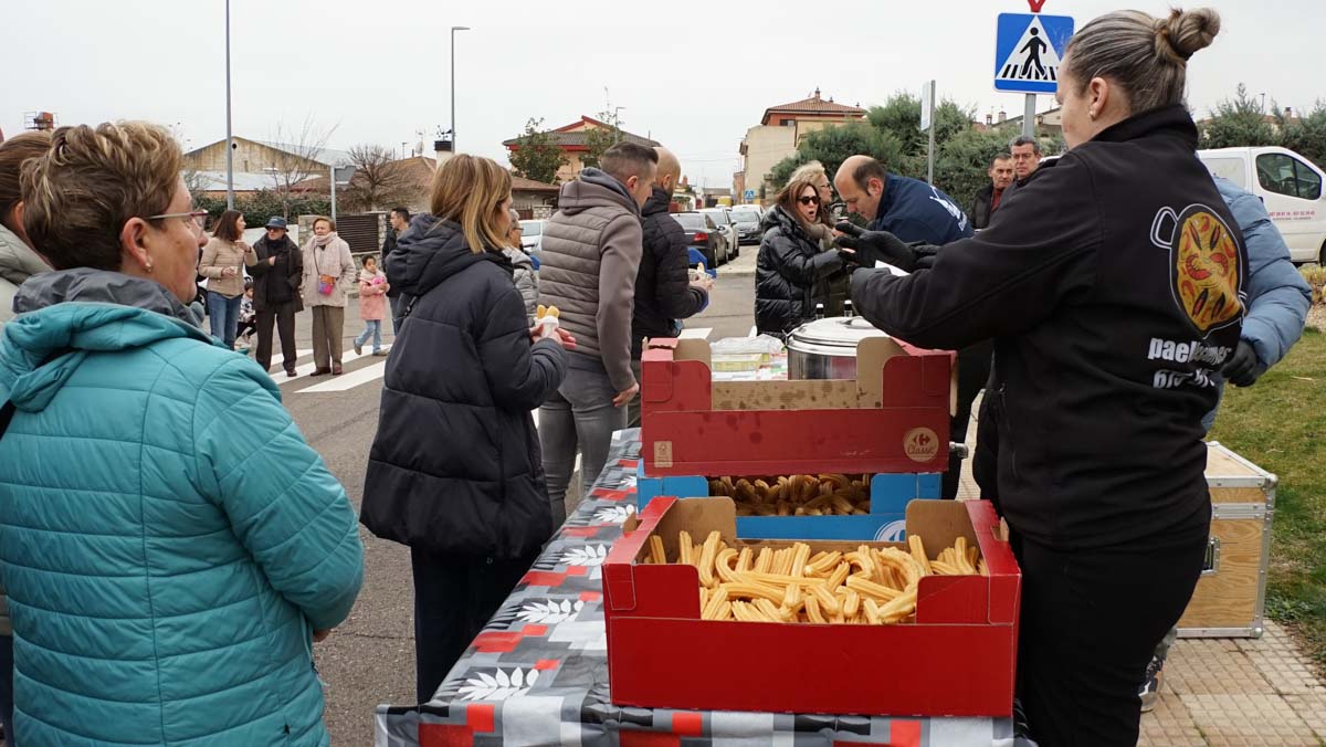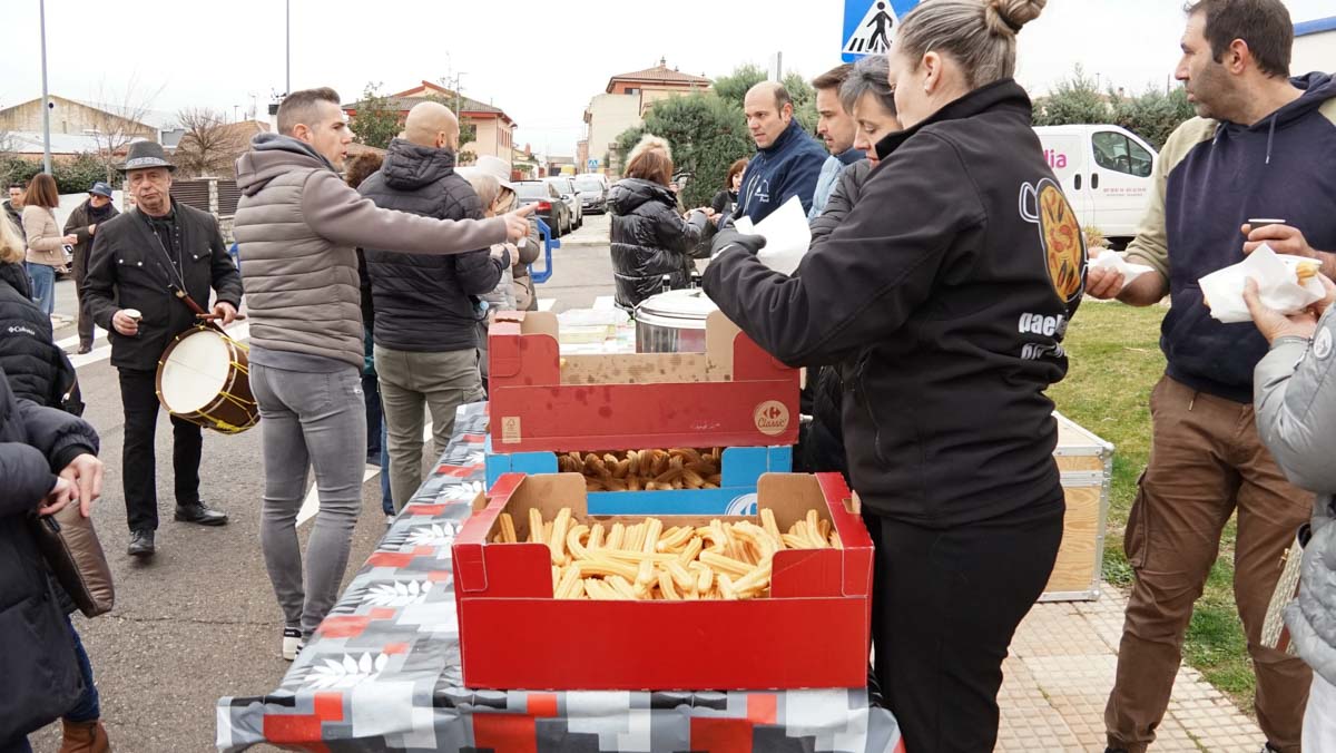 El alcalde del municipio, Enrique García y el resto de miembros del equipo de Gobierno, han estado presentes desde primera hora para colaborar y ayudar en las tareas previas y en la preparación. A continuación, suculento y apetecible desayuno a base de chocolate caliente con churros a la par que arrancaban los primeros sones de las flautas y tamboriles.