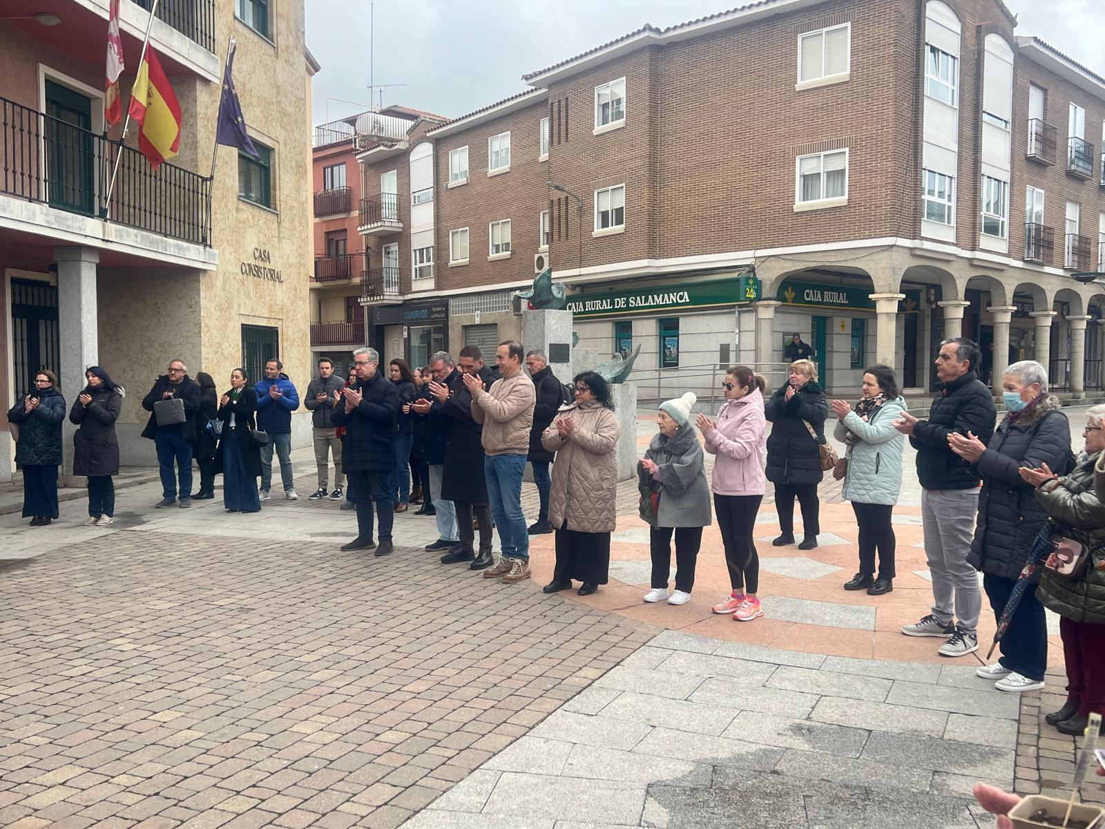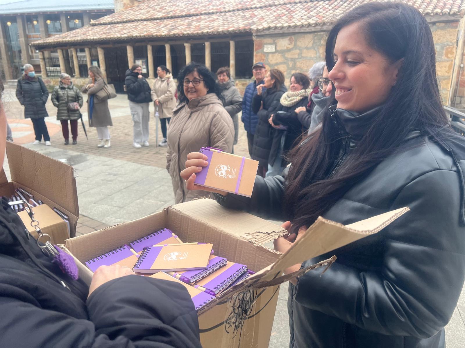 La Plaza Mayor, con la presencia de la Corporación municipal, vecinos y trabajadores municipales, ha acogido el acto en el que se ha revindicado el papel de la mujer en la sociedad y ha finalizado con la entrega de unos obsequios a los asistentes: una libreta y una planta.