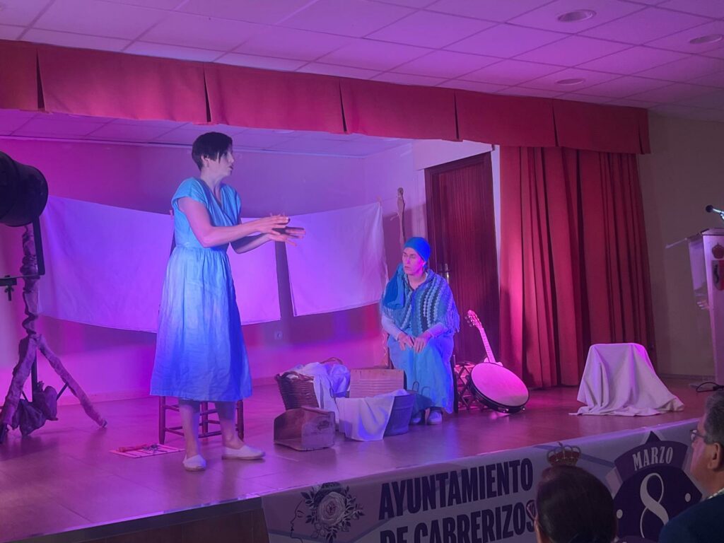 A continuación, han comenzado los ‘Cuentos y Cantos de Lavanderas’, con la narración oral y la música en directo a cargo de Elia y Uxía. Una actuación en la que han recopilado las conversaciones de lo que se contaban en estos encuentros femeninos, que para algunas mujeres era la única oportunidad de salir solas de casa, y han ido contando la importancia de estas labores que, aunque obligadas, suponían un momento de amistad y relación con las obras mujeres del pueblo y que han dejado huella en la cultura popular.