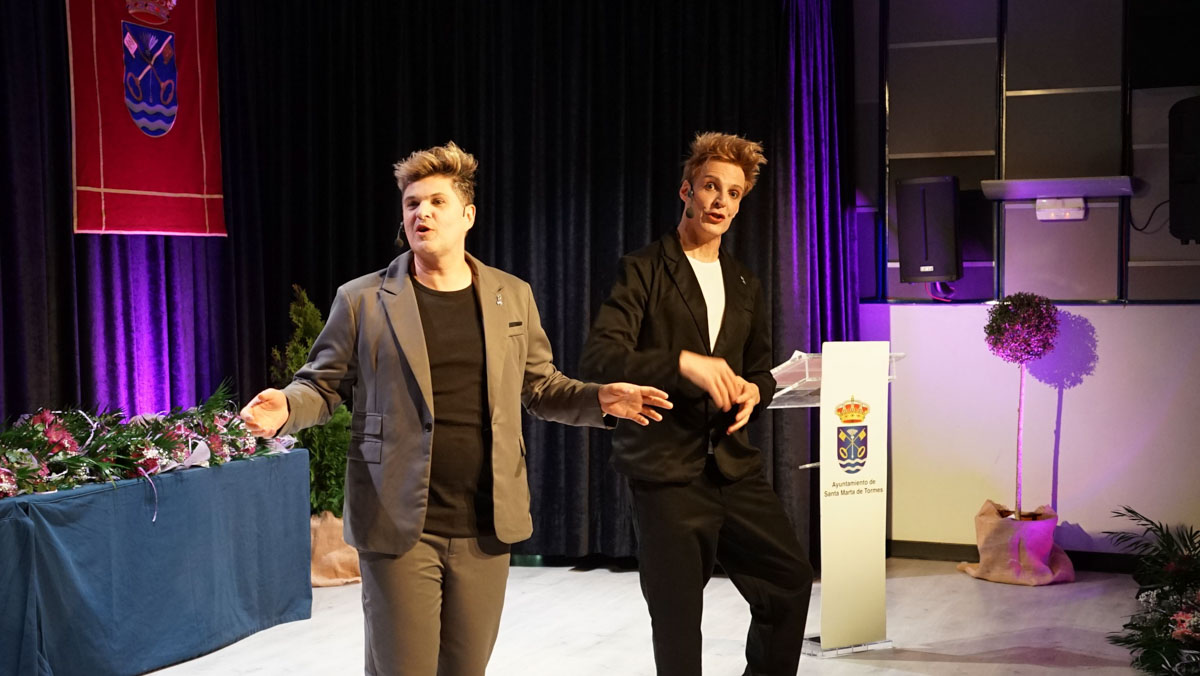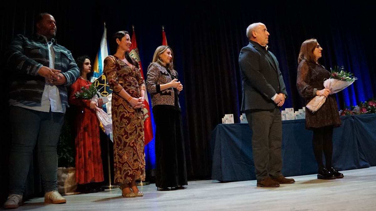 El auditorio Enrique de Sena ha acogido la celebración del Día Internacional de la Mujer homenajeando a 21 vecinas en la novena edición de la gala ‘Con nombre de mujer’. Una gala que, de nuevo, ha sido presentada una vez más por los integrantes de MDM Producciones que han puesto la nota cómica a la velada. La gala ha contado también con la actuación sorpresa de Hugo Fraile, que ha llevado hasta el auditorio su original versión del baile flamenco.