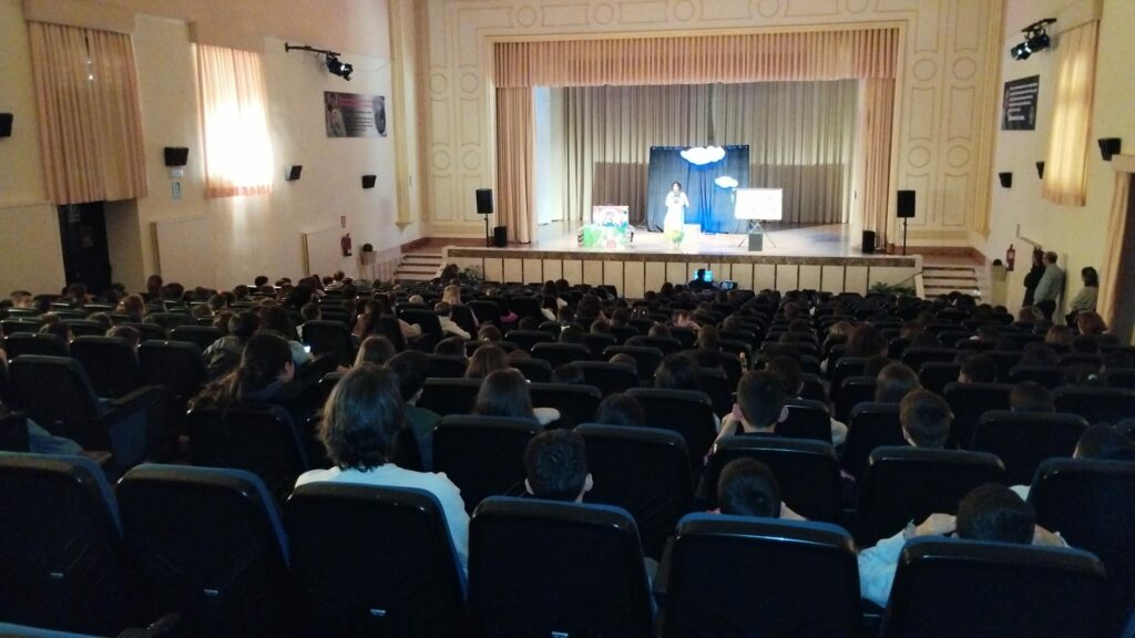 El auditorio de los Padres Páules ha sido el escenario elegid para llevar a cabo la sesión de teatro enmarcada en la programación de Circuitos Escénicos. La narradora, cuentista, actriz y clown, Eugenia Manzanera, ha logrado hacer pasar un buen rato a los alumnos de Educación Primaria de los tres colegios de Santa Marta, Martín Gaite, Miguel Hernández y San Blas, con su espectáculo ‘Con la cabeza en las nubes’.
