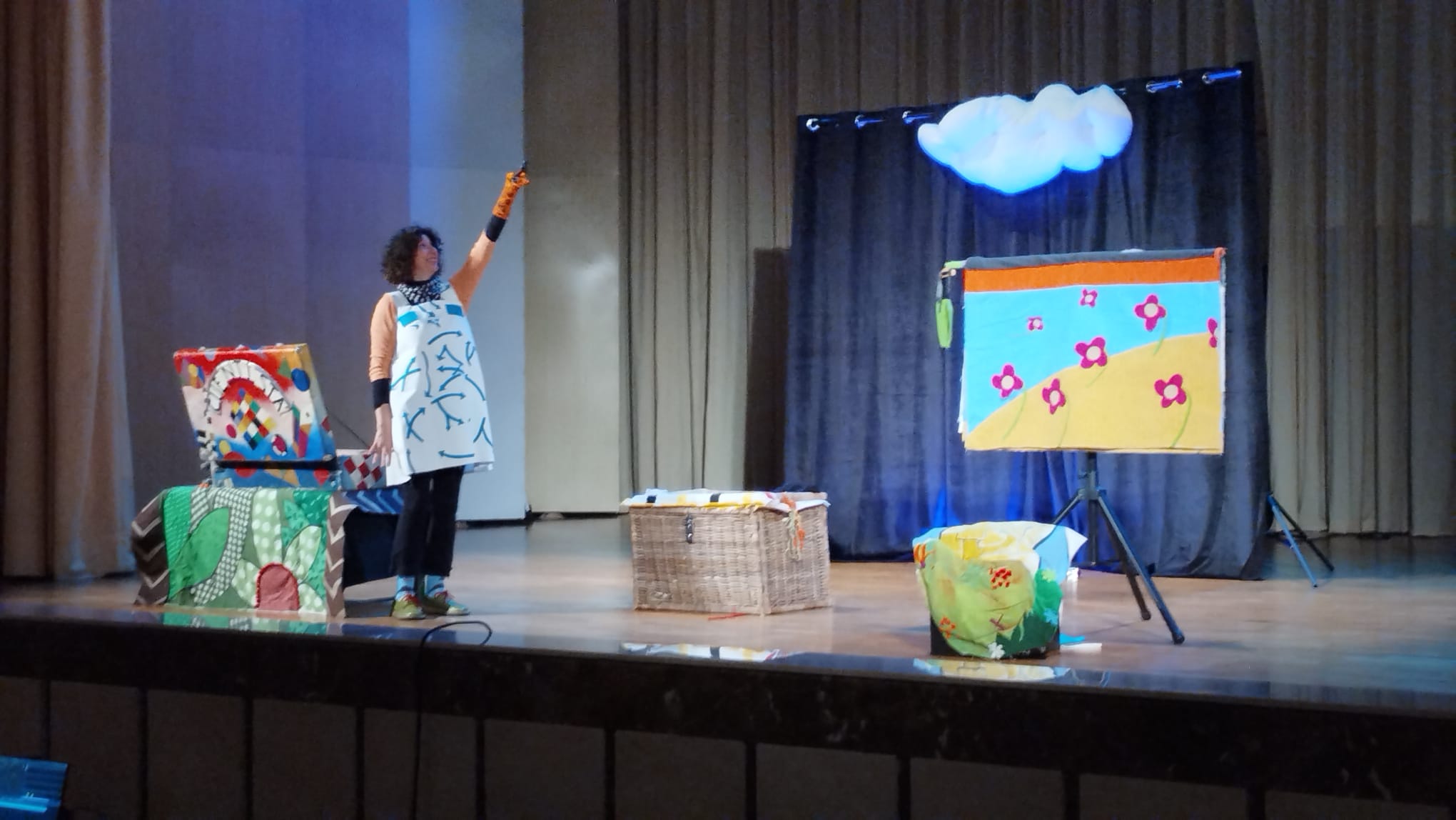 El auditorio de los Padres Páules ha sido el escenario elegid para llevar a cabo la sesión de teatro enmarcada en la programación de Circuitos Escénicos. La narradora, cuentista, actriz y clown, Eugenia Manzanera, ha logrado hacer pasar un buen rato a los alumnos de Educación Primaria de los tres colegios de Santa Marta, Martín Gaite, Miguel Hernández y San Blas, con su espectáculo ‘Con la cabeza en las nubes’.