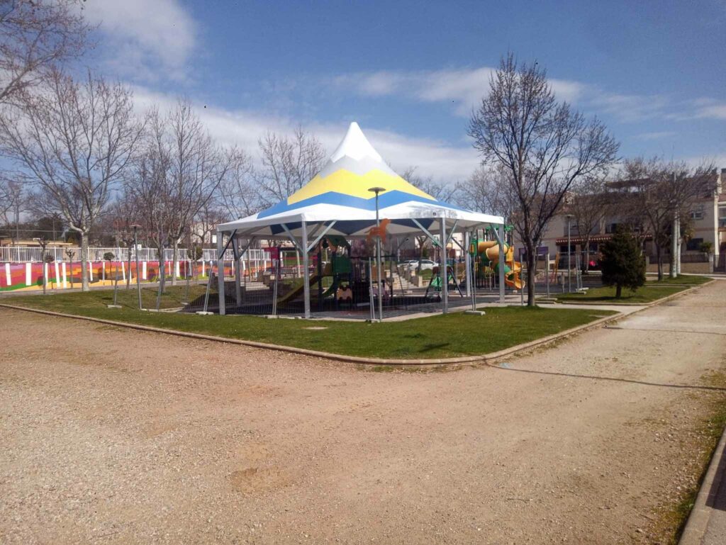Esta parque, situado entre las calles Miguel de Cervantes, Sol y Gabriel y Galán, frente al colegio público, es uno de los más grandes y utilizados del municipio. Por este motivo, el Ayuntamiento ha decidido comenzar por esta zona la instalación de cubiertas sobre los juegos infantiles para que no tengan que depender de las condiciones climatológicas para su uso.