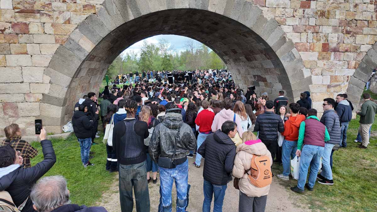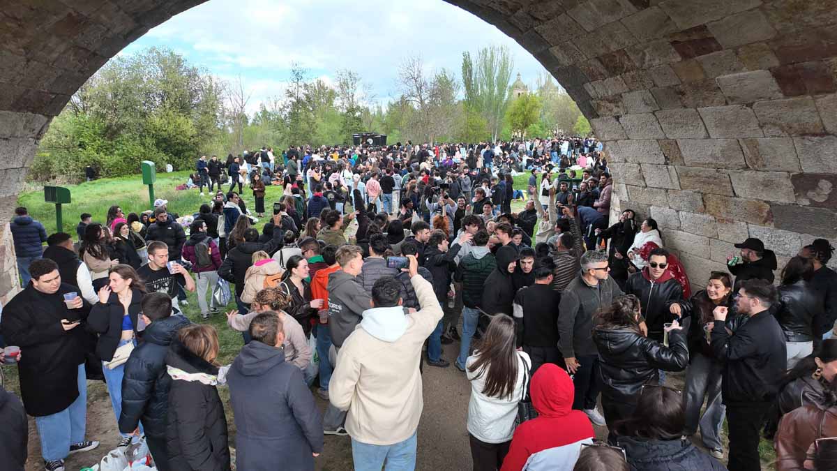 Los jóvenes celebran el Lunes de Aguas en el Puente Romano al ritmo de la electrocharanga