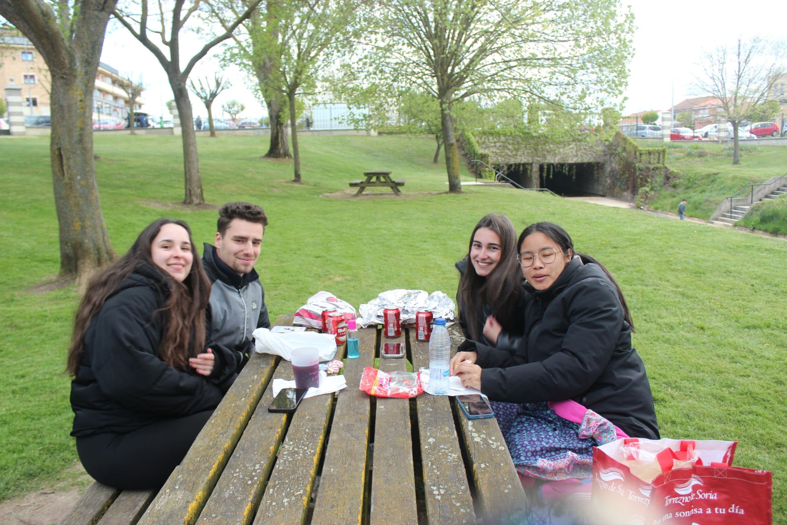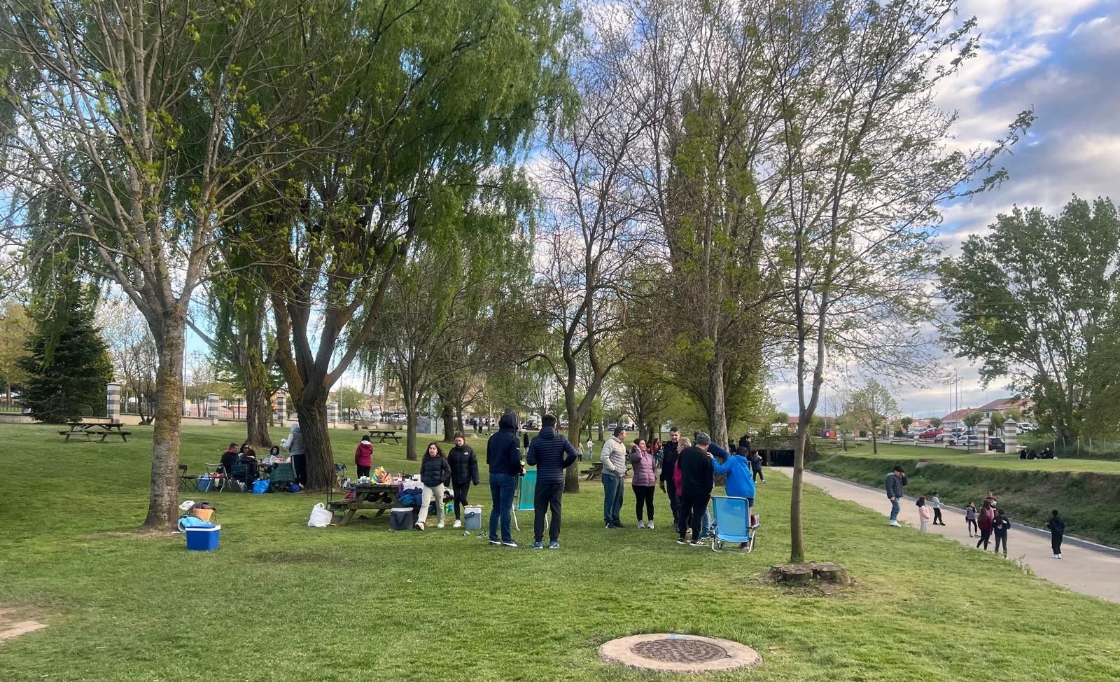 Aunque el frío ha desanimado a muchos a salir, poco a poco los grupos de amigos y familias se han decidido a disfrutar de la tarde festiva para compartir la merienda en la que el hornazo ha sido el protagonista, acompañado de más viandas que han llenado las mesas.