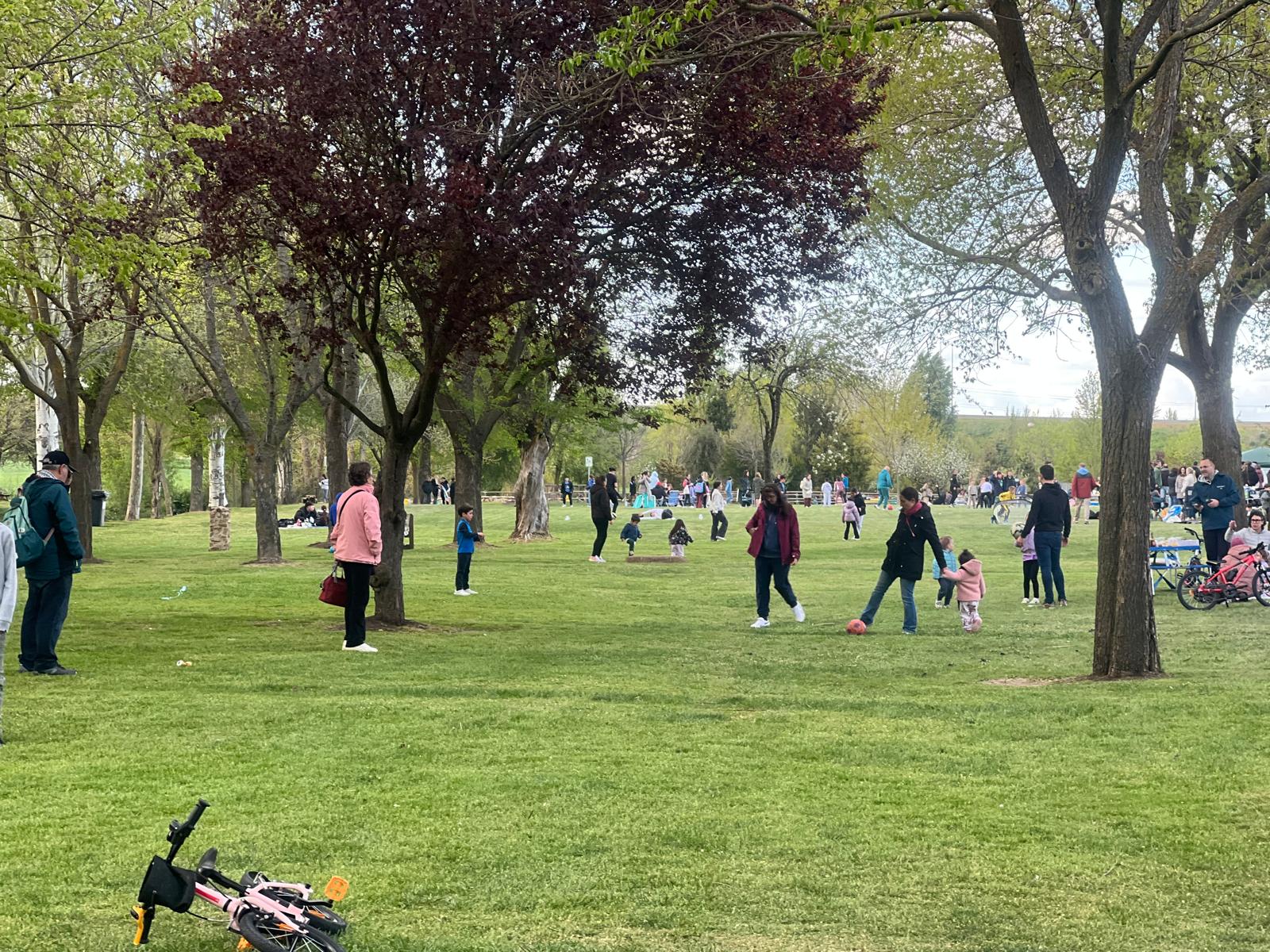 Con los abrigos, de pie, jugando o al ritmo de la música, niños y mayores han participado en esta jornada en el pulmón verde del municipio.
