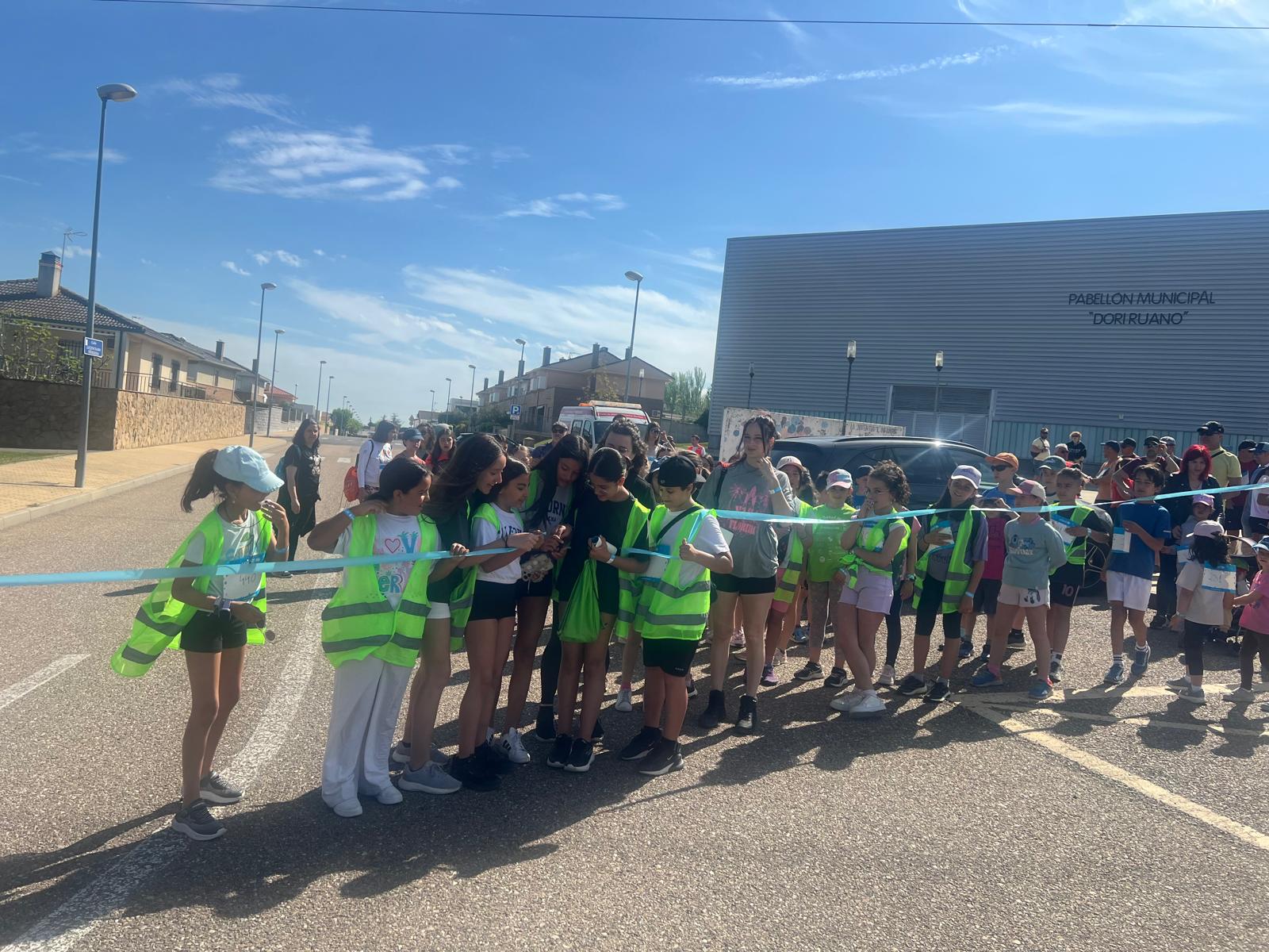 Tras el corte de la cinta por los niños del Club de Animación del Programa Ciudad de los Niños, los pequeños han encabezado la marcha, seguidos de las familias participantes, en la que han recorrido 3,4 kilómetros por los caminos alrededor del municipio en una mañana agradable y con un tiempo que animaba a disfrutar de esta actividad solidaria.