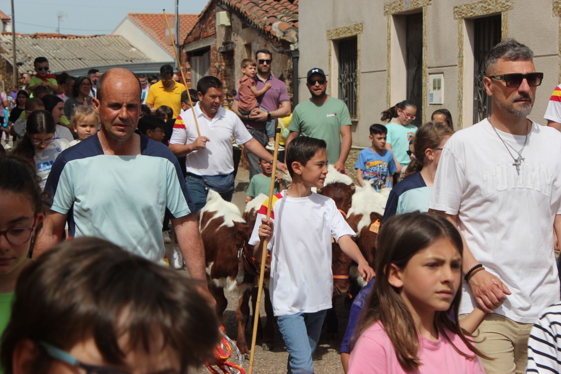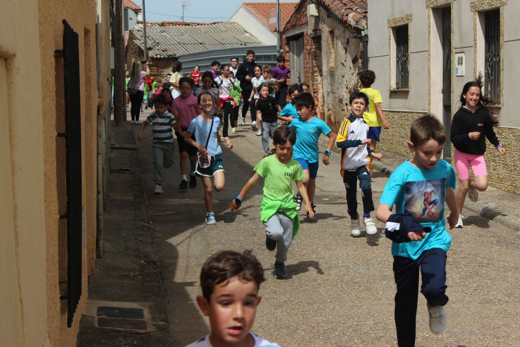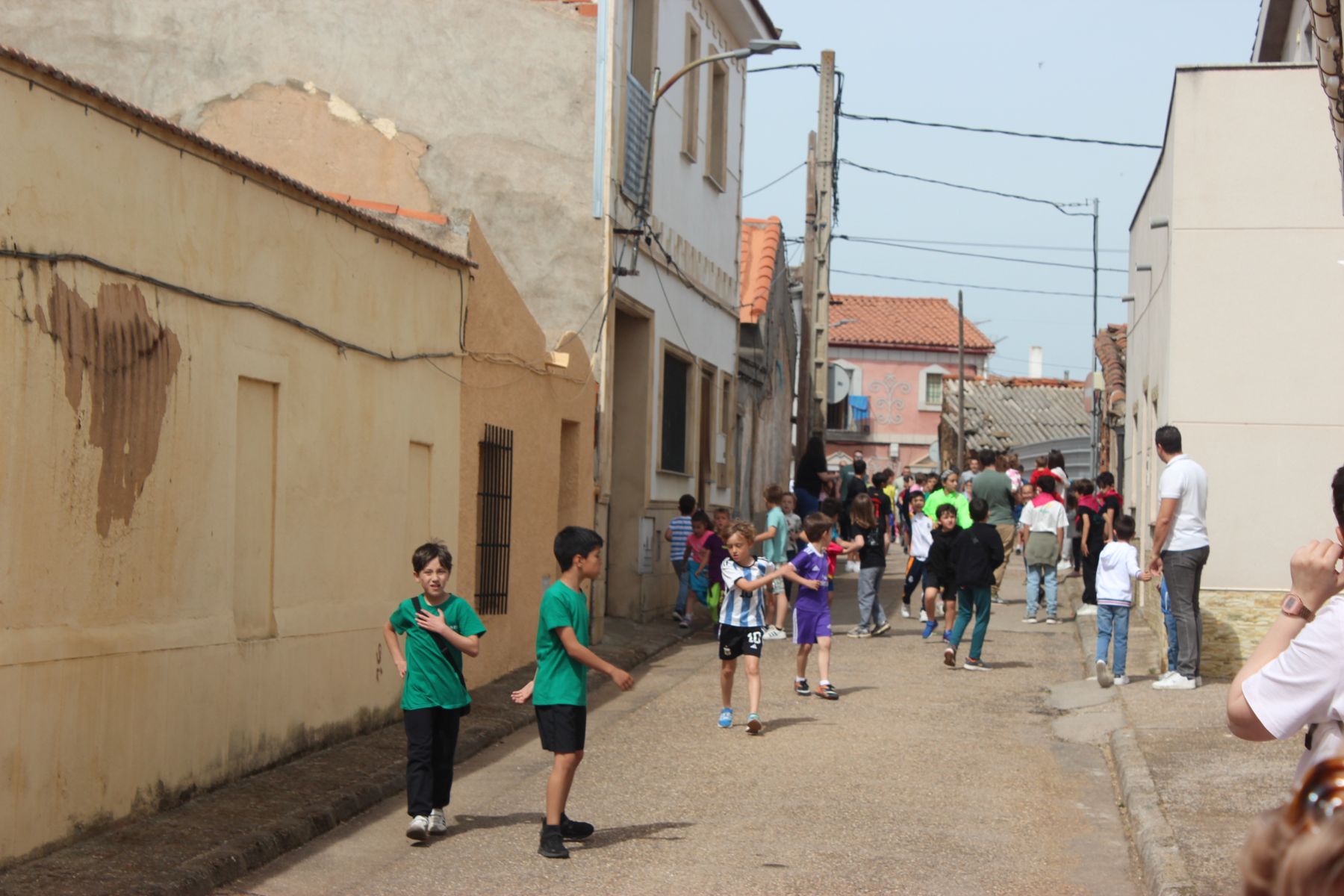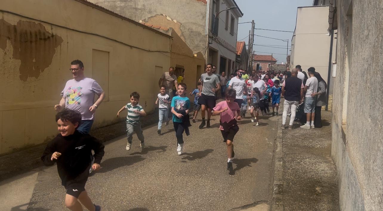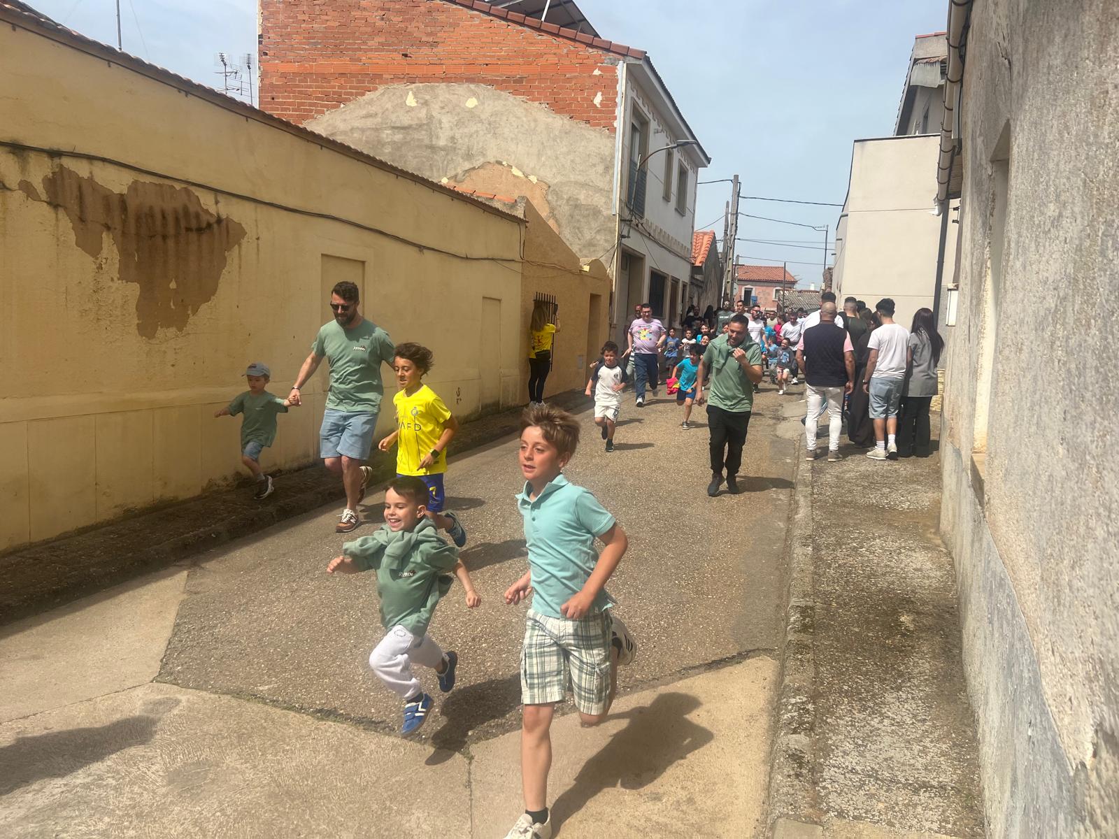 Una vez reunidos al principio de la calle Pérez Oliva, se han soltado los cabestros y han iniciado la marcha hasta la Plaza de San Marcos para comenzar las carreras por las calles alrededor de la plaza, en las que han participado niños y papás.