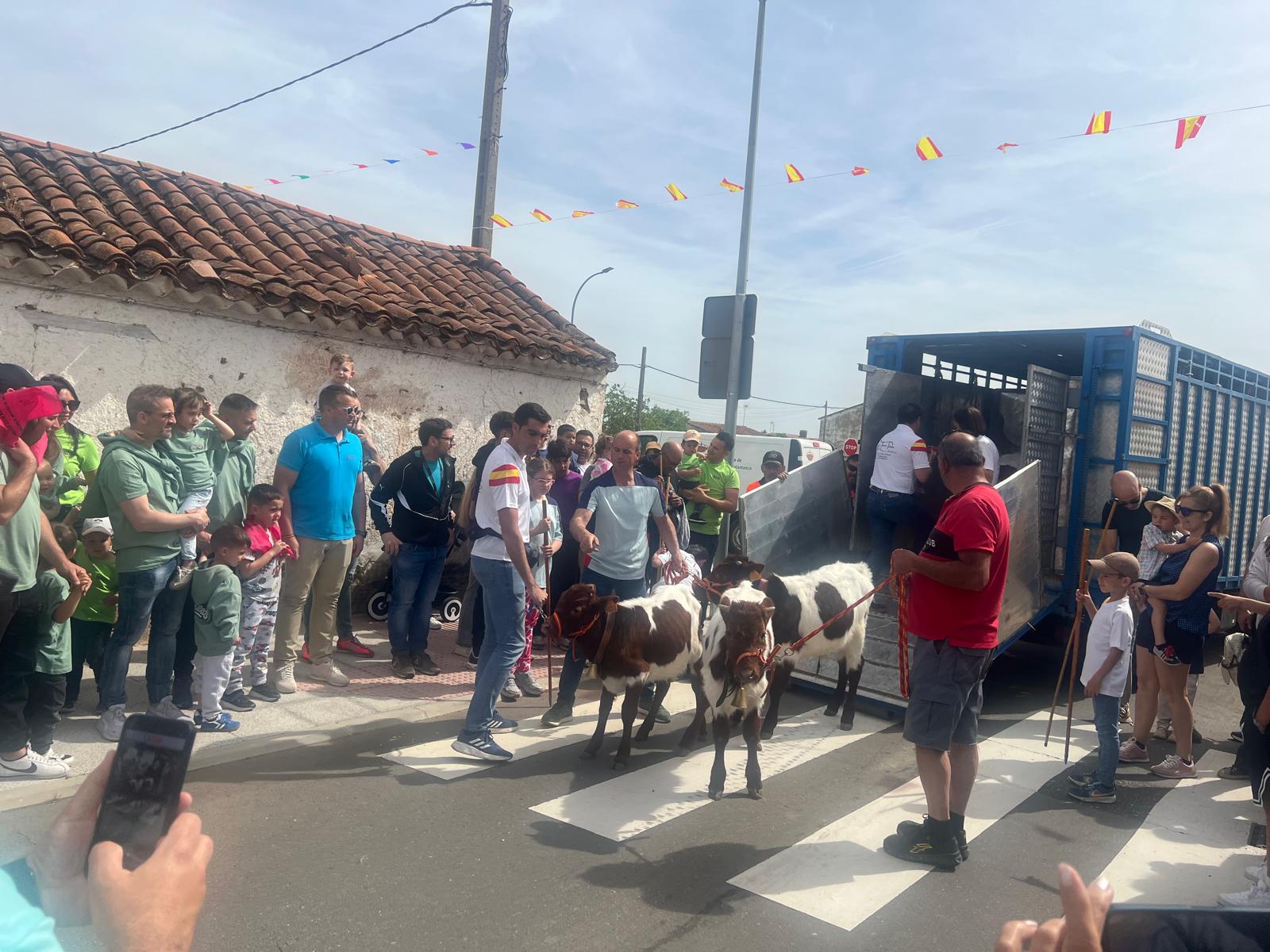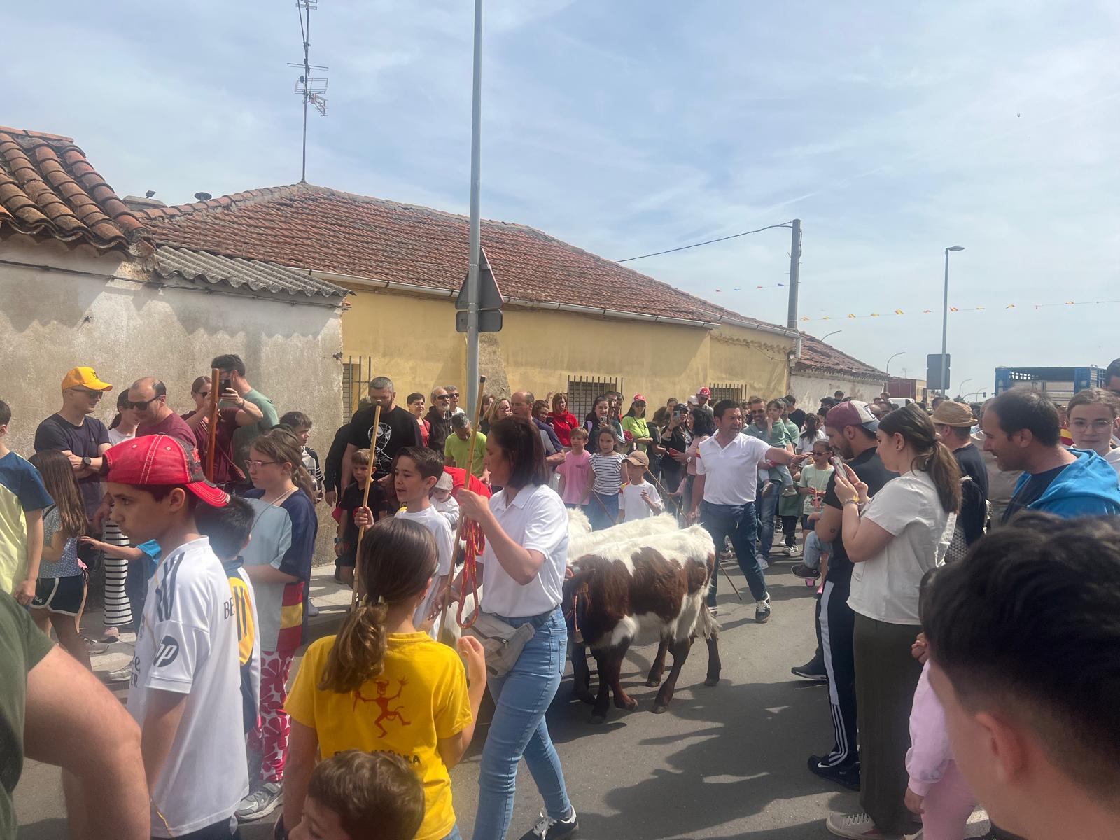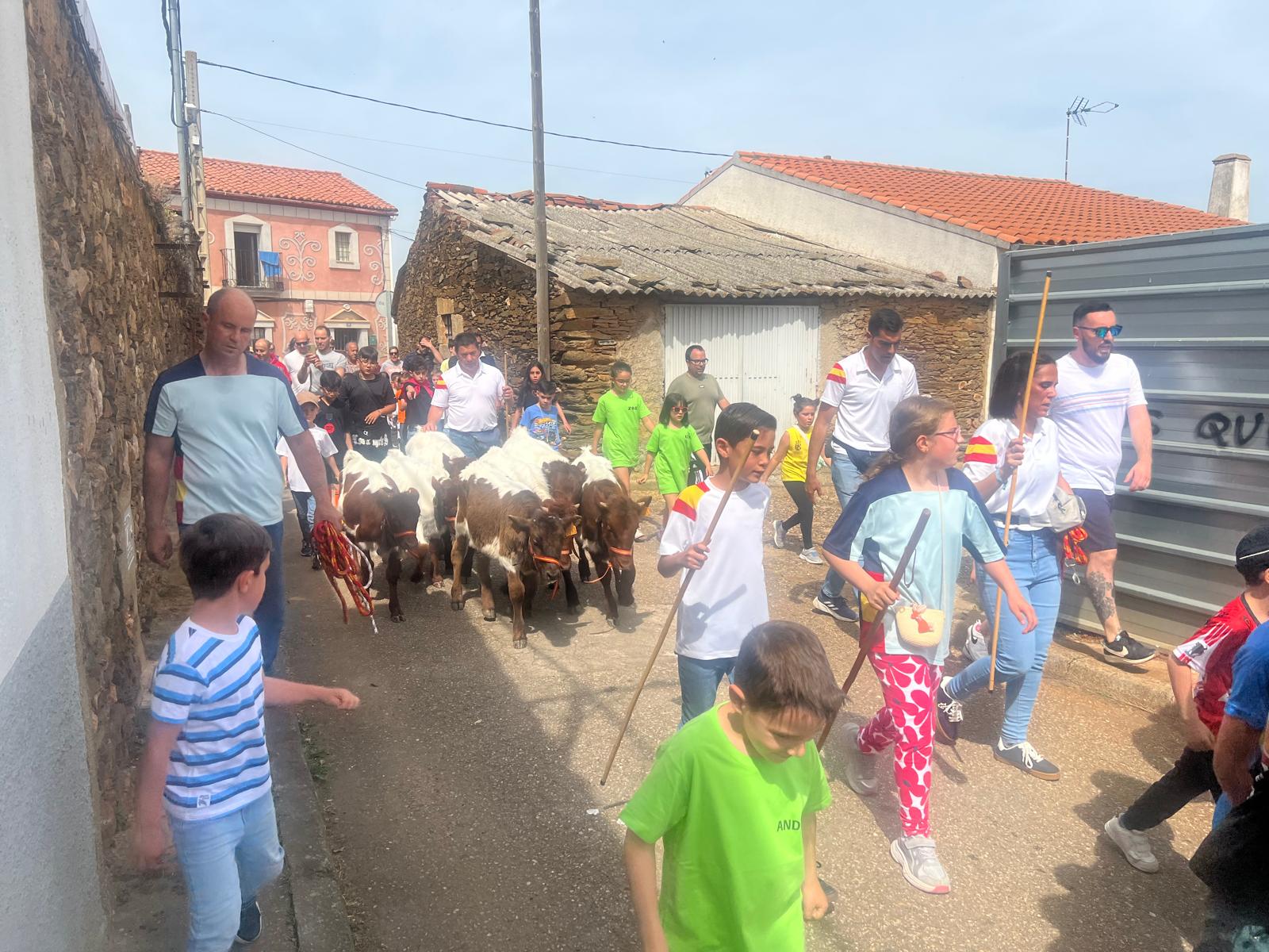 Cientos de niños y familias se han reunido esta mañana para disfrutar con el encierro de mini bueyes, una actividad que se estrenó el año pasado y que ha llegado para quedarse, dada la gran participación y aceptación por parte de los vecinos.